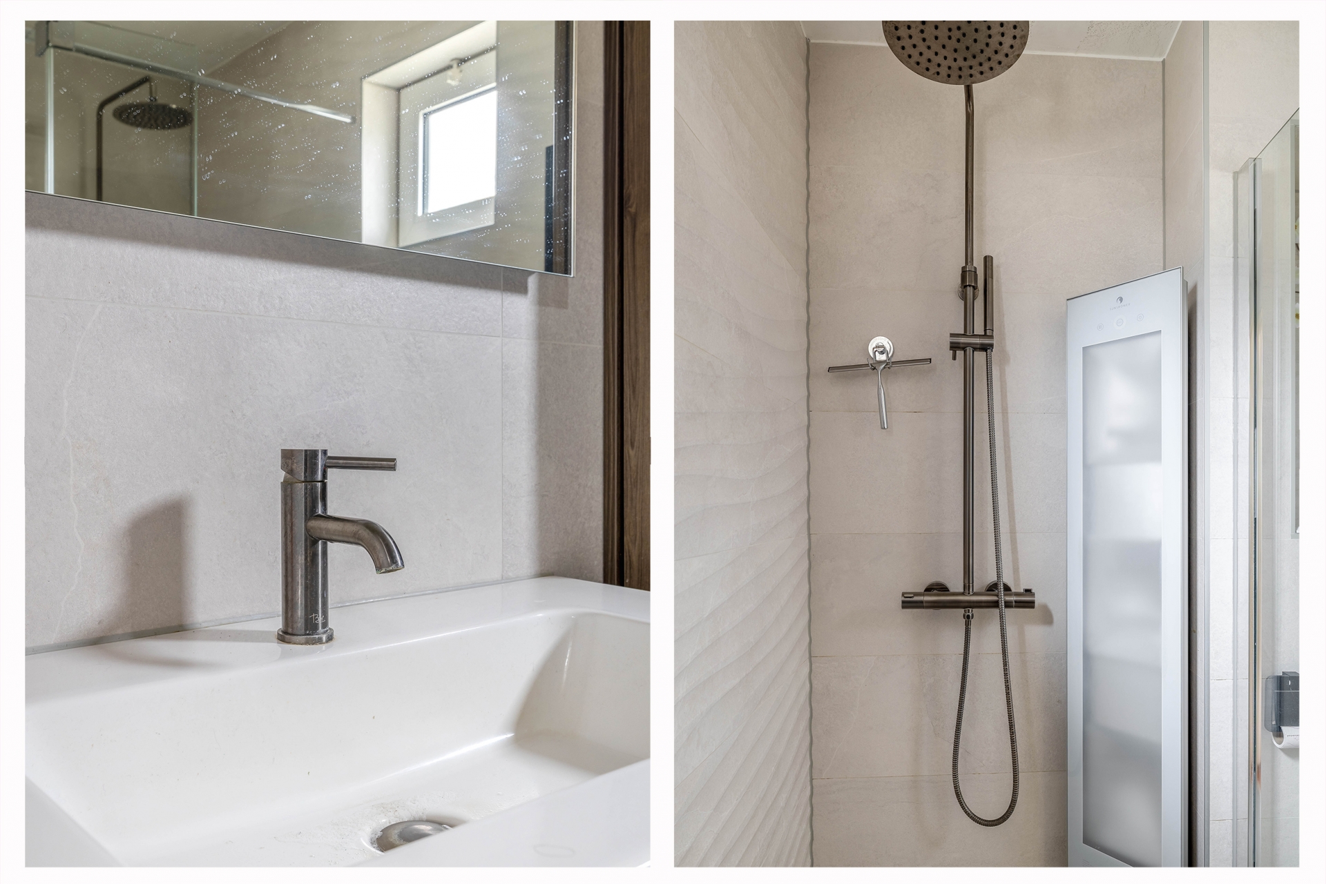 Op deze verdieping bevinden zich drie slaapkamers en de badkamer. Aan de voorzijde treft u een ruime slaapkamer en de badkamer, welke is uitgerust met een inloopdouche, sunshower, tweede toilet en een wastafel met meubel. Aan de achterzijde liggen nog twee slaapkamers, waaronder de royale master bedroom. Boven de (voormalige) garage bevindt zich een vierde slaapkamer – een volwaardige extra kamer met diverse gebruiksmogelijkheden.