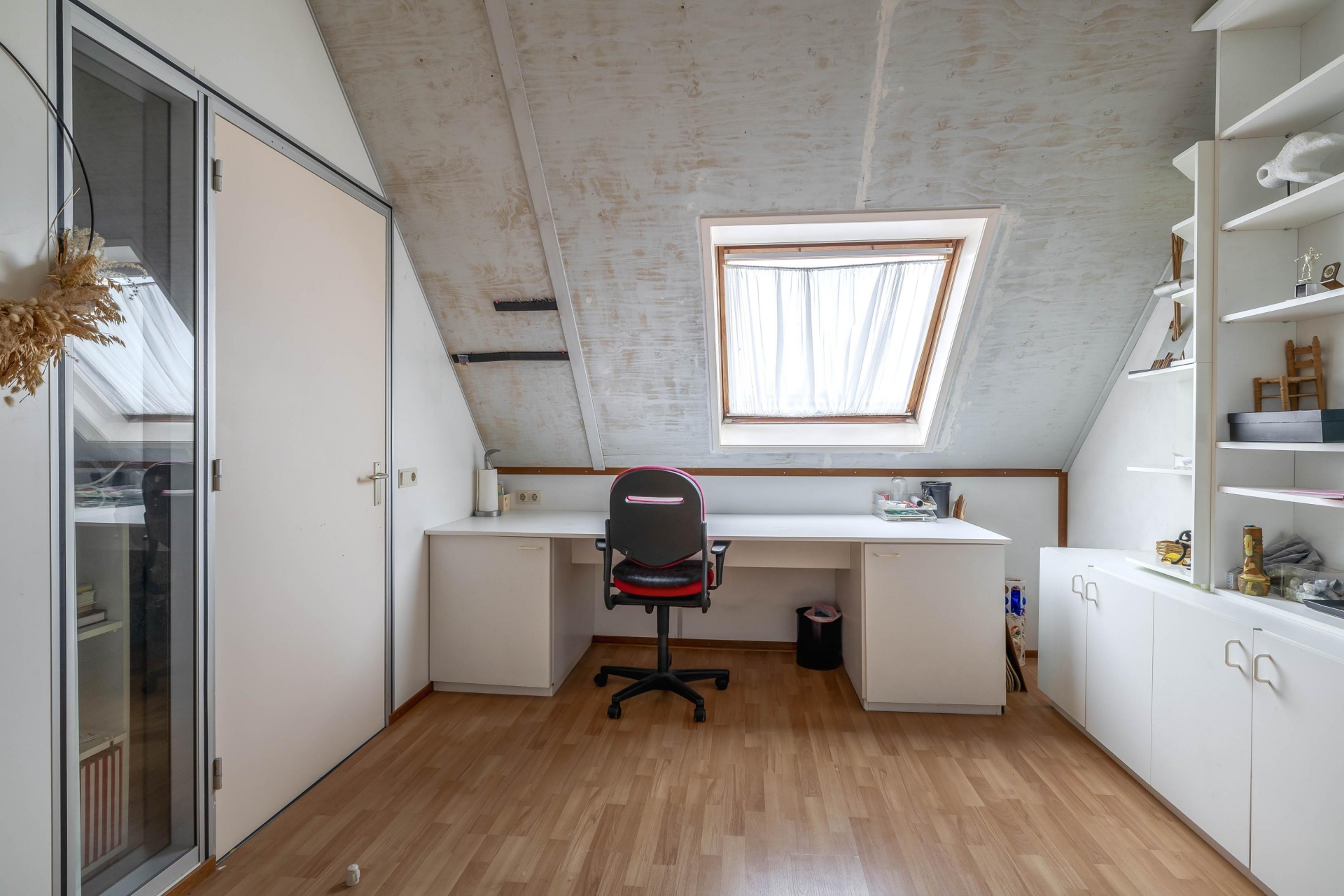 De tweede verdieping beschikt over een ruime zolderkamer met voorzolder. Hier bevindt zich de wasmachineaansluiting. Dankzij de knieschotten aan beide zijden is er extra bergruimte aanwezig. Deze verdieping kan uitstekend dienen als vijfde slaapkamer, werkruimte of hobbykamer.