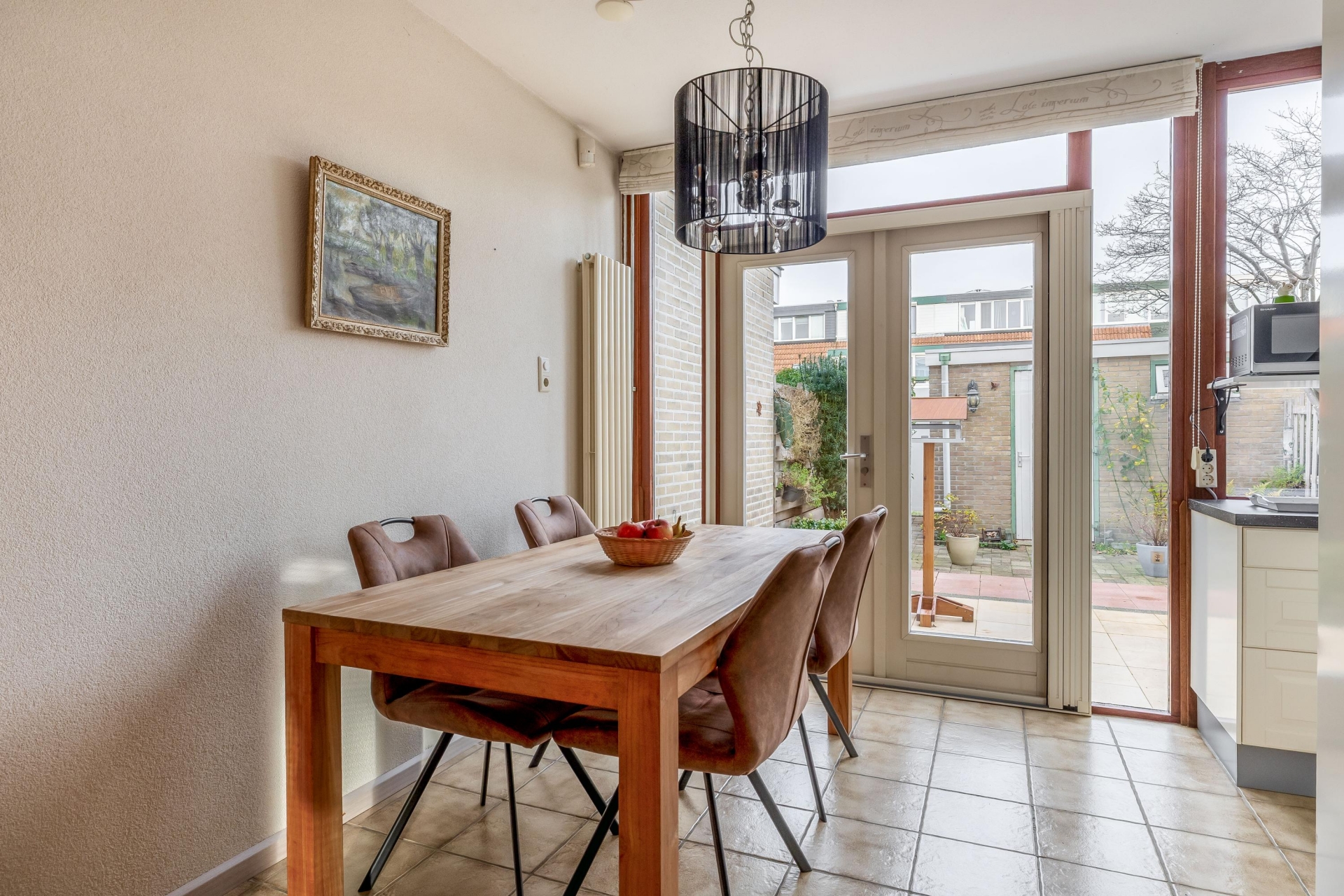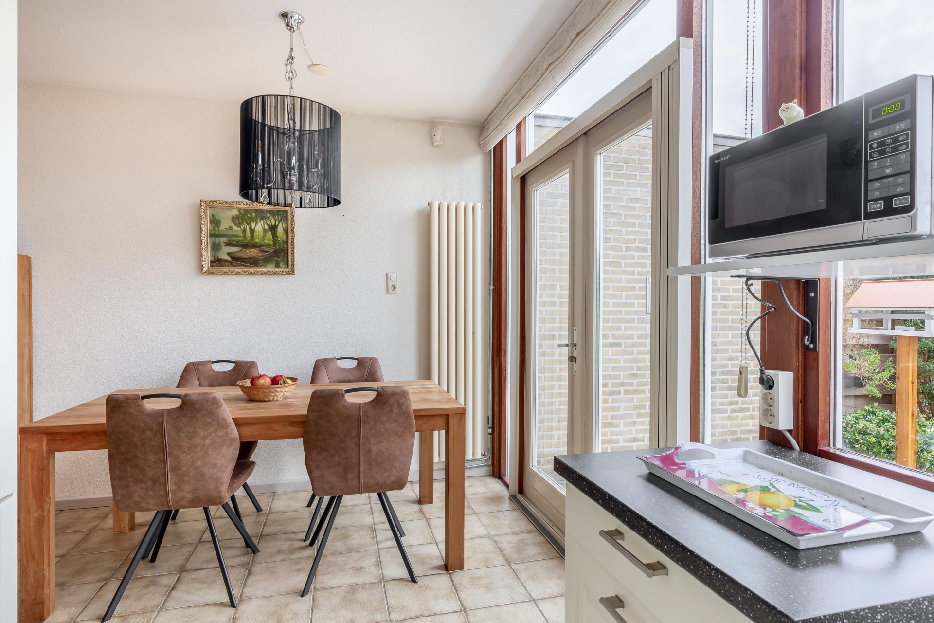 De woning ligt in een rustige woonwijk, met een brede straat en veel privacy aan de voorzijde. Binnen word je verrast door de ruimte: de woonkamer aan de voorzijde is licht dankzij grote raampartijen, en de eethoek sluit aan op de open keuken aan de achterzijde. Via openslaande deuren loop je zo de tuin in.