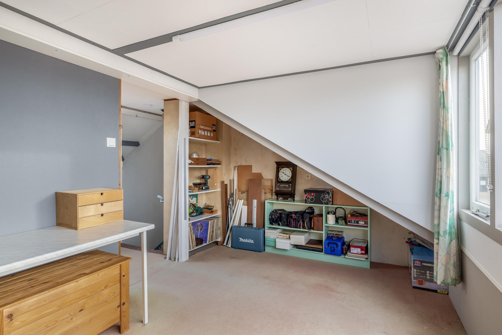 Op de eerste verdieping zijn er twee ruime slaapkamers, waarvan de grootste over de volle breedte aan de voorzijde ligt. Vroeger waren dit 2 slaapkamers. De toegangsdeur naar de grote slaapkamer met het kozijn zijn werkgewerkt maar dus nog wel aanwezig. Ook de badkamer is op deze verdieping te vinden. Op zolder is er een royale voorzolder met dakkapel en een extra (slaap)kamer. Hier is eenvoudig een extra slaapkamer of thuiskantoor te realiseren.