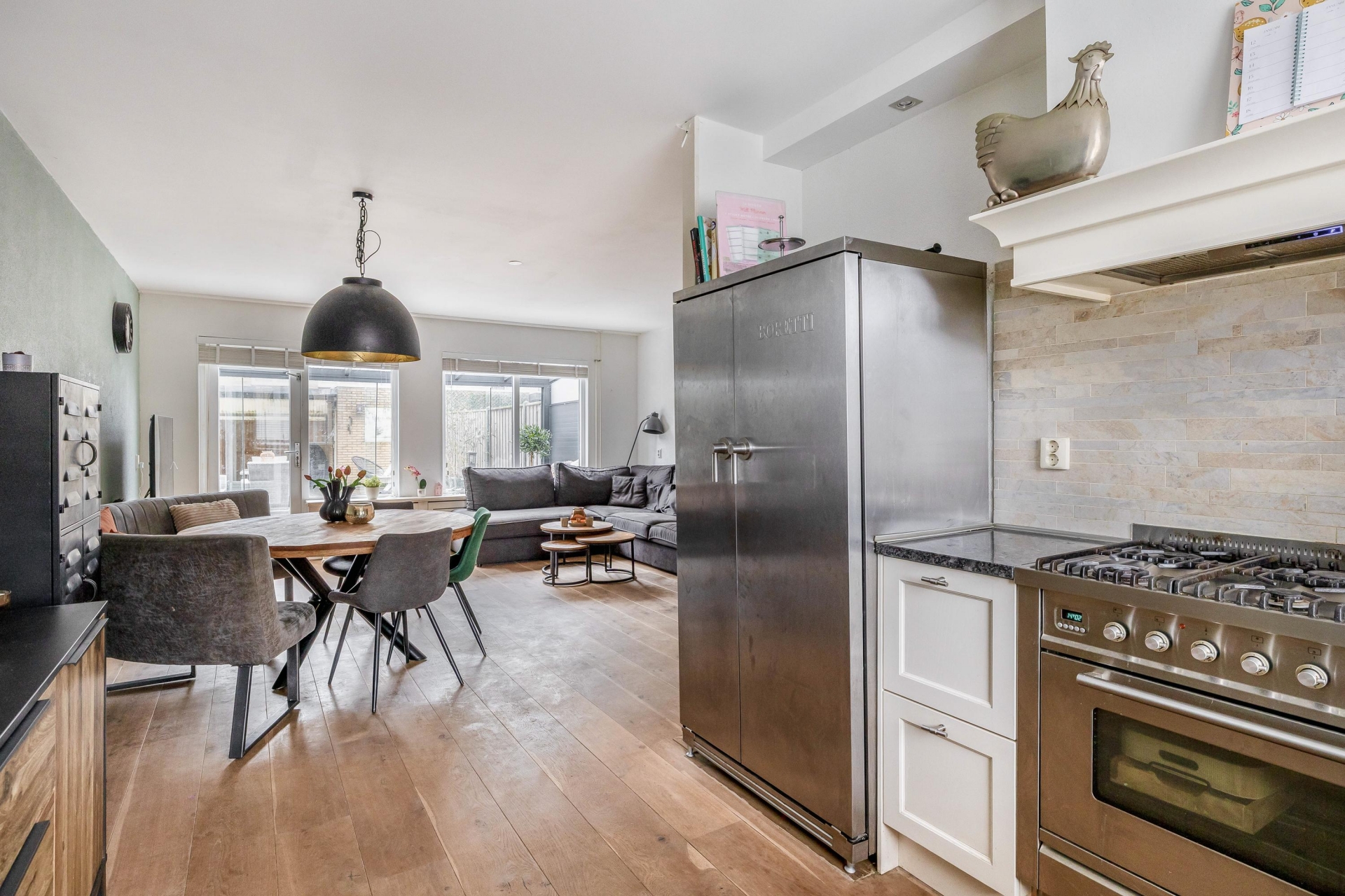 De begane grond is slim ingedeeld en voelt dankzij de grote ramen en serre heerlijk ruim en licht aan. De woonkamer van ca. 27 m² is een fijne plek om te ontspannen, met een natuurlijke doorloop naar de serre die perfect dienstdoet als tweede zithoek en/of speelruimte. Hier kijk je uit op de zonnige en verzorgde achtertuin, gelegen op het oosten – ideaal voor een ontbijtje in de ochtendzon of een ontspannen borrel aan het eind van de dag.
