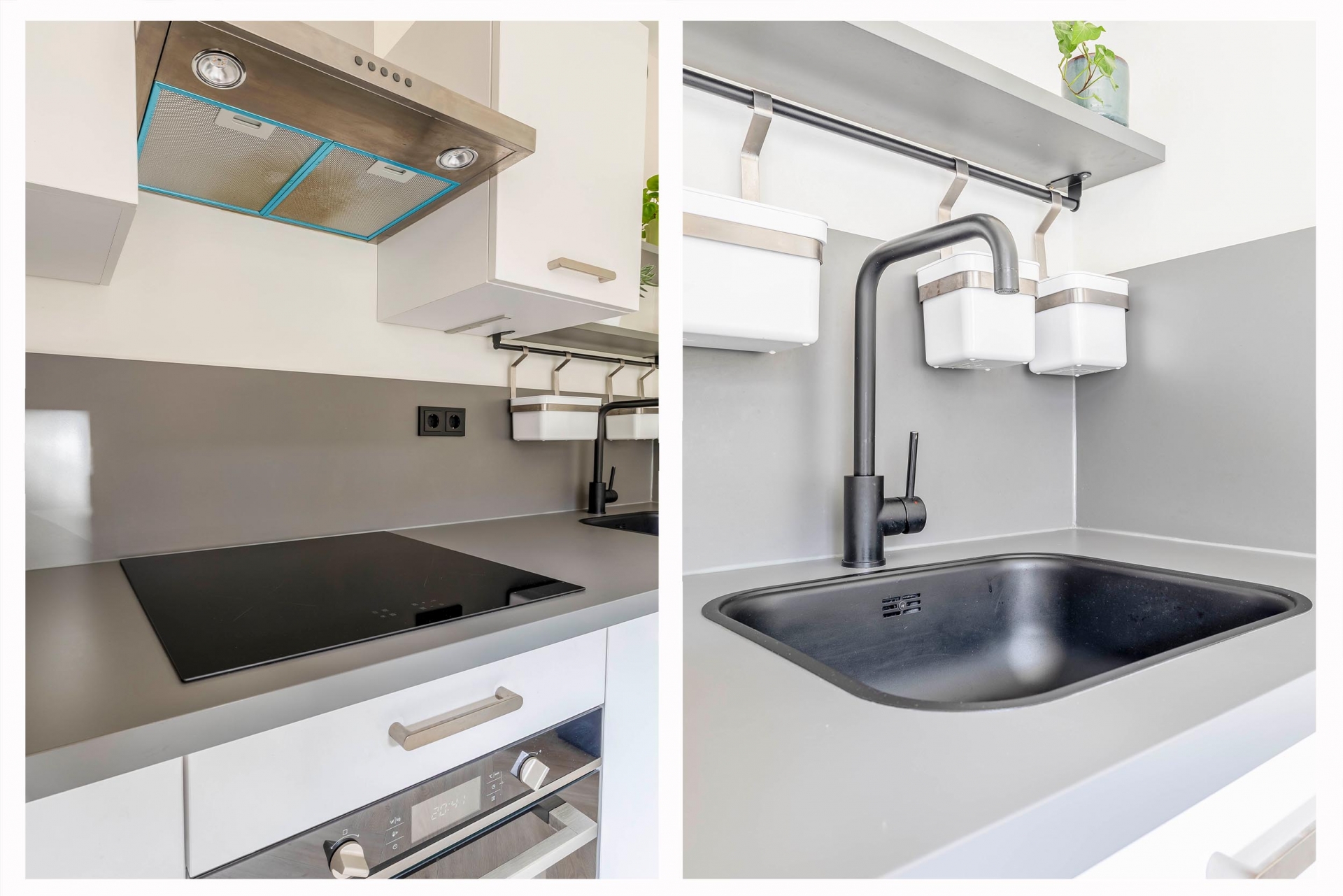 In de afgelopen jaren is veel gerenoveerd. De badkamer, het toilet, de keuken, het stuc- en schilderwerk, de plafonds, de elektra en de vloer – alles is vernieuwd met oog voor stijl en kwaliteit. De keuken is voorzien van moderne inbouwapparatuur, waaronder een combi-oven en inductiekookplaat, perfect geïntegreerd in een strakke opstelling. De nieuwe PVC-vloer loopt naadloos door het appartement en zorgt voor een rustige, moderne basis. In de hal zijn op maat gemaakte inbouwkasten geplaatst, wat zorgt voor extra bergruimte en een nette uitstraling.