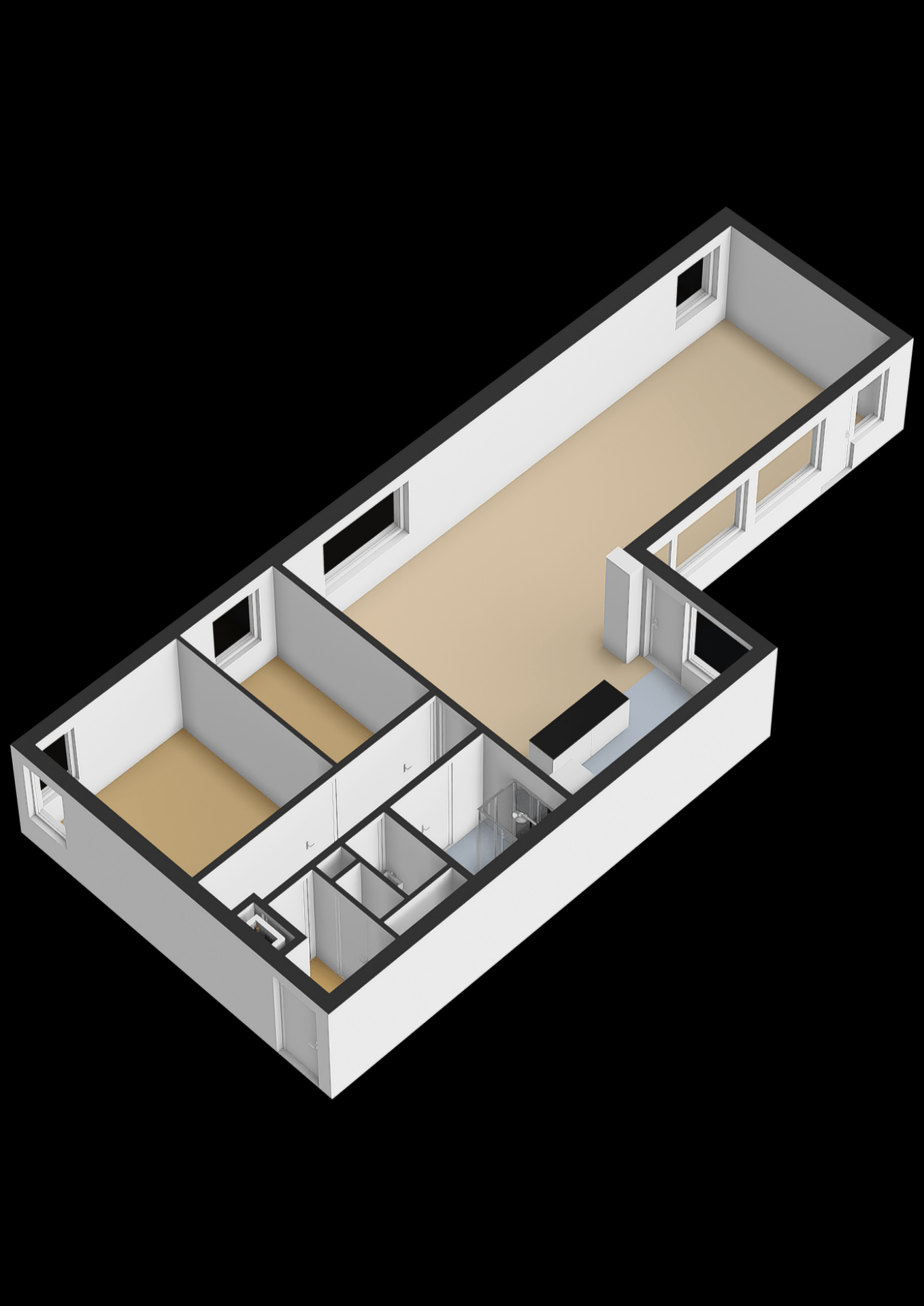 Met een woonoppervlakte van 97 m² beschikt dit appartement over een ruime en praktische indeling. De lichte L-vormige woonkamer heeft een open keuken en biedt directe toegang tot het royale terras, een perfecte plek om te ontspannen. De twee comfortabele slaapkamers zorgen voor voldoende leefruimte en de moderne badkamer is voorzien van een inloopdouche, stijlvol wastafelmeubel en wasmachineaansluiting. Daarnaast is er een separaat, volledig modern toilet.