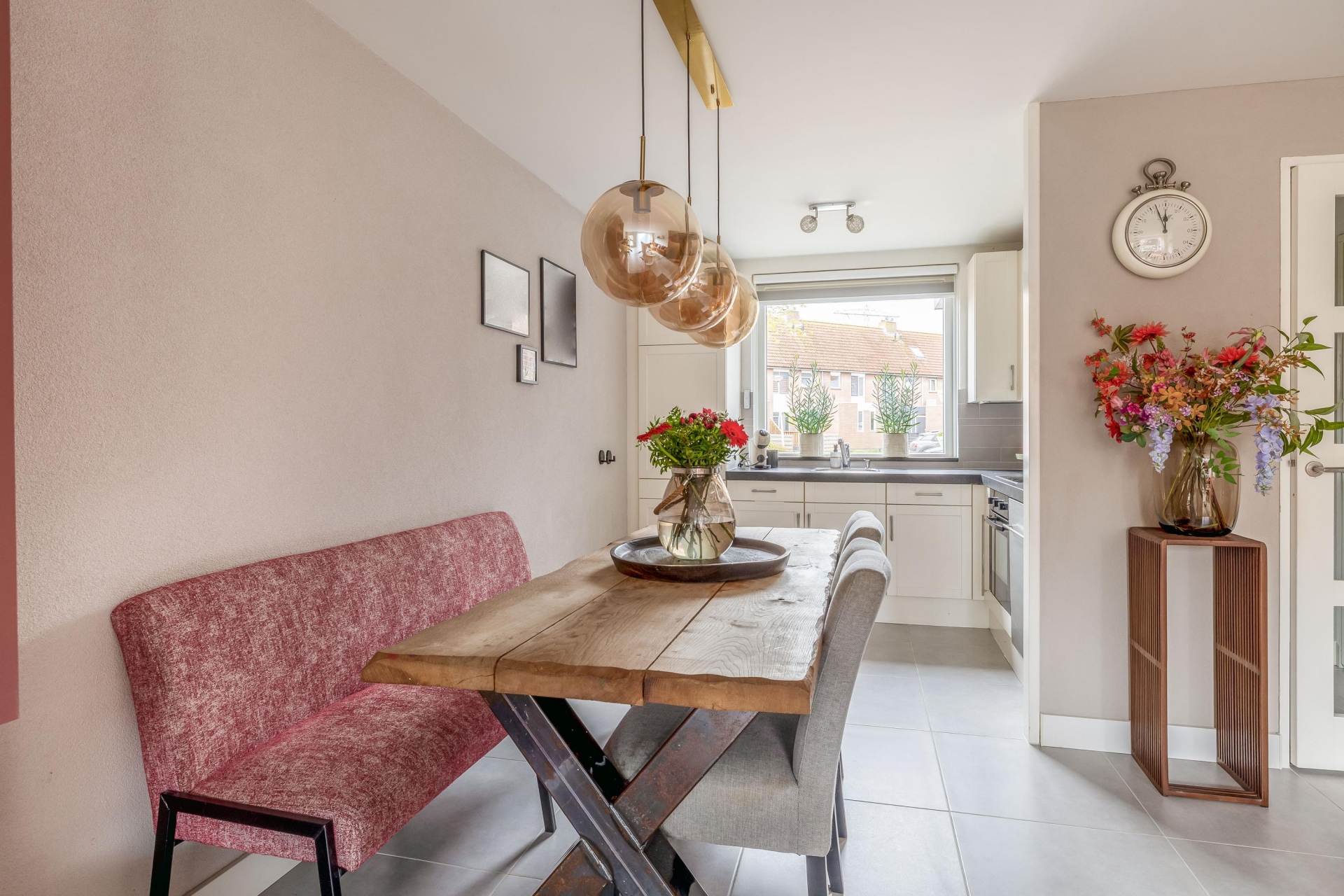 Aan de voorzijde van het huis ligt de keuken. Deze is praktisch ingericht en voorzien van de benodigde inbouwapparatuur. Door de ligging aan de straatzijde heb je hier prettig licht en contact met buiten.
