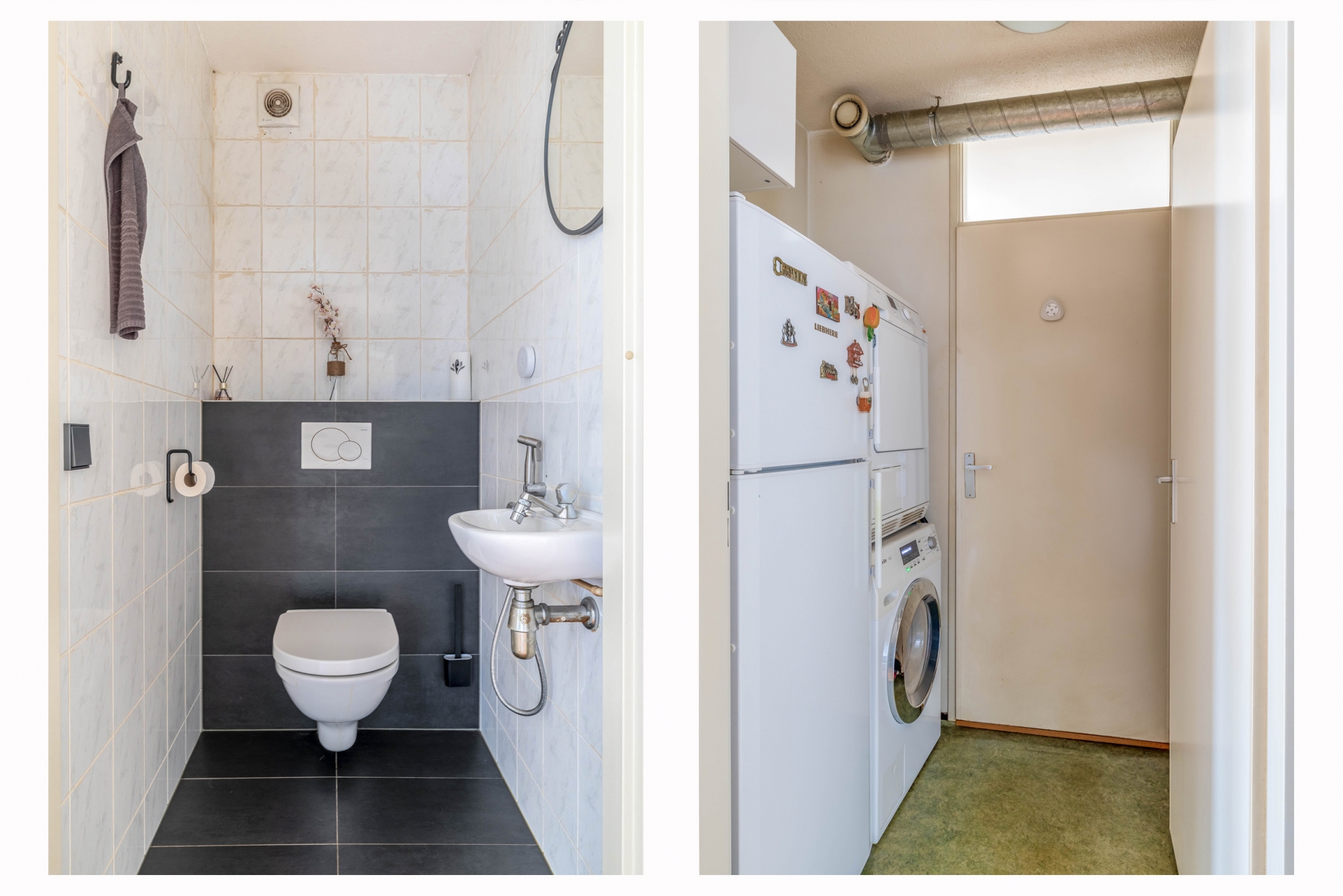 Parkeer je auto op je eigen parkeerplaats en stap binnen in dit comfortabele appartement op de eerste verdieping! Er is een ruim terras aan de achterzijde gelegen op het noordoosten (ca. 20m²) waar je veel privacy hebt. Ben je een zonliefhebber? Aan de voorzijde zijn maar liefst twee balkons gelegen op het zuidwesten. De indeling is ideaal, met de balkons grenzend aan de lichte woonkamer met een open hoekkeuken met inbouwapparatuur. Vanuit de ruime woonkamer heb je een mooi uitzicht en veel zonlicht. Verder zijn er twee ruime slaapkamers en een grote badkamer met ligbad, inloopdouche, wastafelmeubel en extra toilet. De hal is heel ruim opgezet, wat zorgt voor comfort en een ruimtelijk gevoel. Er is een handige inpandige berging/bijkeuken aanwezig, daar bevindt zich ook de aansluiting van de wasmachine. Wat wens je nog meer?!