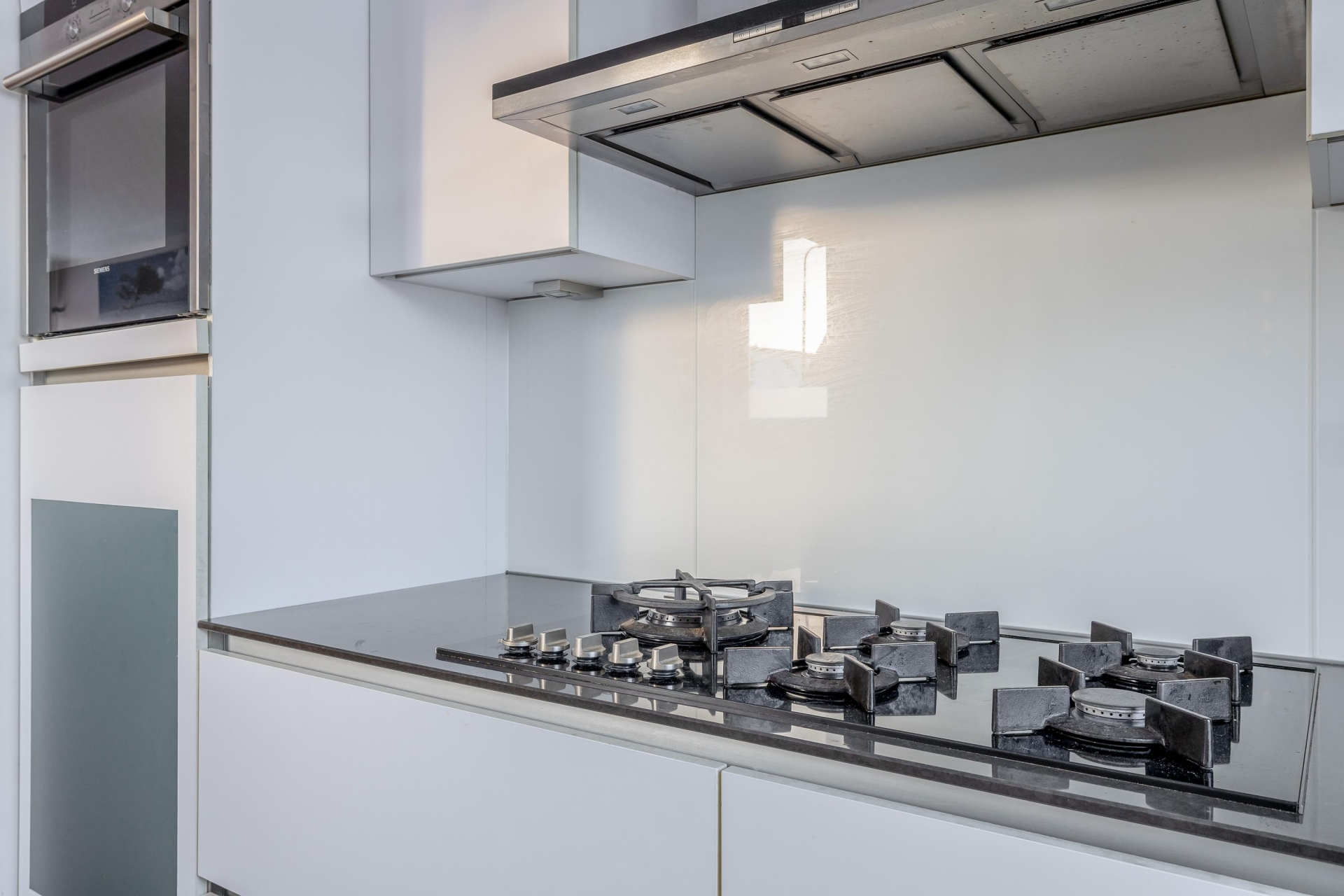 De open keuken is aan de voorzijde van de woning gesitueerd en voorzien van diverse inbouwapparatuur, waaronder een 5-pits fornuis, afzuigkap, oven, koelkast, vriezer en vaatwasser.