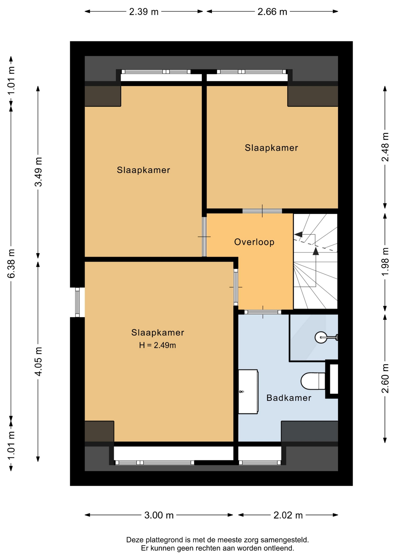 • Slaapkamers op de eerste verdieping en dakramen op zolder voorzien van rolluiken