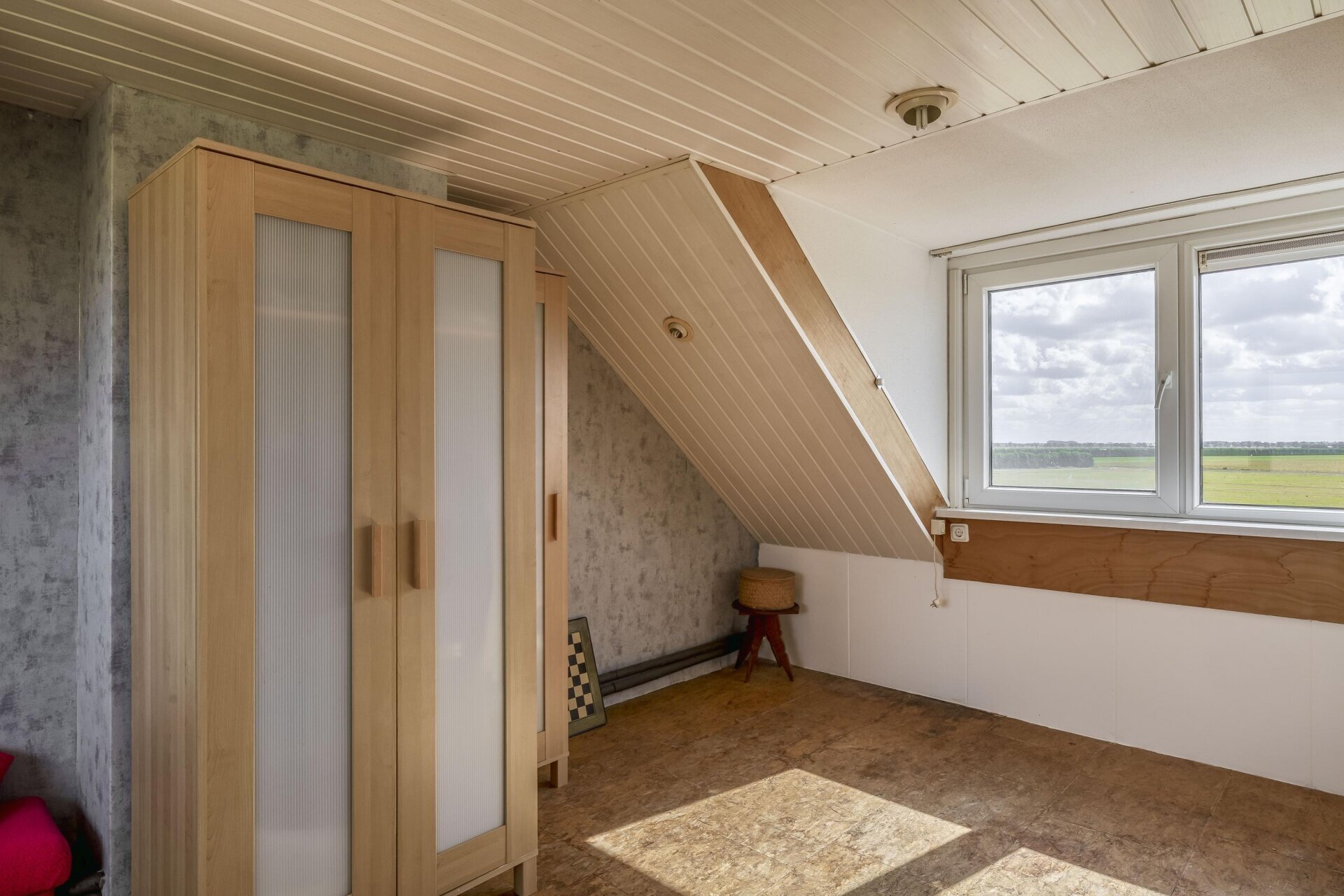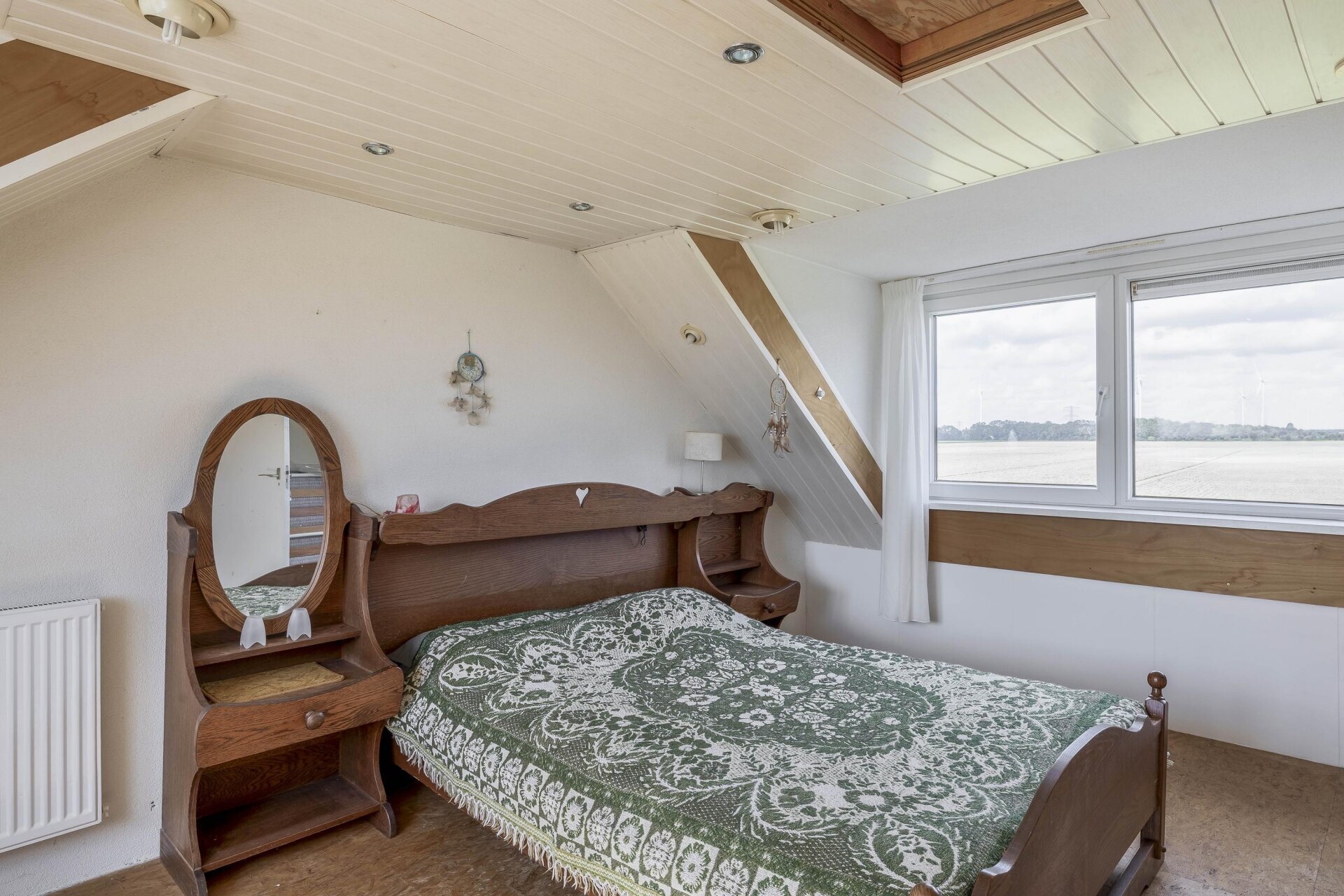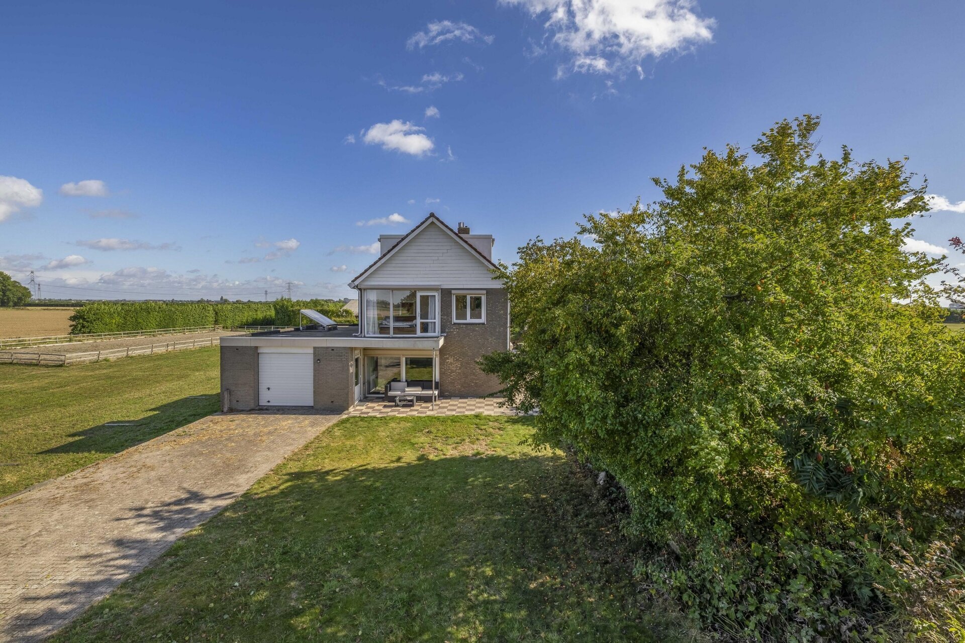 Op de eerste verdieping zijn twee ruime slaapkamers en een tweede badkamer aanwezig, compleet met dubbele wastafel en een separaat tweede toilet en elektrische vloerverwarming. Vanuit de grootste kamer kijk je uit op het dakterras en de achterliggende weilanden, wakker worden met een uitzicht dat nooit verveelt.