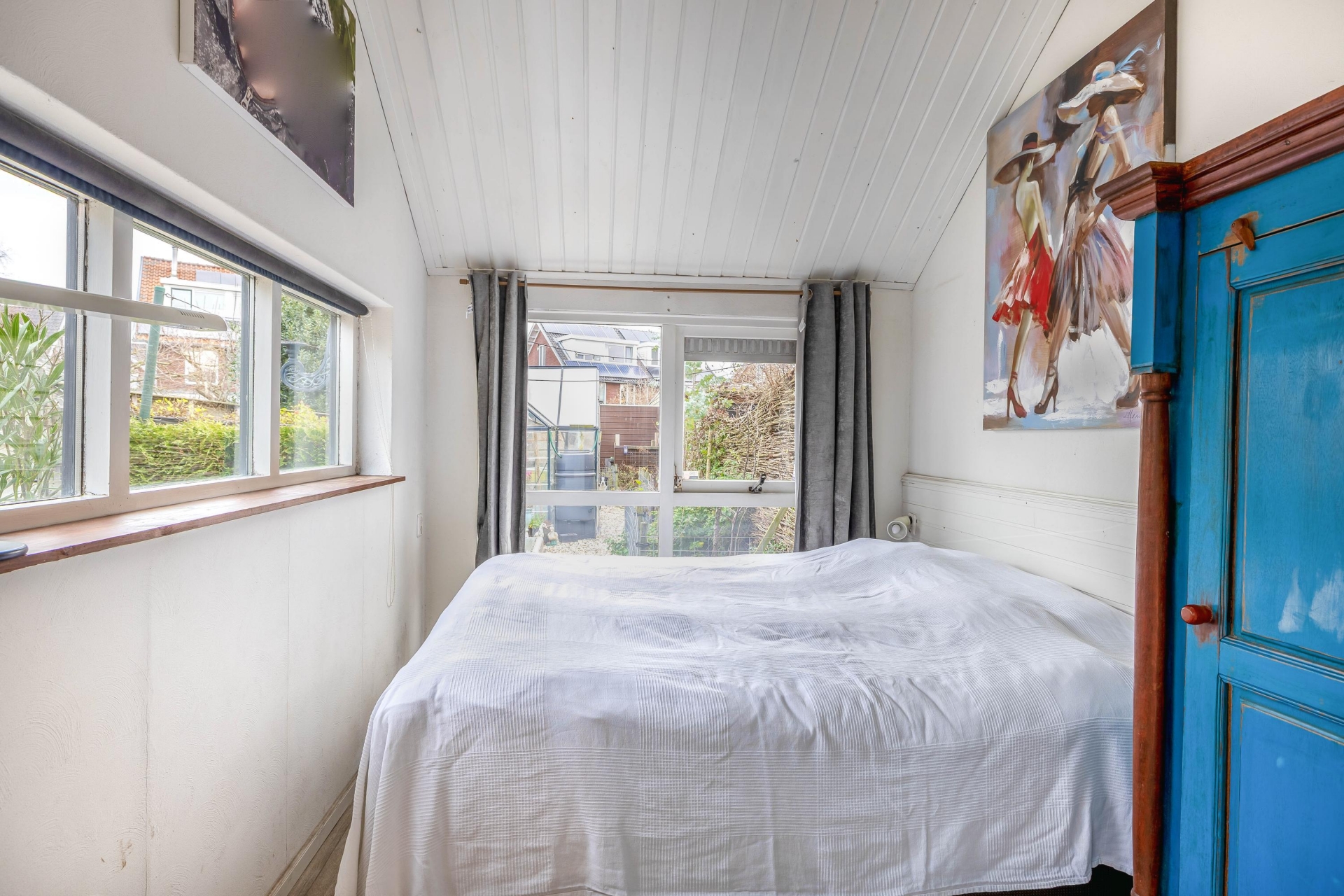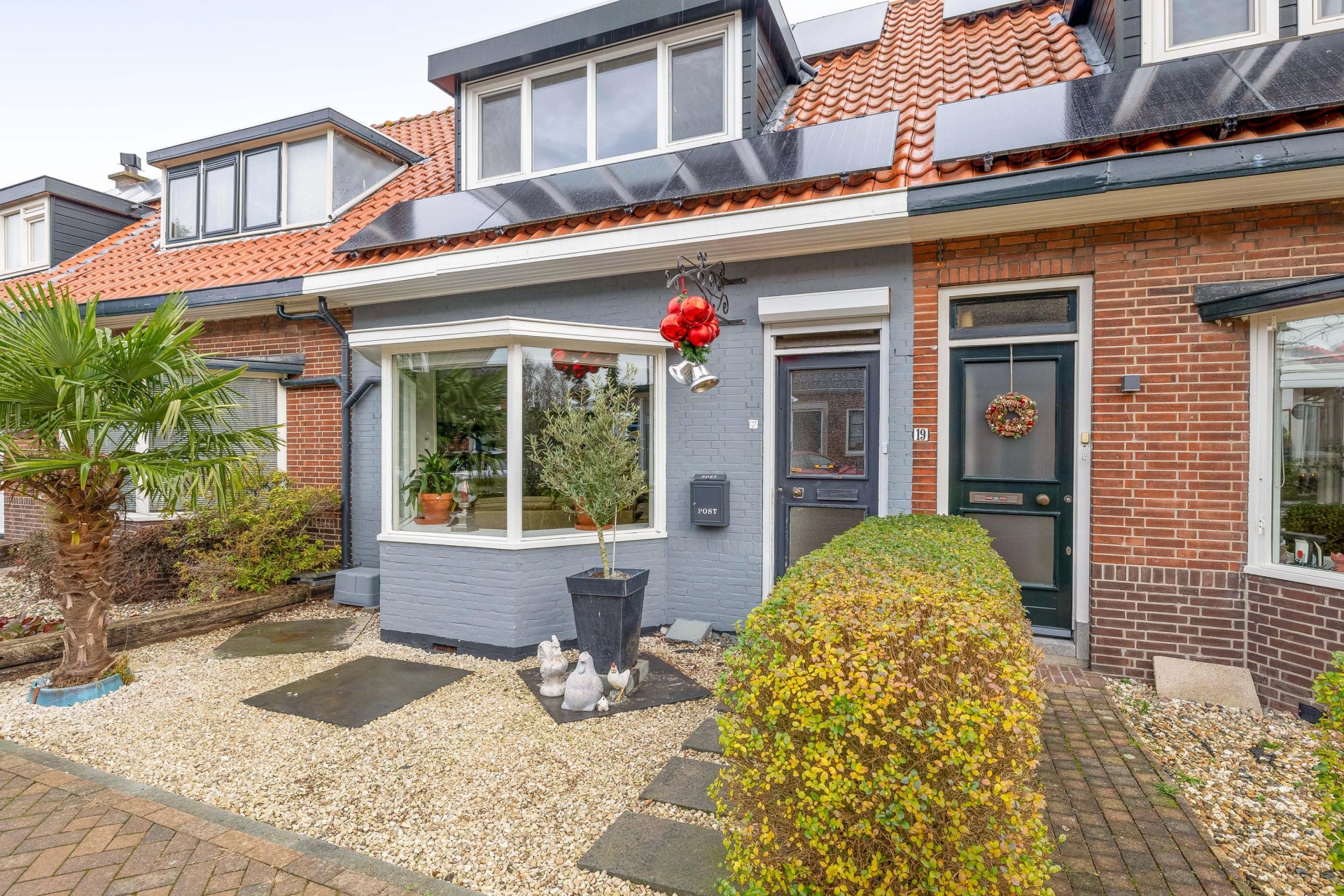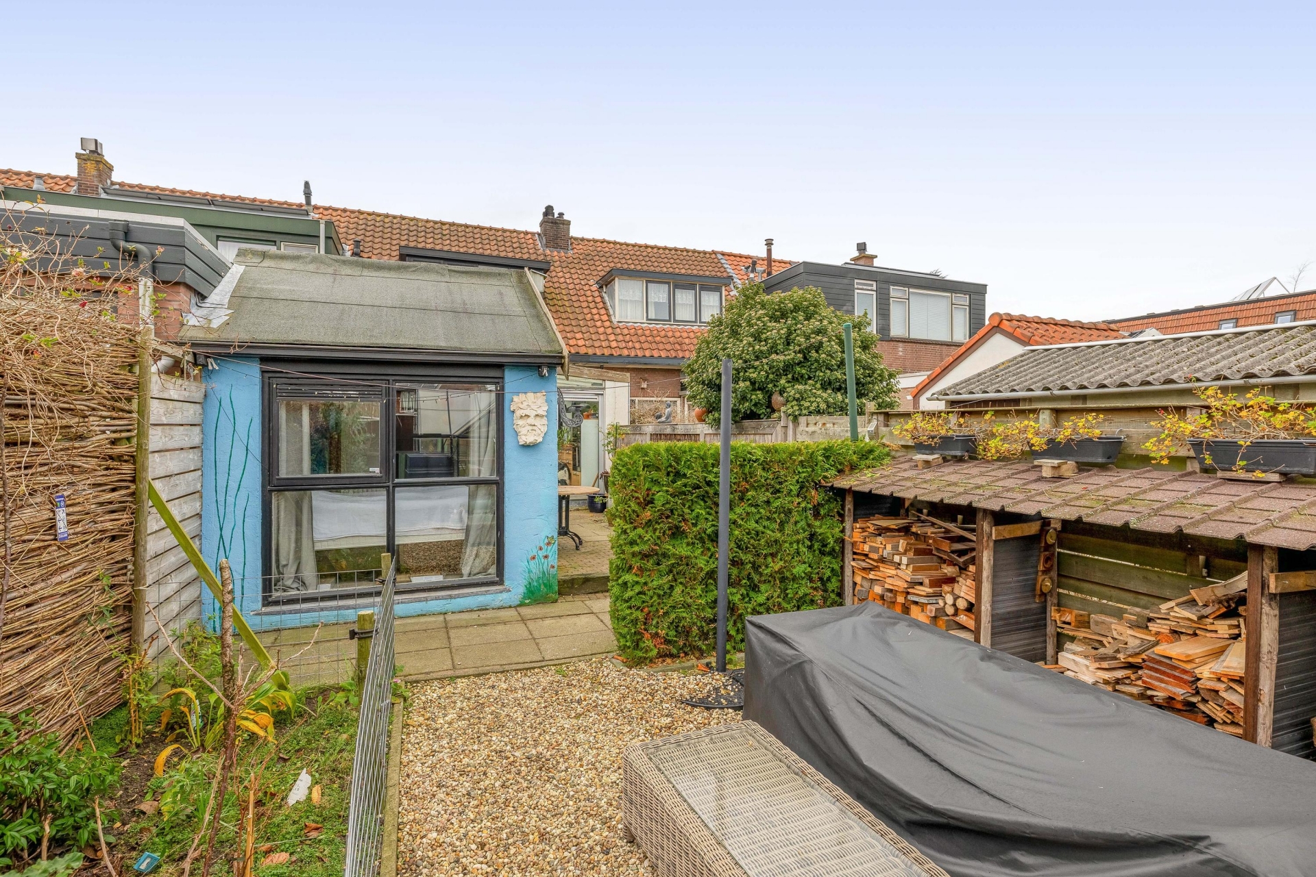 De achtertuin is met recht een van de grote pluspunten van dit huis. Met een diepte van circa 28 meter is er plek genoeg voor een loungeset, speelplek voor kinderen, een moestuin of zelfs een kas — zoals je die nu al aantreft in de tuin. De tuin is netjes aangelegd met een combinatie van groen, grindpaden en een terras. Achterin vind je twee stenen bergingen met elektra: ideaal voor fietsen, gereedschap of je hobbyspullen. En via de achterom ben je zo weer op straat. Dankzij de ligging op het noordwesten profiteer je hier van middag- en avondzon, perfect voor een BBQ of een glas wijn na werk. De voortuin zorgt daarnaast voor extra privacy aan de straatzijde.