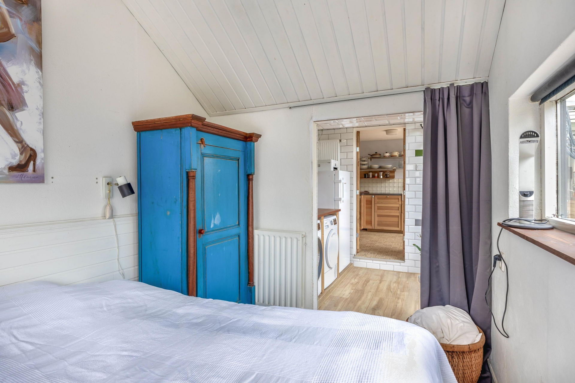 Op de eerste verdieping zijn 2 slaapkamers, waarvan de grootste aan de voorzijde ligt. De kamers zijn praktisch ingedeeld, voorzien van dakramen of dakkapellen en bieden volop mogelijkheden voor logees, kinderen of een thuiswerkplek. Ook de badkamer bevindt zich op deze verdieping en is voorzien van een douche en wastafel. Alles is netjes onderhouden, met ruimte om eventueel naar eigen smaak te moderniseren. De 3e slaapkamer is op de begane grond gesitueerd. Via een portaal op de begane grond heb je toegang tot de wasruimte met opstelplaats voor wasmachine en droger. Ook hier is aan comfort gedacht. De woning beschikt daarnaast over dakisolatie en dubbel glas, en wordt verwarmd met een moderne Intergas HRE CV-ketel uit 2024 (eigendom). Extra sfeer krijg je door de houtkachel in de woonkamer.