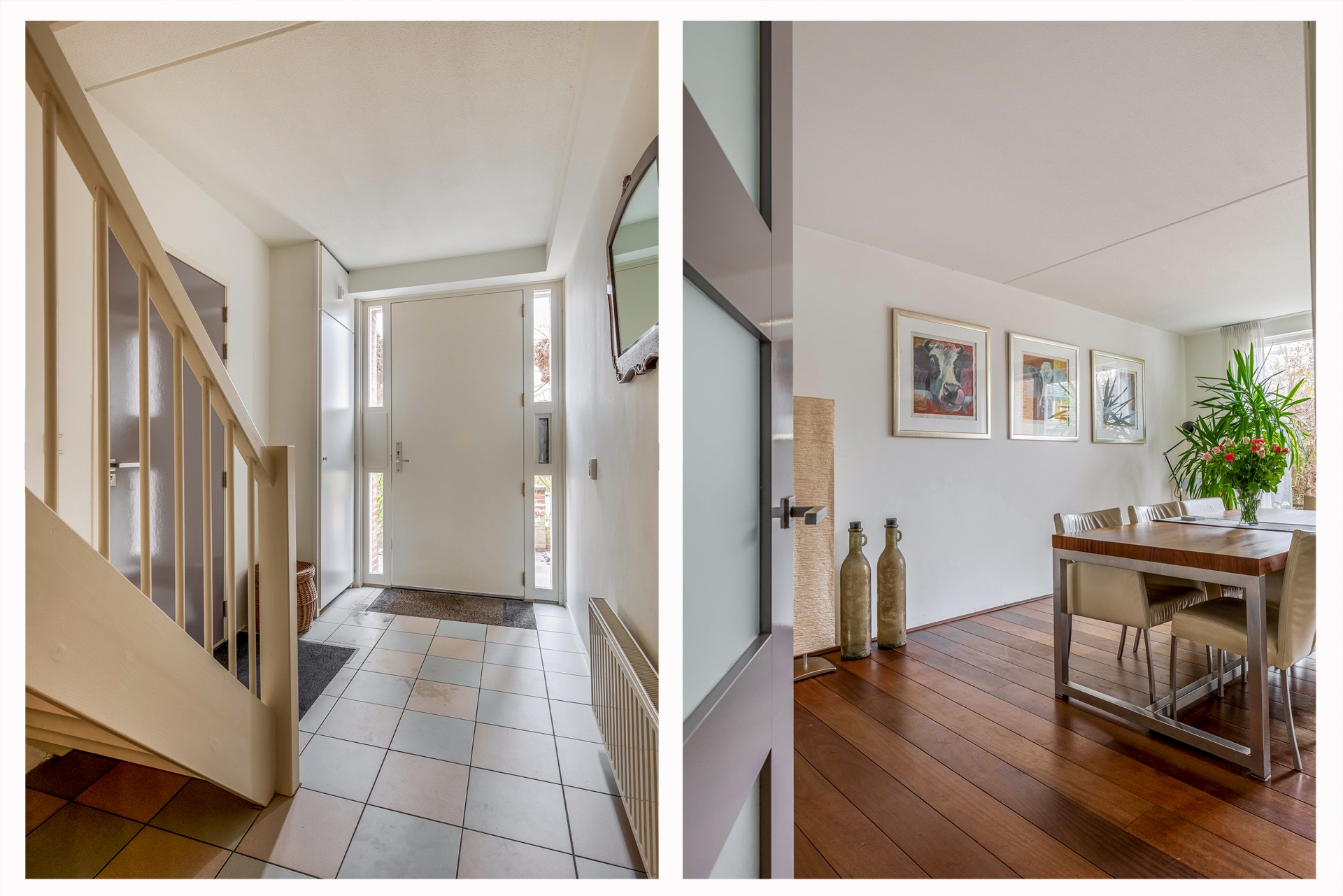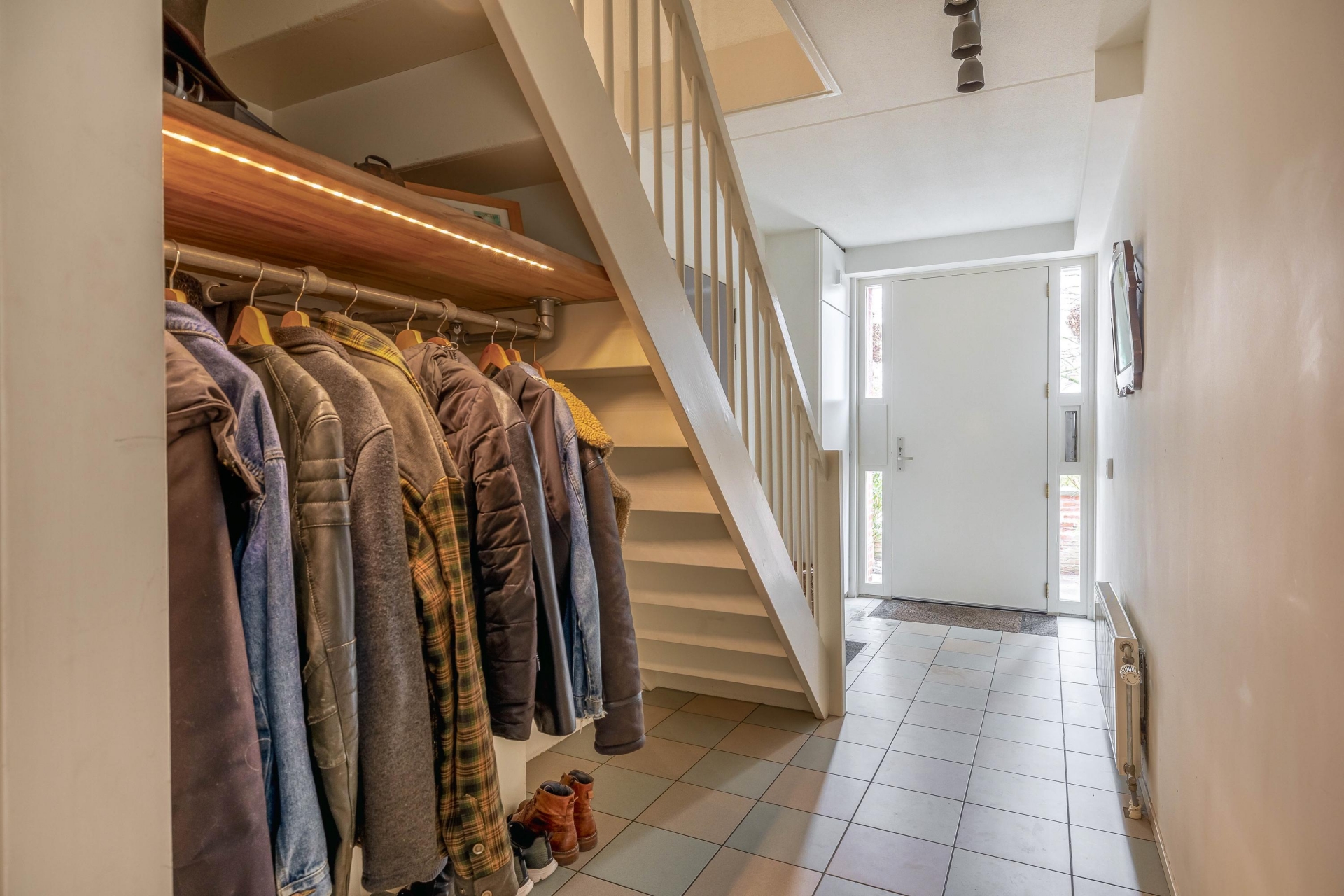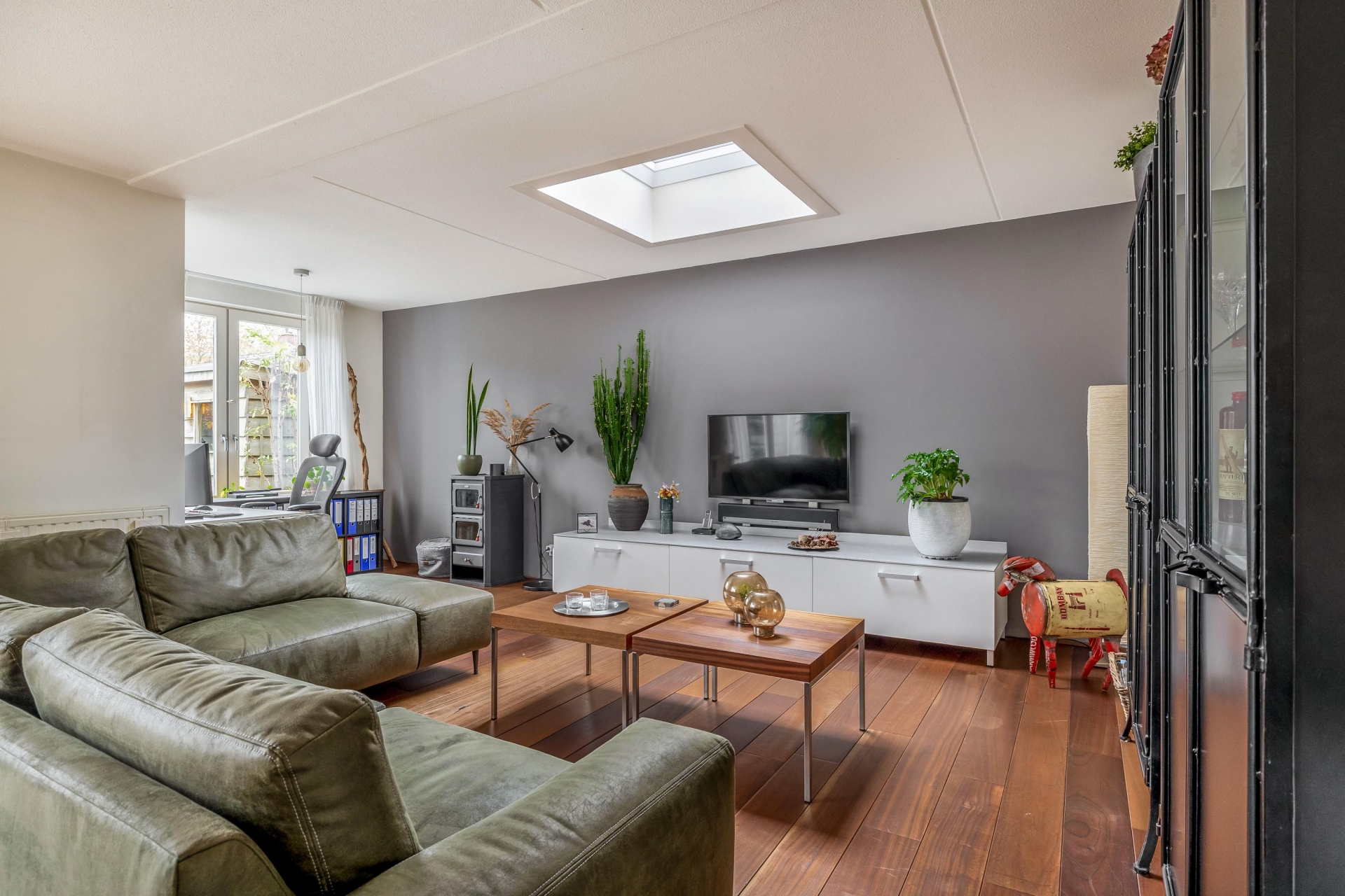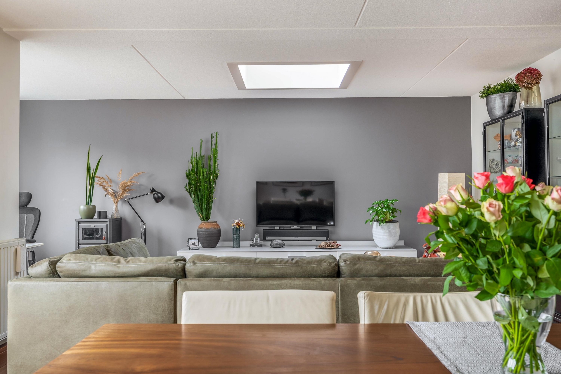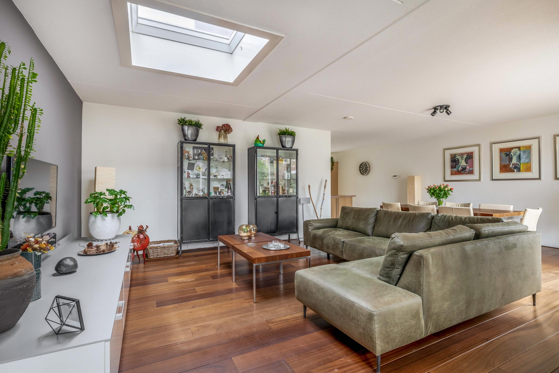 De woonkamer van circa 35 m² is tuingericht en heerlijk licht dankzij de grote raampartijen. Vanuit hier kijk je zo de groene achtertuin in. De begane grond is praktisch ingedeeld met een ruime hal, toilet, toegang tot de inpandige garage én natuurlijk de open keuken aan de voorzijde. De keuken is voorzien van inbouwapparatuur en een fijne plek voor een grote eettafel, waar je met het hele gezin of met vrienden lekker kunt tafelen. De woonkamer en keuken lopen naadloos in elkaar over en maken dit een fijne leefruimte met volop mogelijkheden.