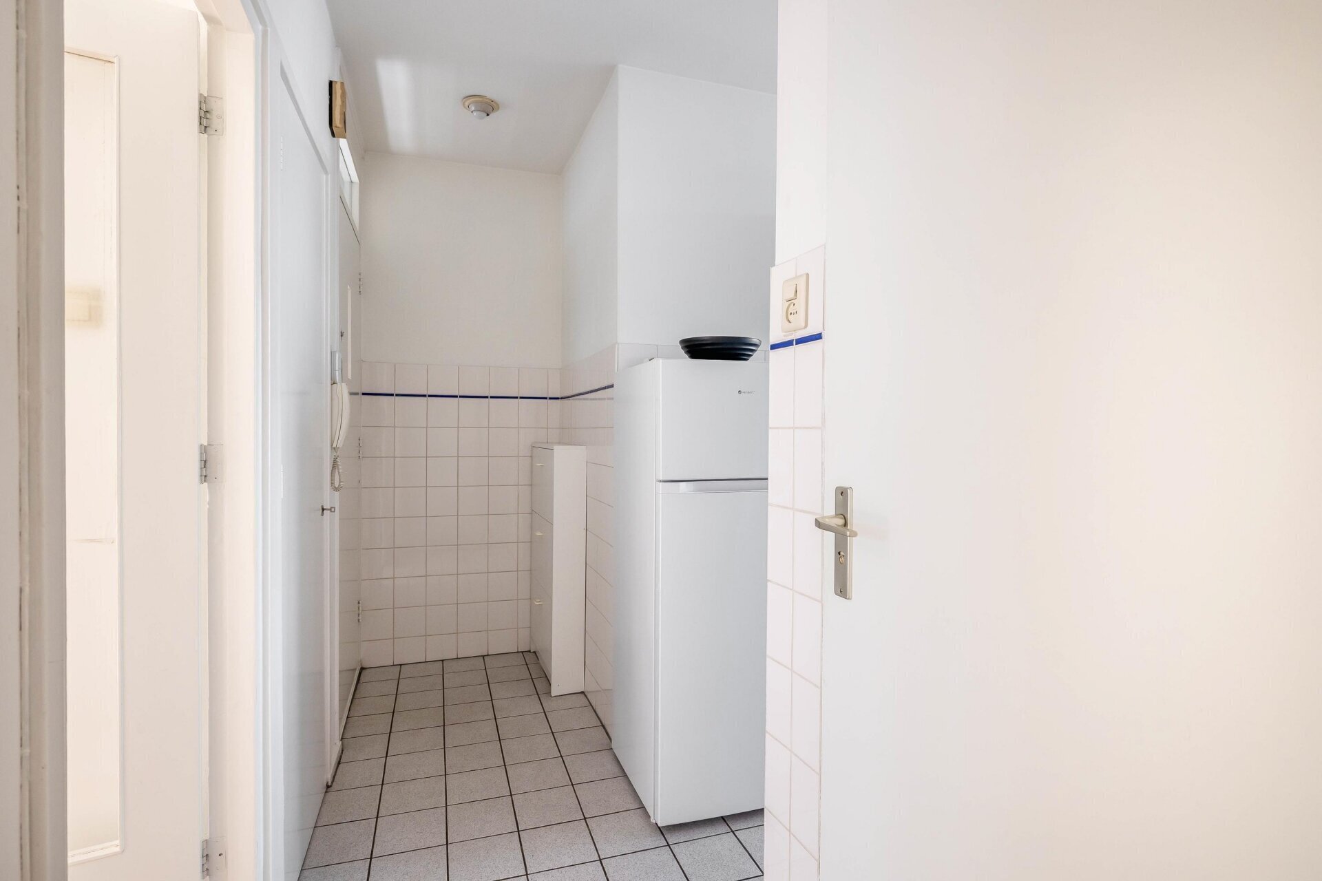 De keuken is netjes en functioneel ingericht met voldoende kastruimte, een gasfornuis en aansluiting voor de wasmachine. Dankzij het raam aan de achterzijde heb je hier tijdens het koken ook natuurlijk licht en ventilatie. De badkamer is compact maar praktisch en voorzien van een douche en wastafel. Ook het toilet is separaat aanwezig in de hal.