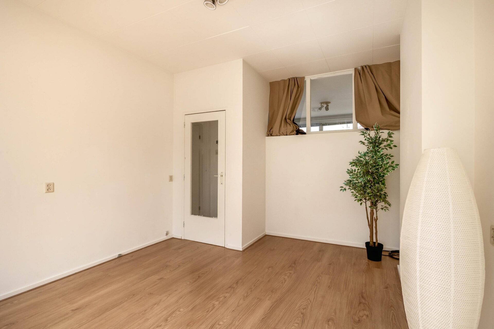 De woonkamer is licht en overzichtelijk met een grote raampartij. Hier kijk je vrij uit over de straat. Door de ligging op het oosten geniet je in de ochtend van de zon in je woonkamer – een heerlijke plek om de dag rustig op te starten. De lichte laminaatvloer en lichte wanden zorgen voor een neutrale basis die je makkelijk naar eigen smaak kunt aankleden.
