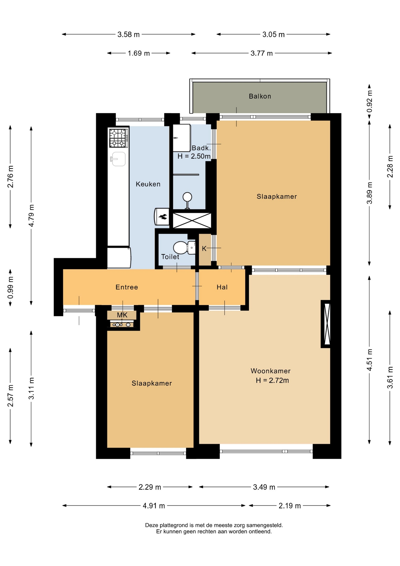 “Deze informatie is door ons met de nodige zorgvuldigheid samengesteld. Onzerzijds wordt echter geen enkele aansprakelijkheid aanvaard voor enige onvolledigheid, onjuistheid of anderszins, dan wel de gevolgen daarvan. Alle opgegeven maten en oppervlakten zijn indicatief.”