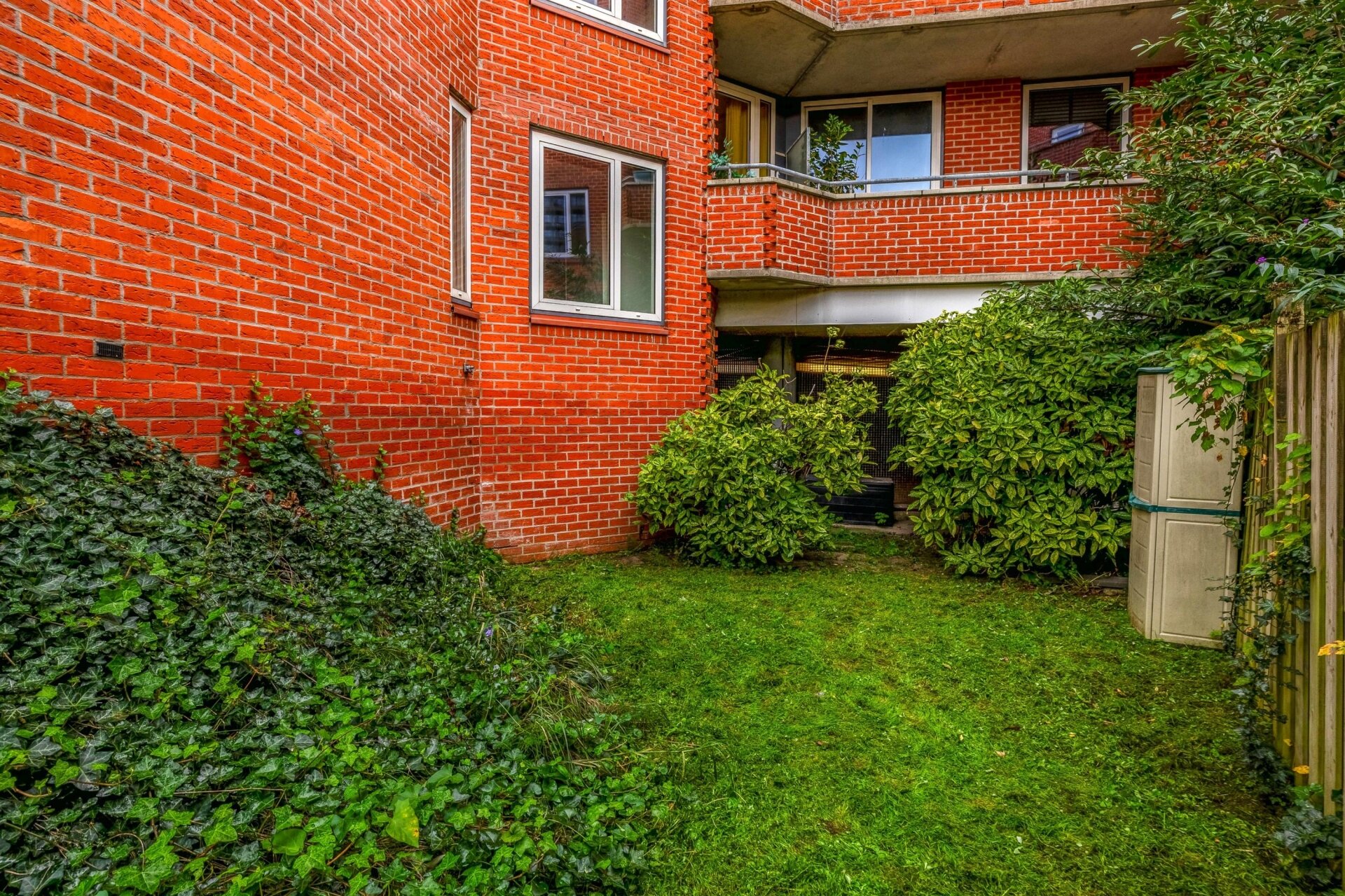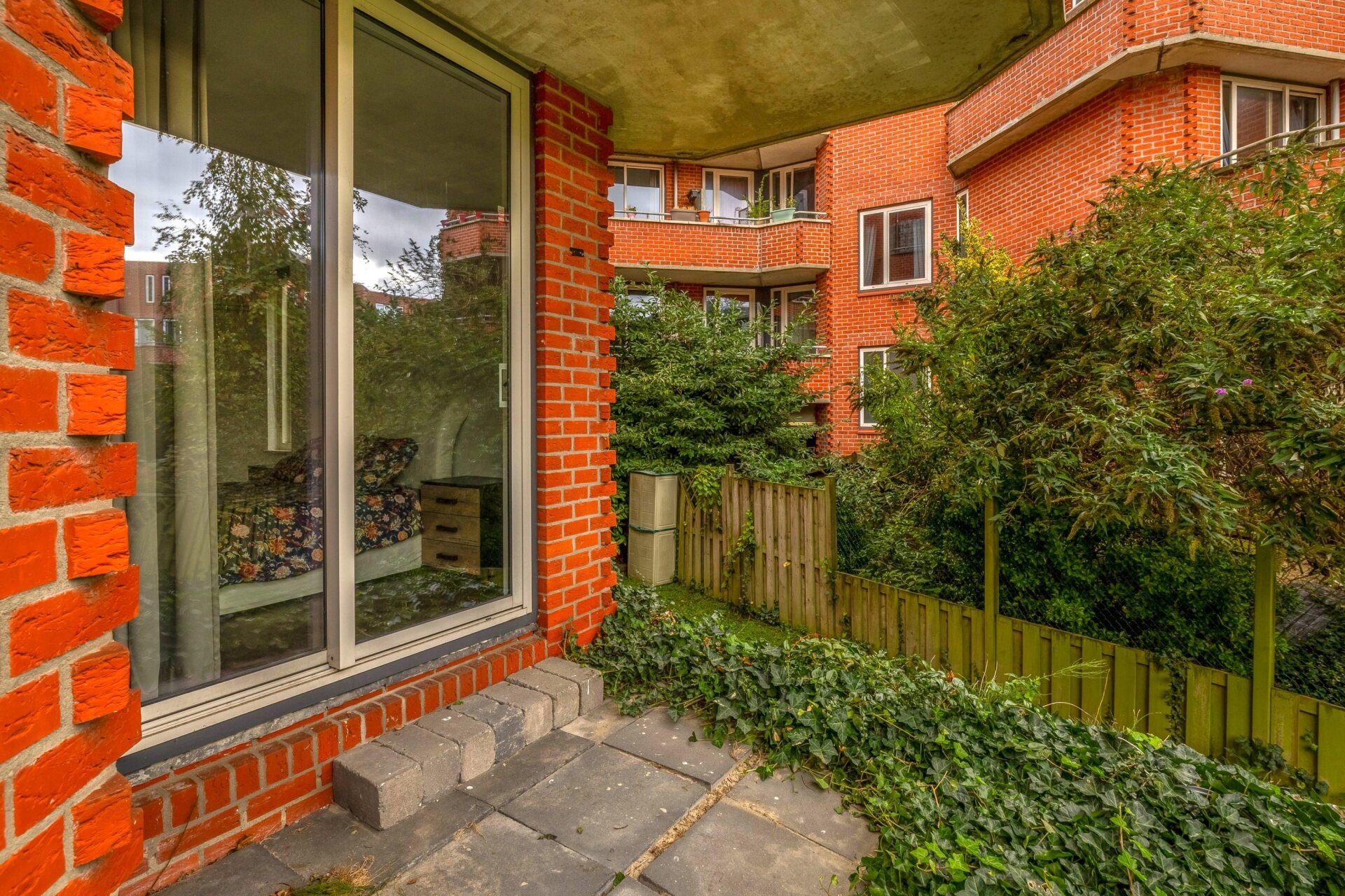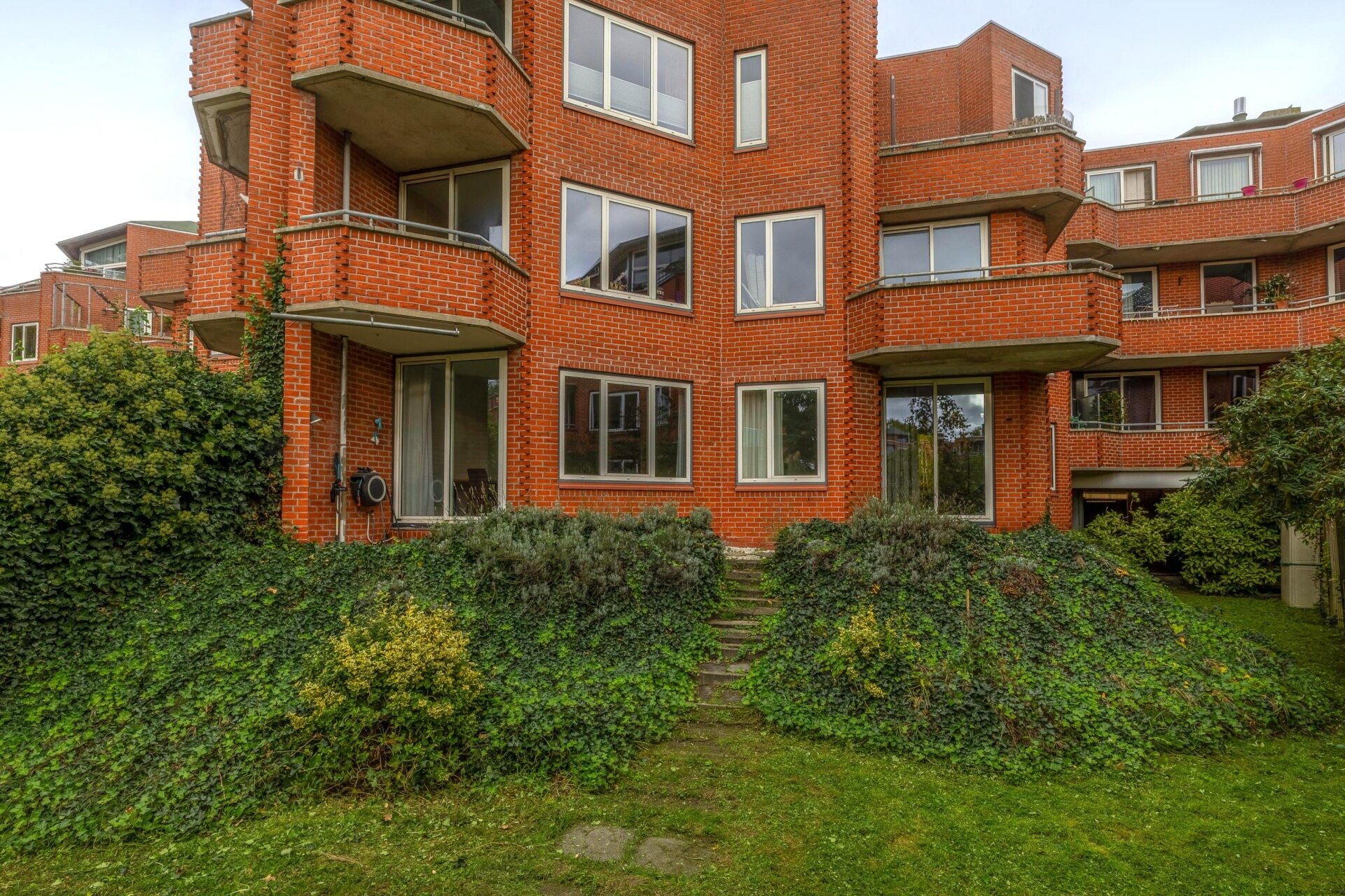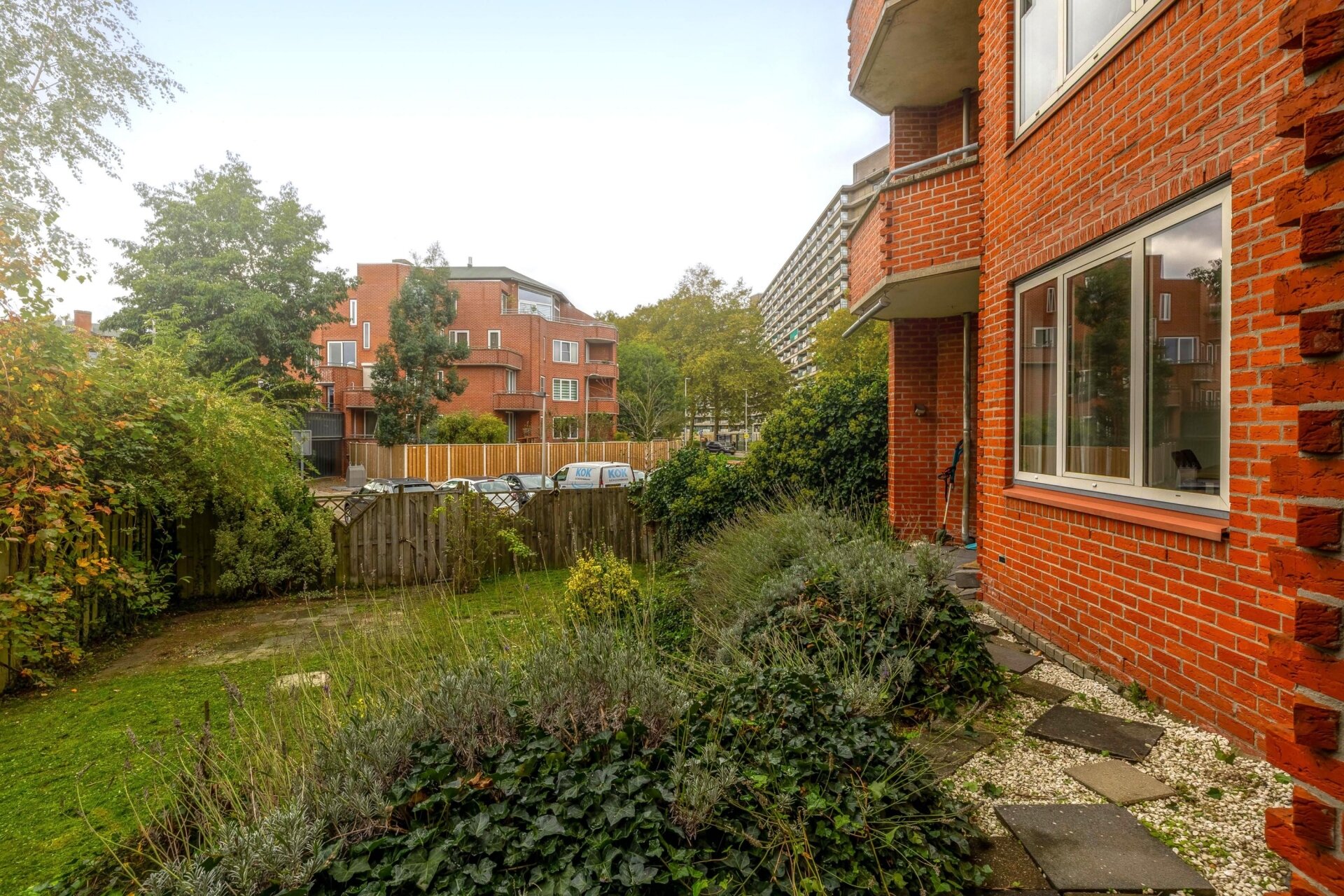 Zowel vanuit de woonkamer als een slaapkamer is middels een schuifpui de achtertuin toegankelijk. De riante tuin van circa 90 m2 is gelegen op het zuidwesten en een groot pluspunt van dit appartement. Hierdoor is het mogelijk om de hele middag en avond van de zon te kunnen genieten. Door het aanwezige hoogteverschil heeft de tuin een speelse indeling en biedt deze diverse mogelijkheden voor zitjes in de zon en de schaduw. Verder beschikt de tuin over een buitenkraan en een deur in de schutting met toegang tot de Hellingweg. Officieel mag hier geen deur zijn, maar dit is al minimaal tien jaar gedoogd.