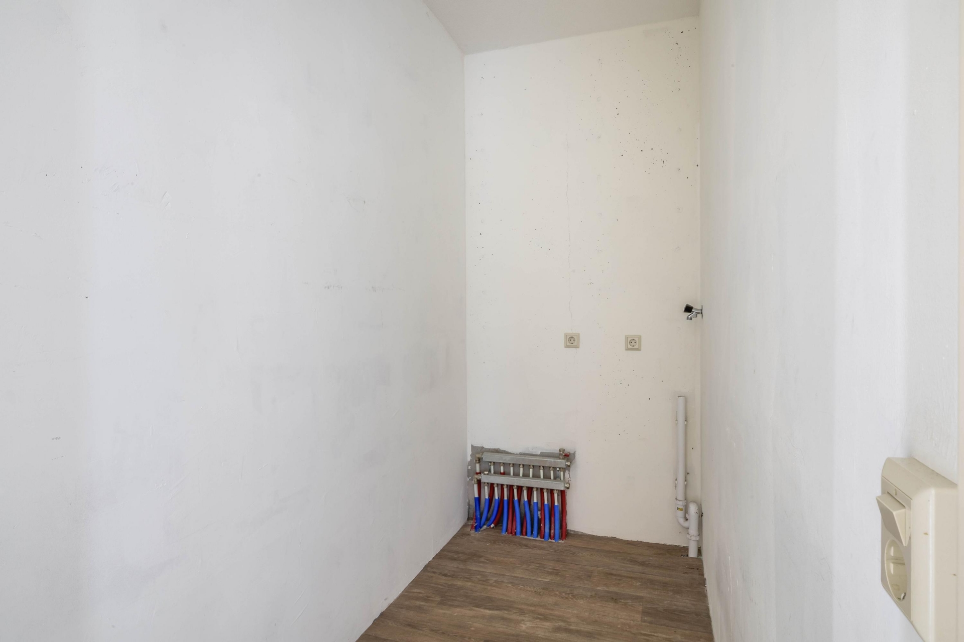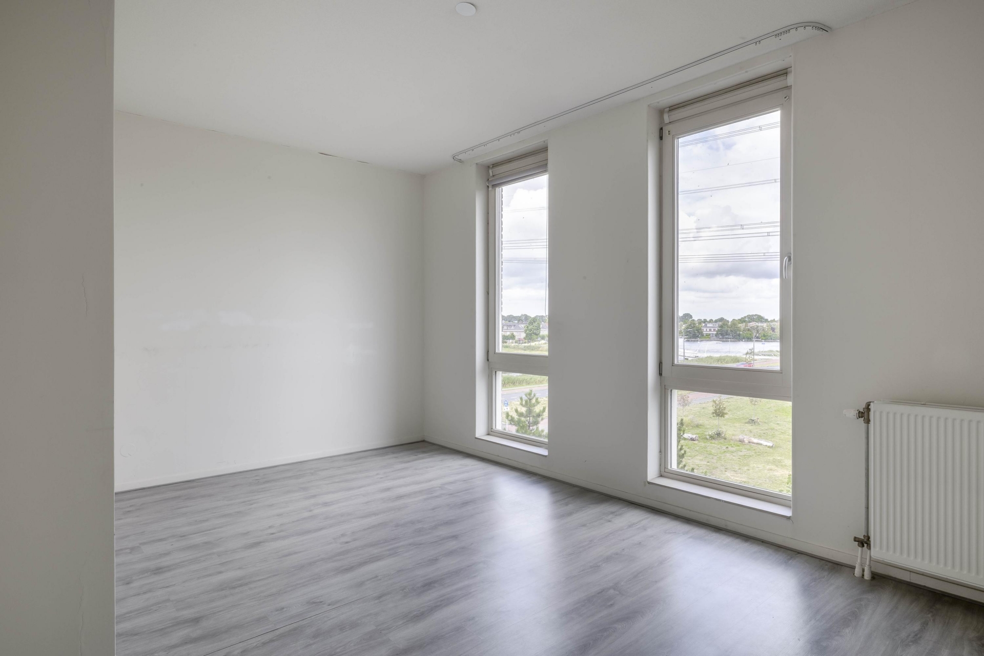 Entree, ruime hal met toegang tot 2 slaapkamers, de badkamer, een inpandige berging, het toilet, de meterkast en de woonkamer met open keuken. Er is een ruime woonkamer met complete open keuken aanwezig. Deze hebben samen een oppervlakte van bijna 50 m²! De keuken is voorzien van diverse inbouwapparatuur en biedt ruimte genoeg voor een royale eettafel. Vanuit de woonkamer is er middels een schuifpui een Frans balkon. Vanaf hier is er een waanzinnig uitzicht over het Rietveldpark!