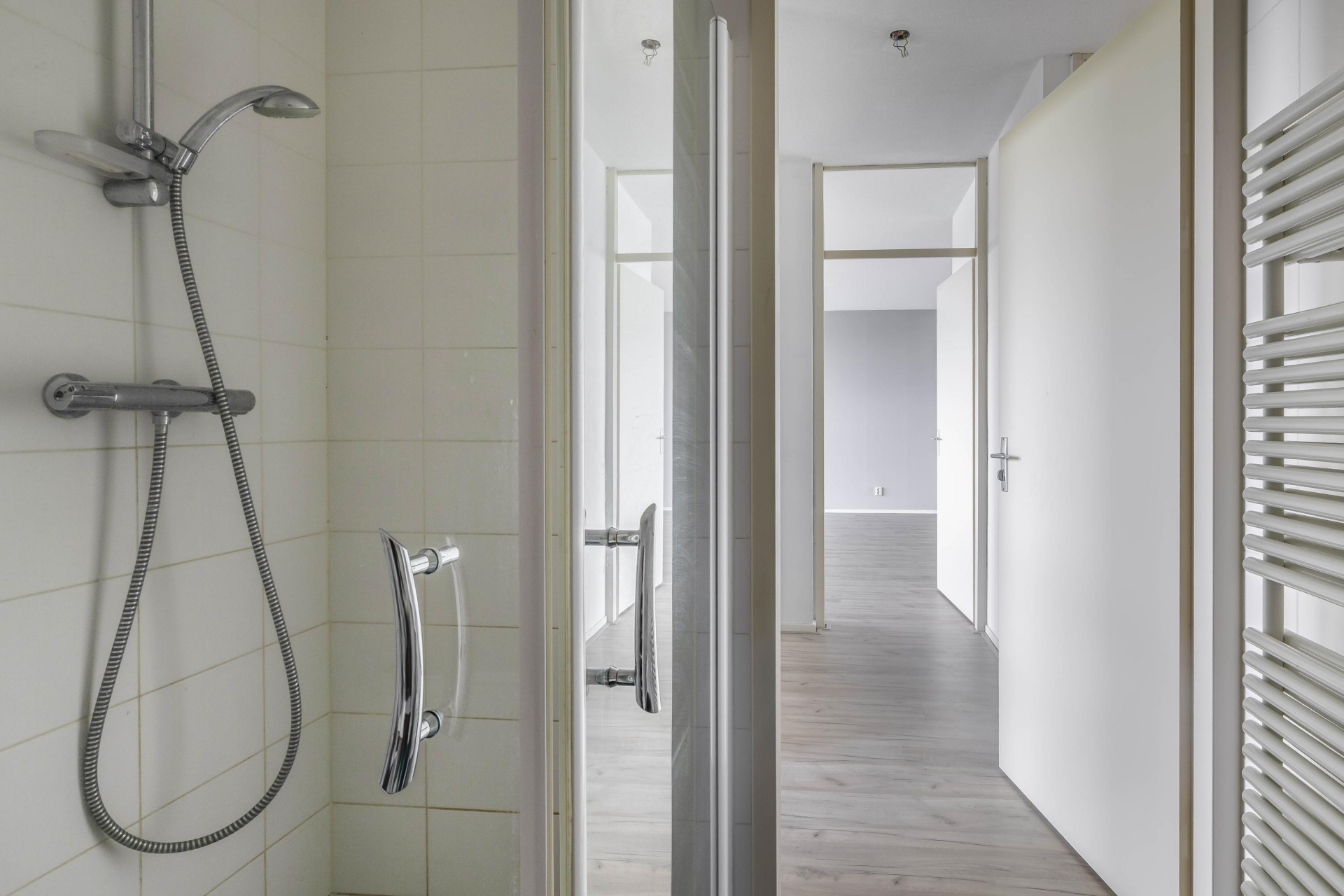 De twee slaapkamers zijn goed van formaat en beschikken over een laminaatvloer. Door het hele appartement, met uitzondering van de natte ruimtes, is de laminaatvloer doorgelegd. De inpandige badkamer is volledig betegeld en voorzien van een ligbad, douche en wastafel. De inpandige berging biedt ruimte voor een wasmachine en droger. Het toilet is apart – wel zo prettig voor bezoek.