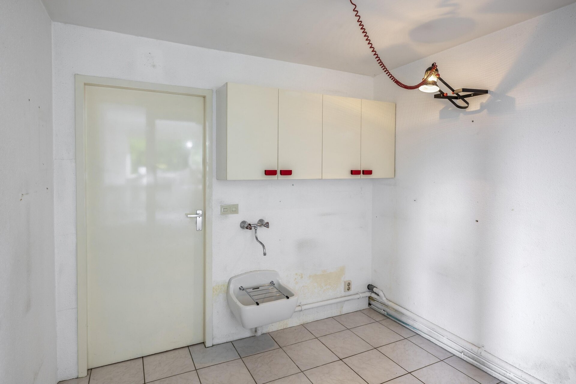 De keuken is royaal en biedt voldoende werkruimte, opbergruimte en potentie voor een luxe woonkeuken. Aansluitend vind je de praktische bijkeuken.