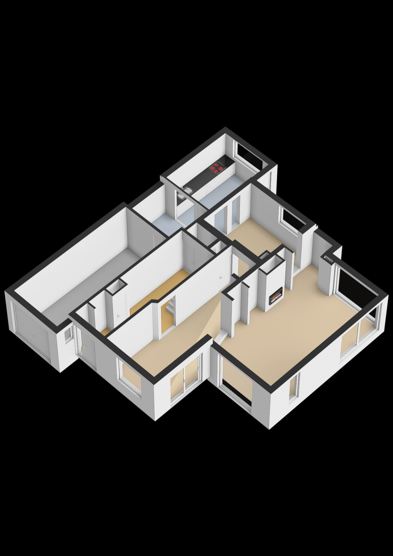 De begane grond verrast direct met een grote, lichte living die op een speelse manier overgaat in een eetgedeelte en aansluit op de keuken. Dankzij het split-level element in de woonkamer ontstaat er een gezellige dynamiek in de ruimte. De living heeft grote raampartijen, zicht op de tuin en een open haard als sfeervol middelpunt.