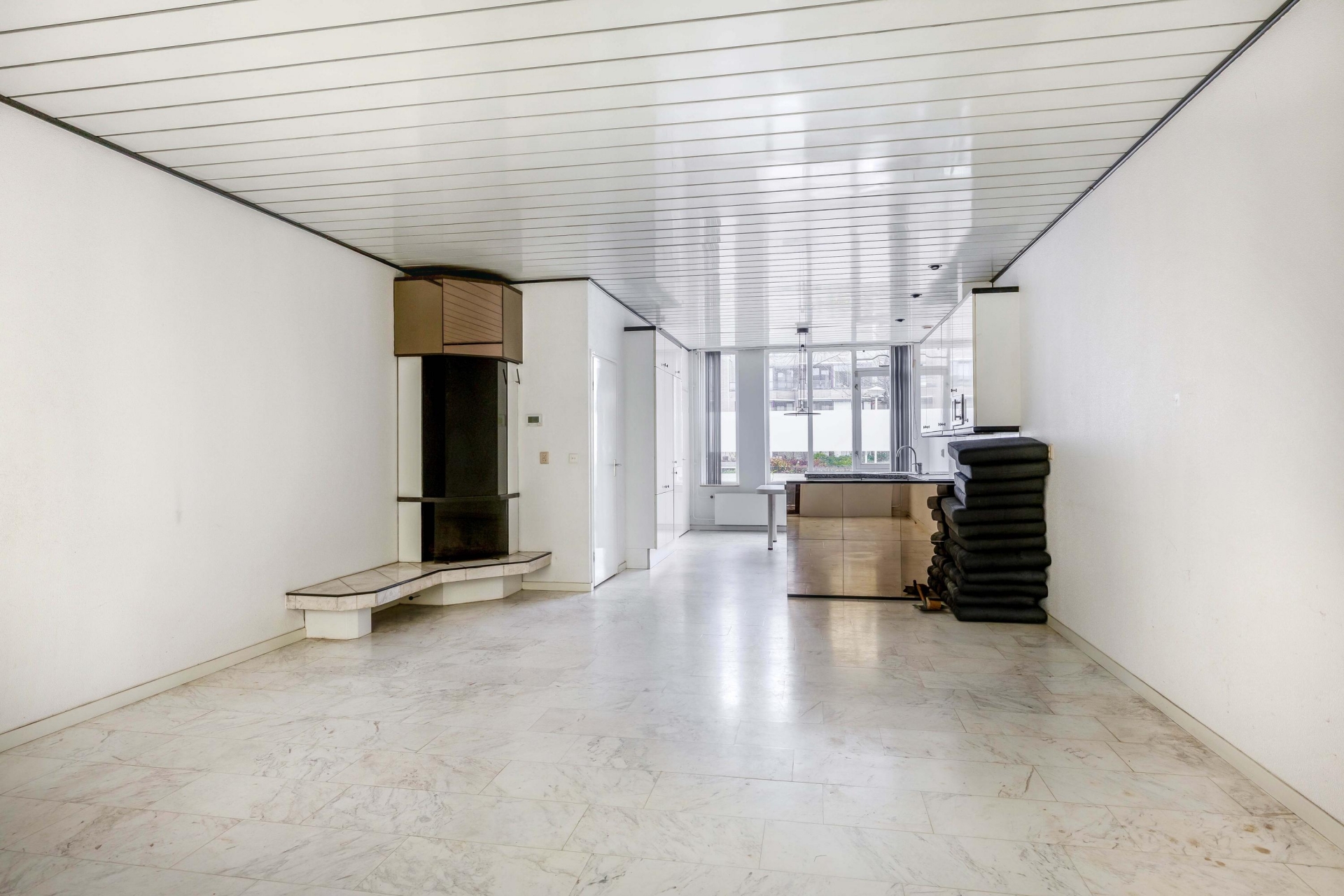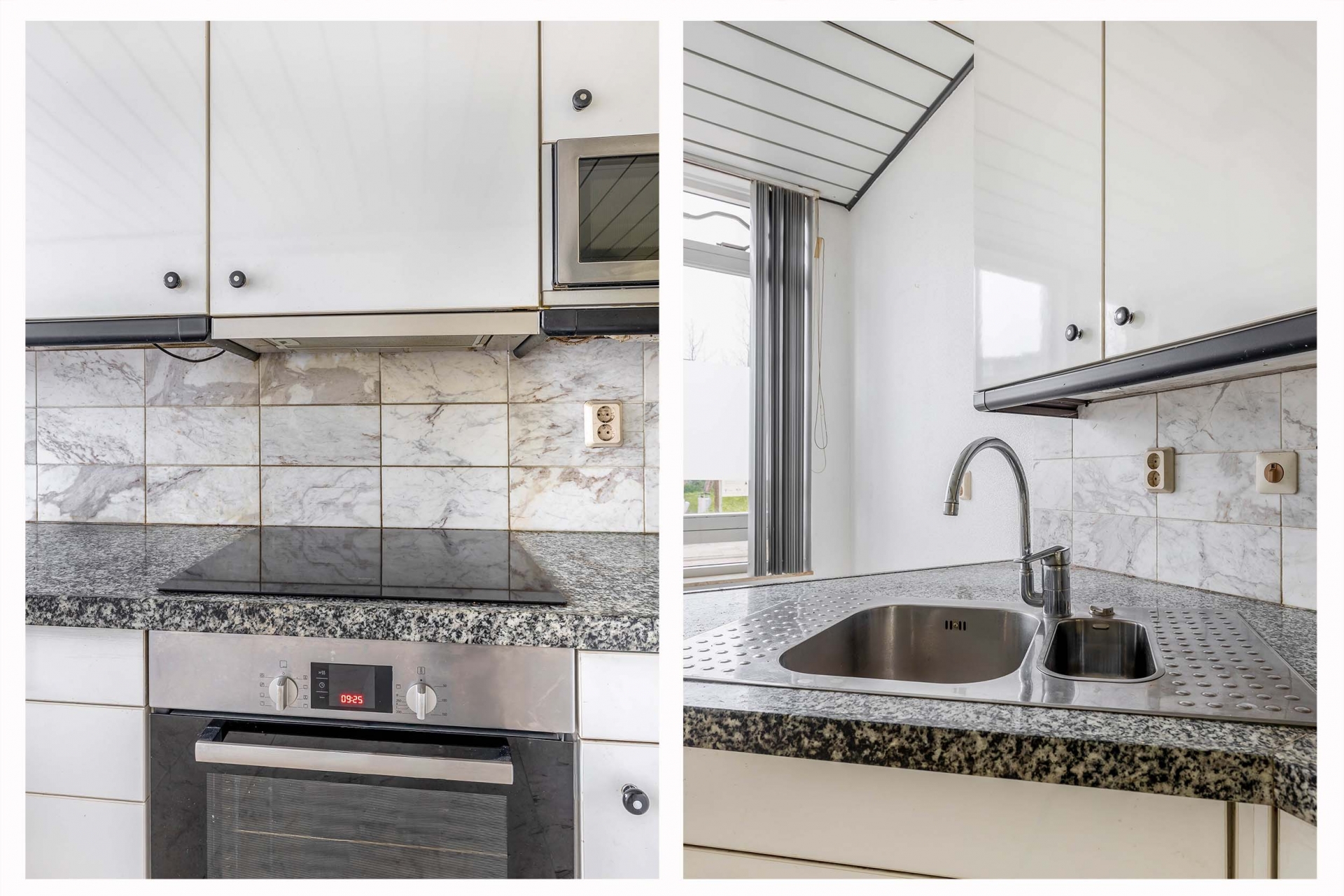 De woonkamer is ruim opgezet en biedt dankzij de schuifdeur naar de tuin een mooie lichtinval en het echte gevoel van rust. Zittend in de woonkamer geeft bijna een vakantie gevoel met de warme sferen van de open haard (Boley) en het prachtige uitzicht naar buiten. De lichte, marmeren vloer en neutrale afwerking maken het een fijne basis om naar eigen smaak in te richten. Aan de voorzijde bevindt zich de keuken in hoekopstelling. Deze is voorzien van diverse inbouwapparatuur en biedt voldoende werk- en kastruimte.
