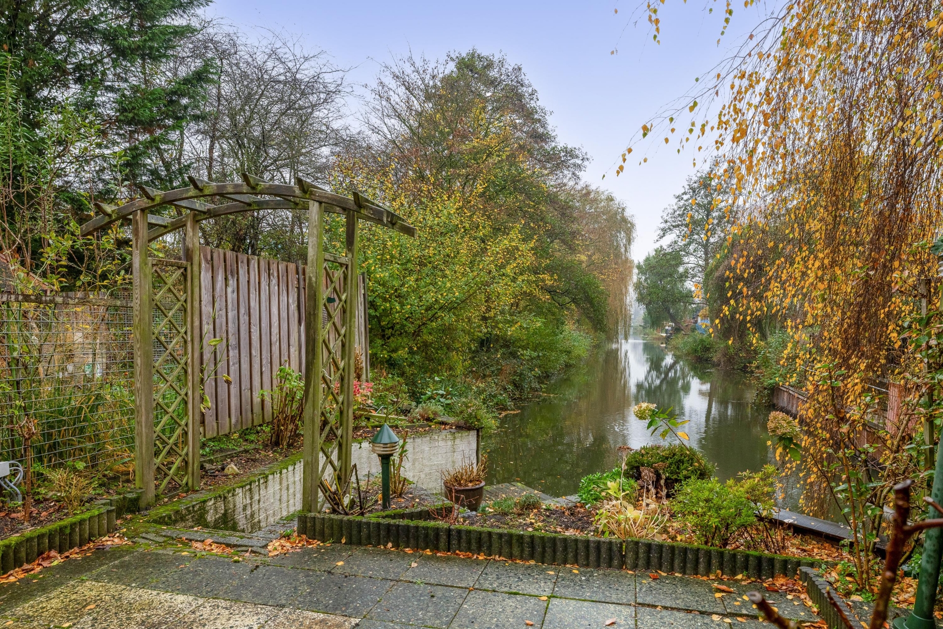 De achtertuin is een van de echte blikvangers van dit huis. Direct grenzend aan het water is dit dé plek waar je na een lange werkdag tot rust komt met uitzicht op groen en water. De tuin is gelegen op het noordwesten, wat betekent dat je vooral in de middag en avond heerlijk van de zon kunt genieten. Stap via de schuifpui zo je terras op naar de houten vlonder aan het water en geniet van het buitenleven.