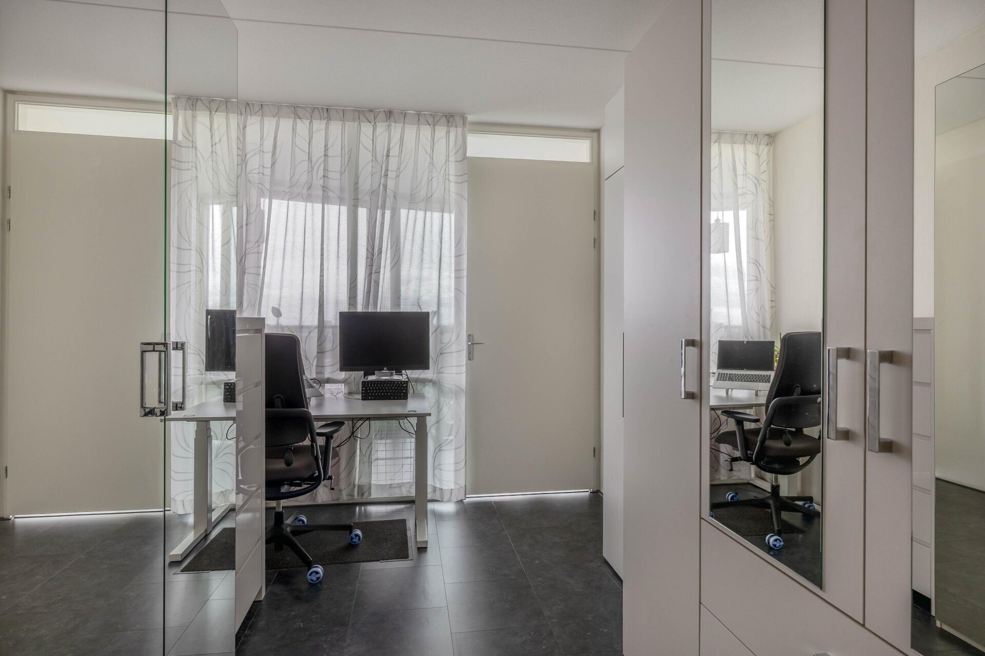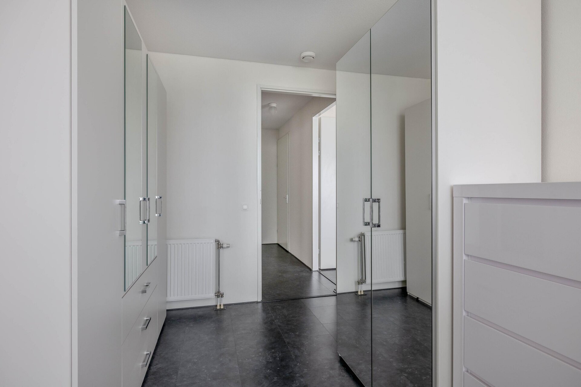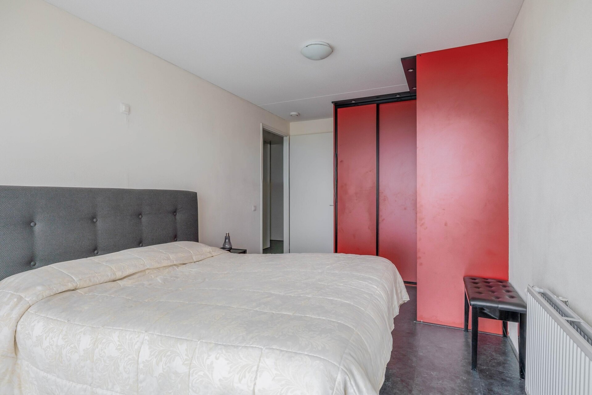 De slaapkamers zijn respectievelijk 16 m² en 10 m² groot. De grootste kamer is voorzien van praktische inbouwkasten.