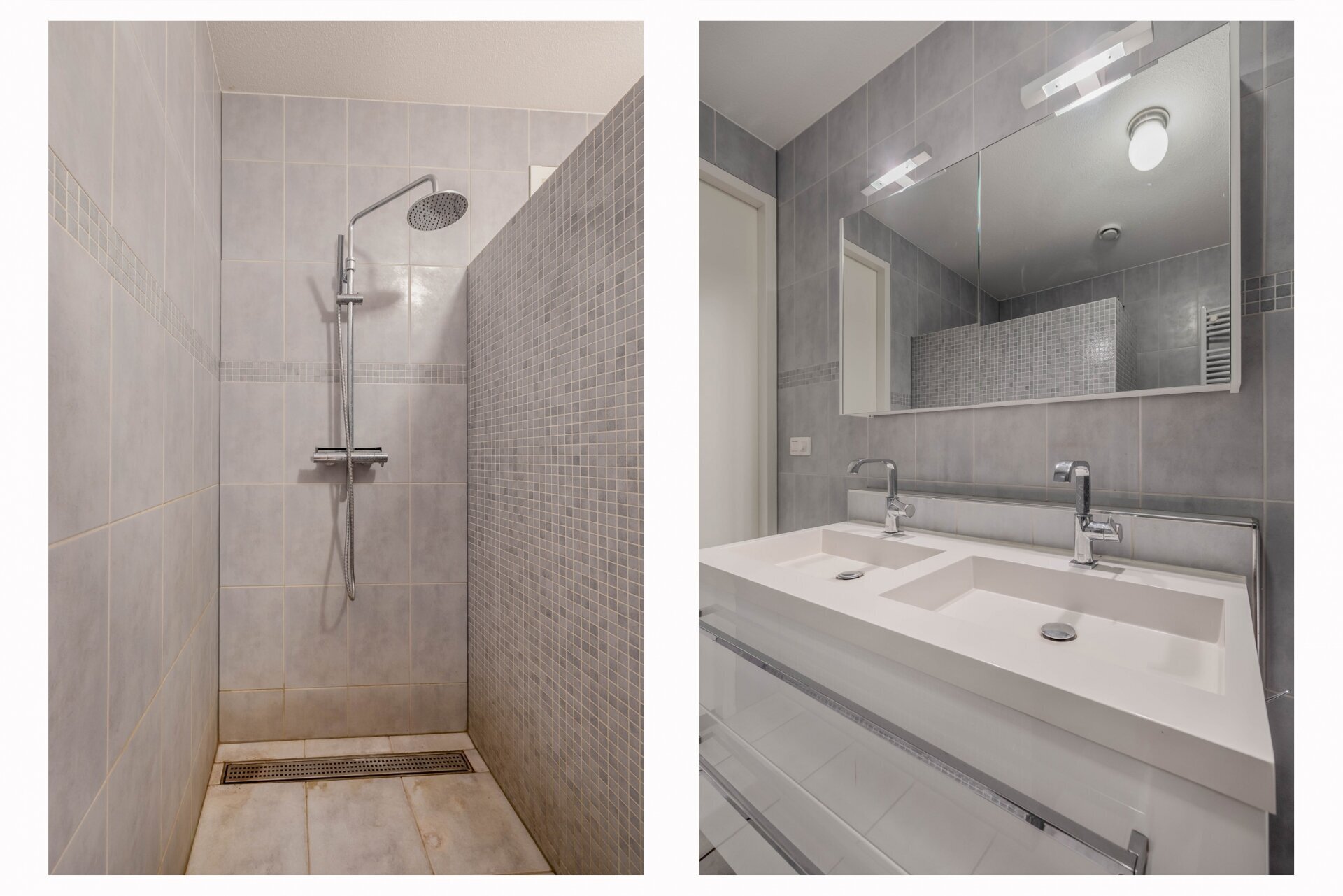 De ruime badkamer beschikt over een inloopdouche met hand- én regendouche, een ligbad, een dubbele wastafel met meubel en een designradiator. In de technische ruimte vind je de aansluitingen voor wasmachine en droger, evenals de opstelplaats van de cv-ketel en de WTW-installatie. Het aparte toilet is uitgerust met een hangend closet, fonteintje en toiletmeubel.