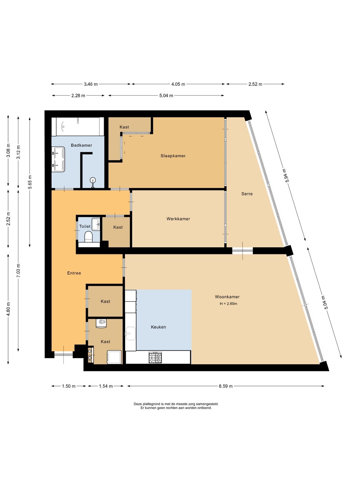 “Deze informatie is door ons met de nodige zorgvuldigheid samengesteld. Onzerzijds wordt echter geen enkele aansprakelijkheid aanvaard voor enige onvolledigheid, onjuistheid of anderszins, dan wel de gevolgen daarvan. Alle opgegeven maten en oppervlakten zijn indicatief.”