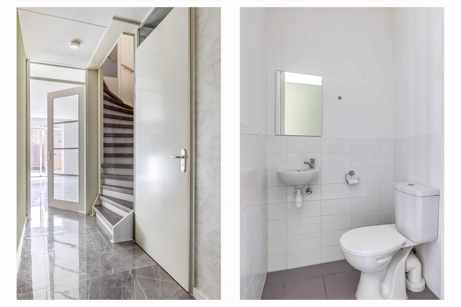 Op de eerste verdieping bevinden zich drie goed bemeten slaapkamers. De grootste kamer biedt volop ruimte voor een tweepersoonsbed en een kledingkast. De andere kamers zijn ideaal als kinder-, werk- of logeerkamer.