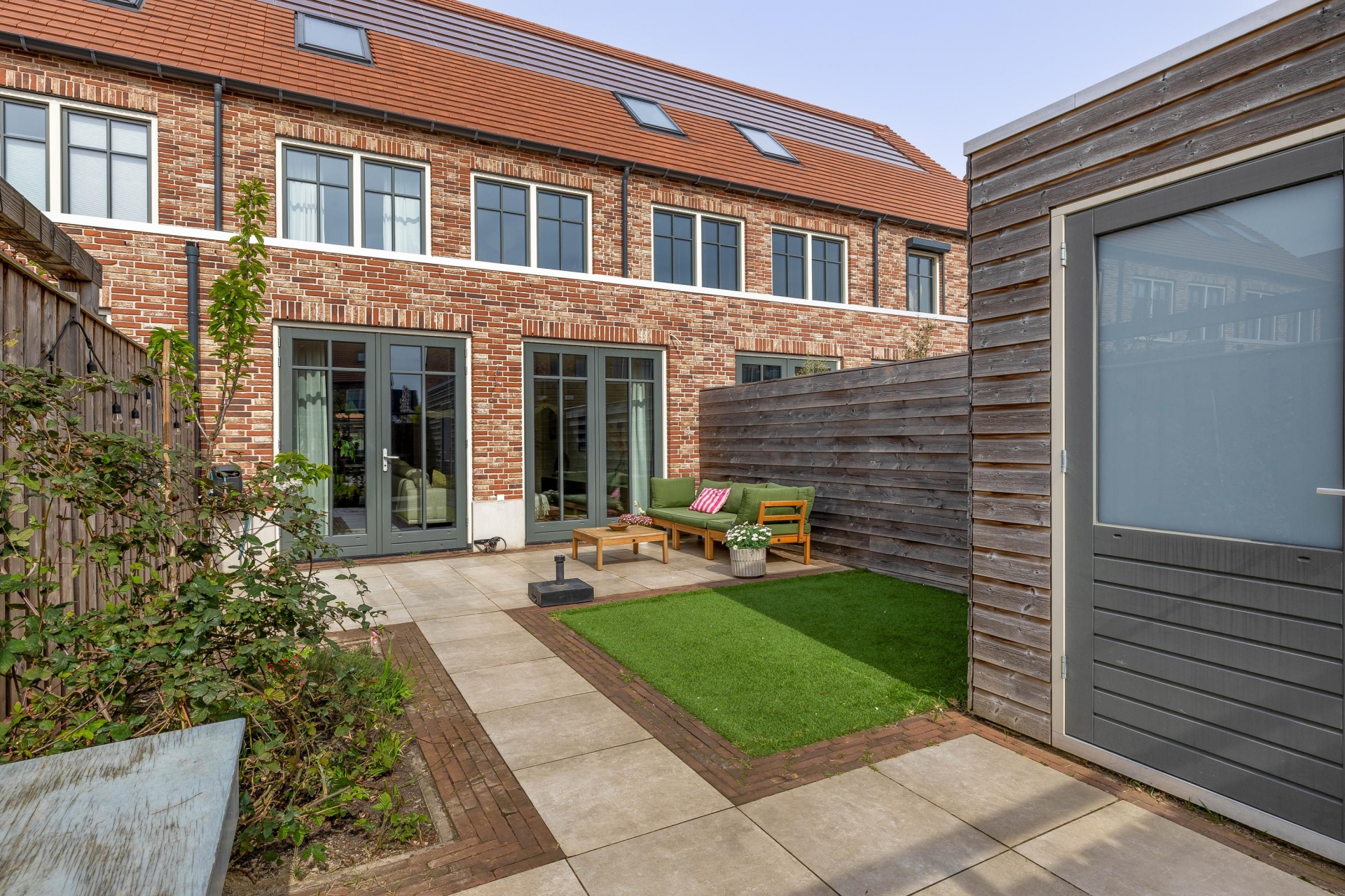 De diepe achtertuin is fraai aangelegd met beplanting, terras, kunstgras en een berging. Door de ligging op het zuidoosten geniet je heerlijk op het terras van de ochtend- en middagzon. Er is voldoende ruimte voor een loungehoek, een eettafel en speelruimte voor kinderen. Achter het huis ligt een mandelig parkeerterrein met een eigen parkeerplaats. Dat betekent dus altijd een parkeerplek, direct achter het huis!