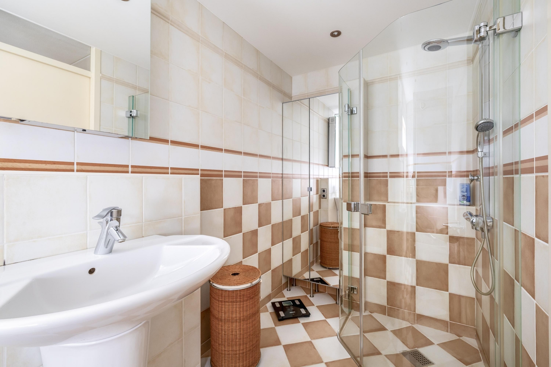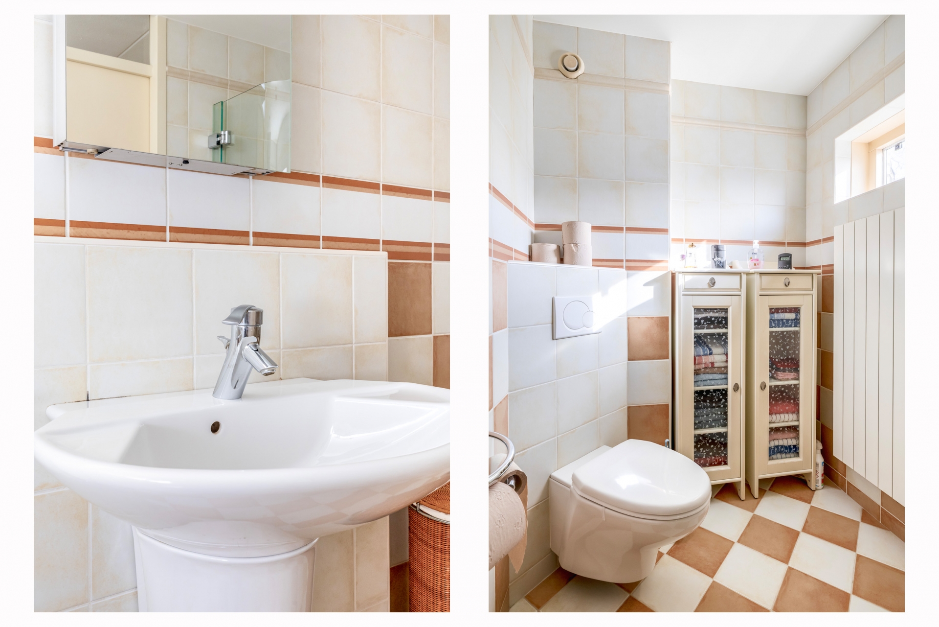 Op de 1e verdieping treft men een ruime slaapkamer aan de voorzijde van de woning. Aan de achterzijde is een riante slaapkamer gecreëerd. De bestond voor heen uit 2 slaapkamers, welke eenvoudig in de oorspronkelijk staat zijn terug te brengen. De badkamer is voorzien van neen doucheruimte, een 2e toilet en een wastafel.