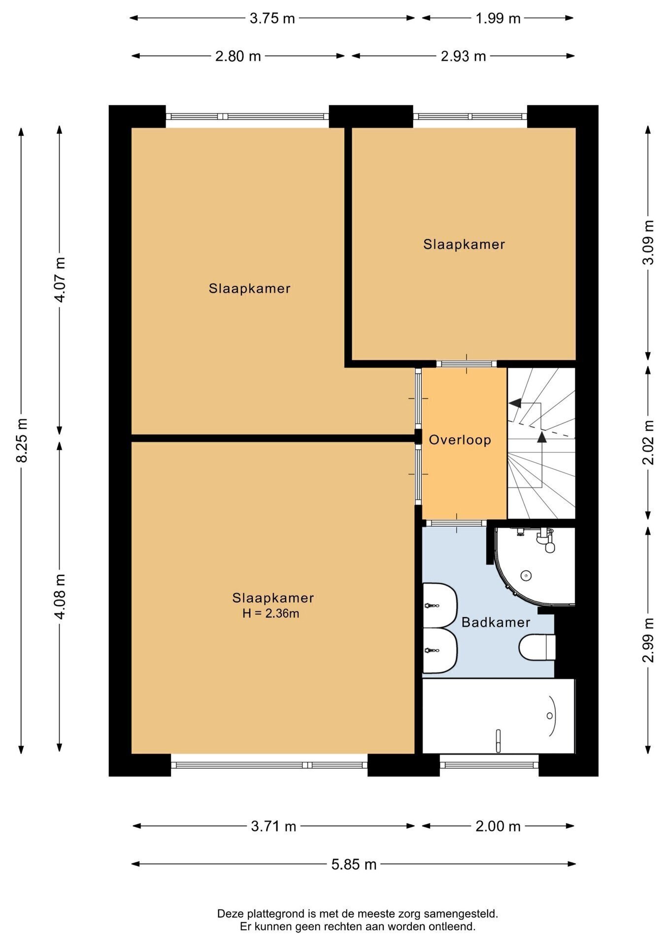 Op de 2e verdieping zijn er nog 3 slaapkamers gesitueerd met dakkapel en vaste kastruimte. Hier is ook de cv-ketel geplaatst en is ruimte voor wassen en drogen. Met een paar kleine aanpassingen kunnen hier zelfs nog extra kamers worden gecreëerd, mocht dat gewenst zijn.