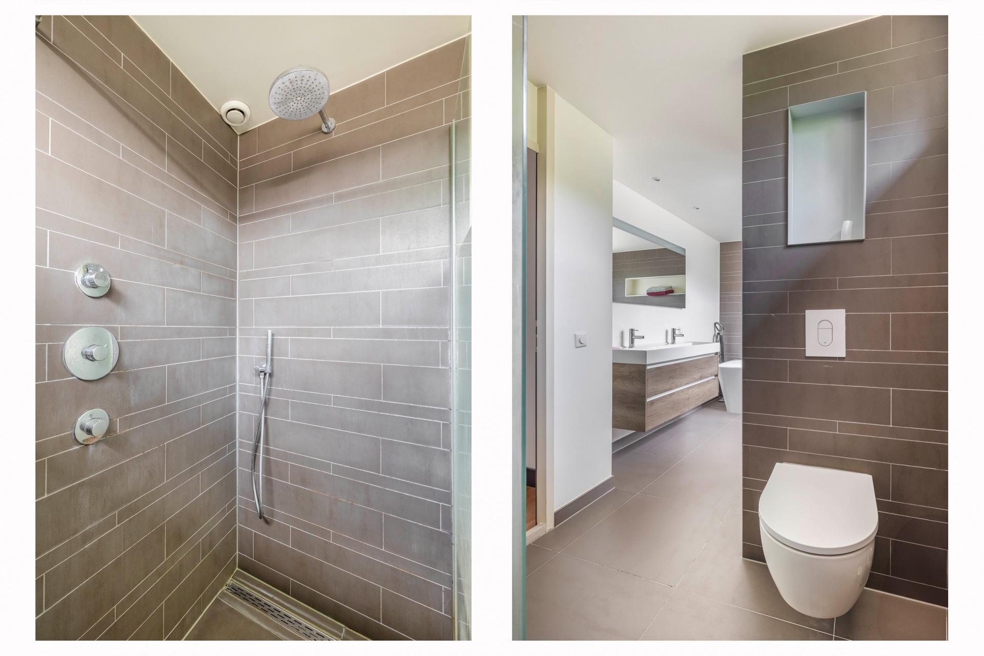 Moderne badkamer met design ligbad, ruime inloopdouche en tweede toilet