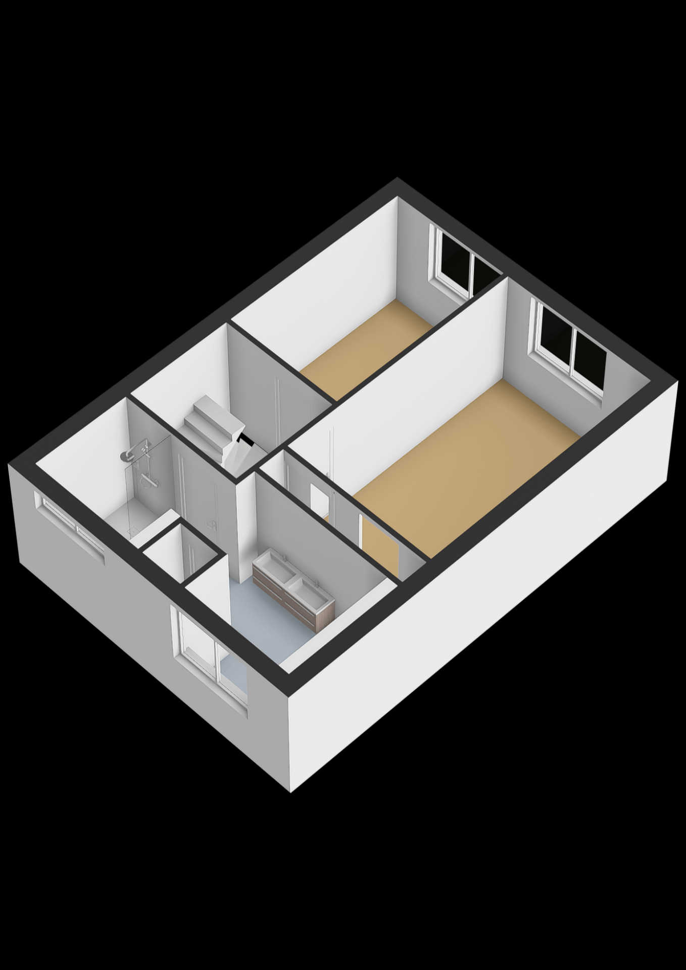 Nog twee slaapkamers aan de achterzijde, ideaal als kinderkamer, werkruimte of logeerkamer. Aan de voorzijde bevindt zich een praktische wasruimte.