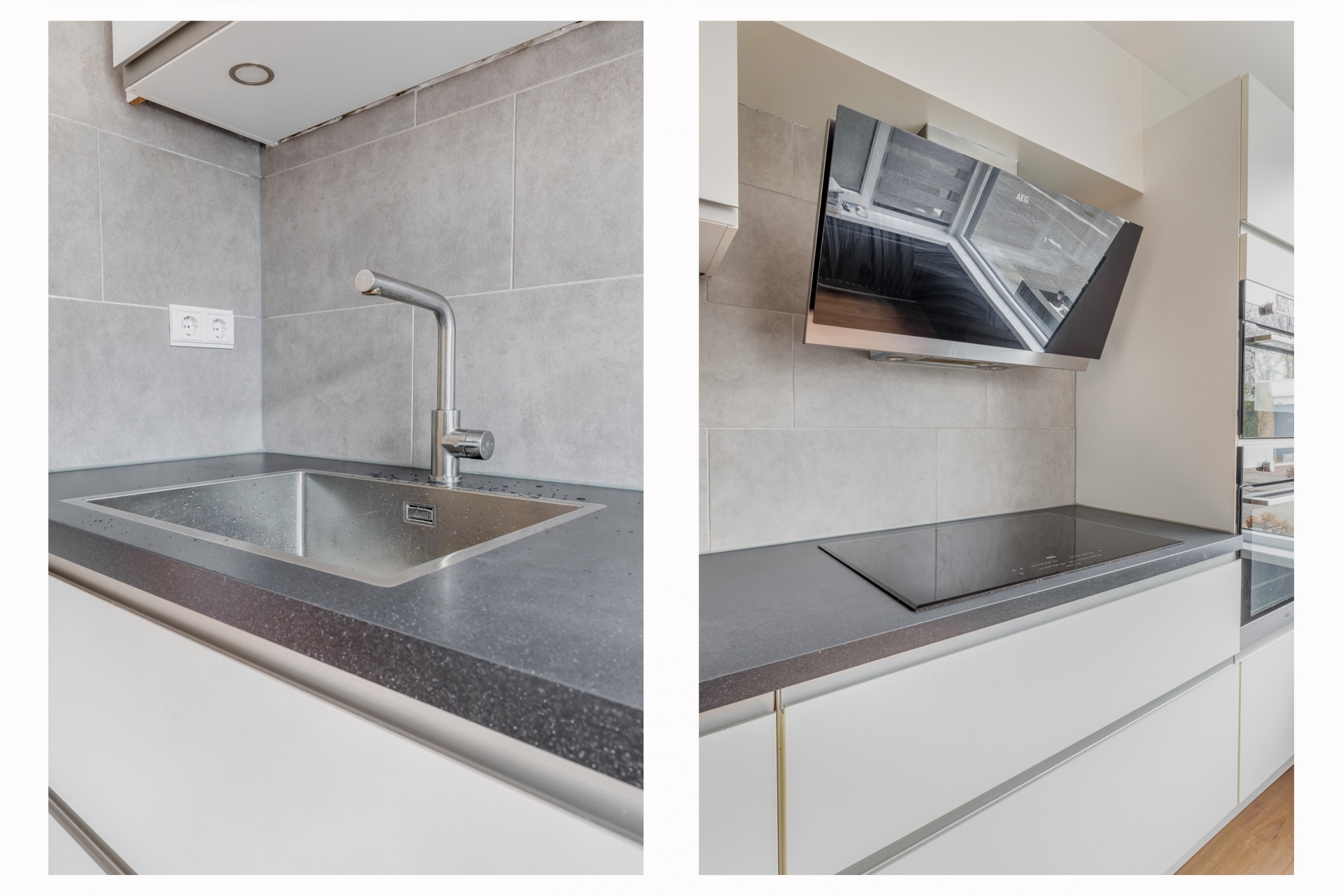 3 fase aansluitingen voor de zonnepanelen en het laadpunt) en modern toilet. De luxe open keuken aan de voorzijde is voorzien van diverse inbouwapparatuur. De lichte woonkamer aan de achterzijde biedt via de schuifpui toegang tot de zonnige tuin. Achterin de tuin bevindt zich de ruime garage met zonnepanelen en oplaadpunt.