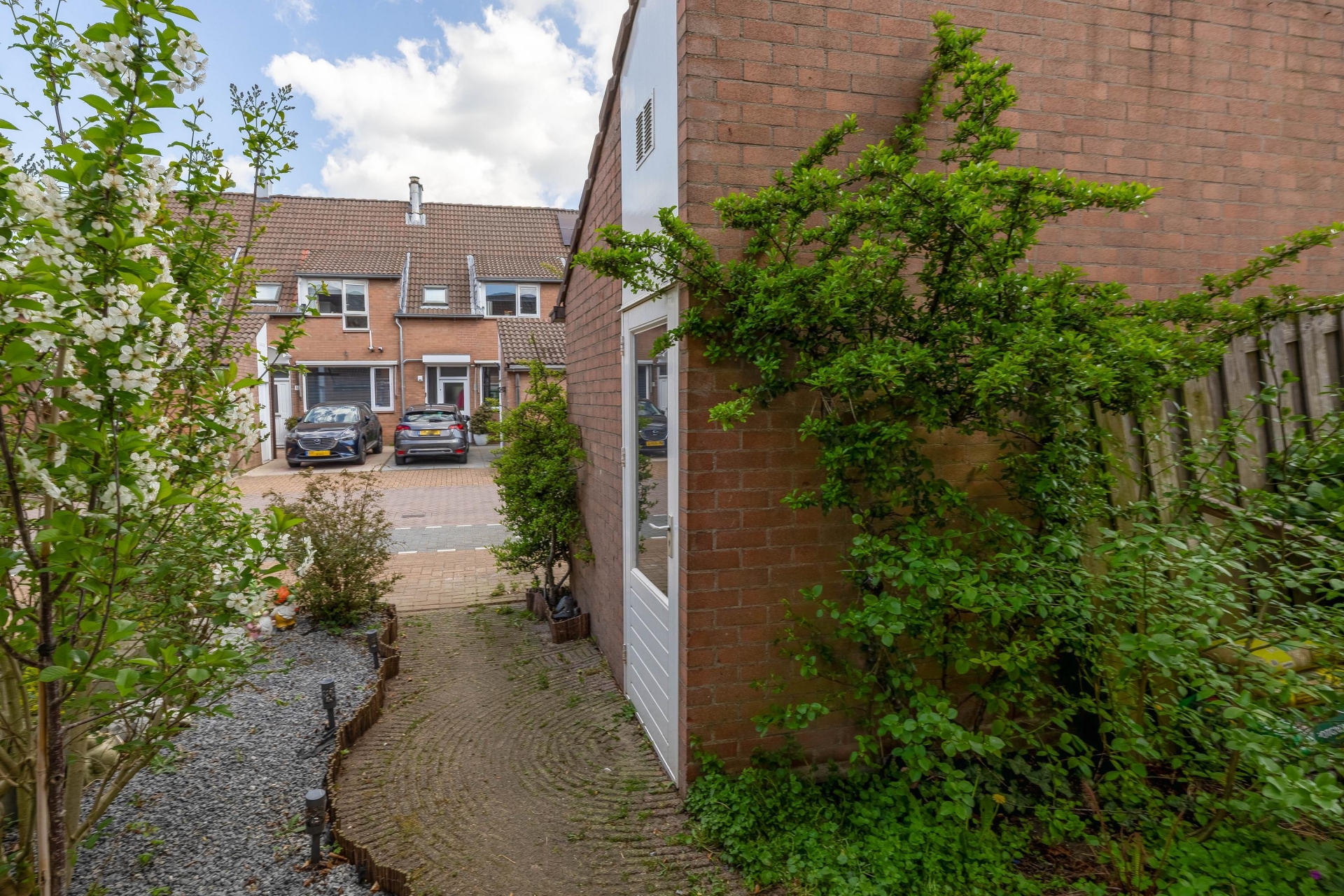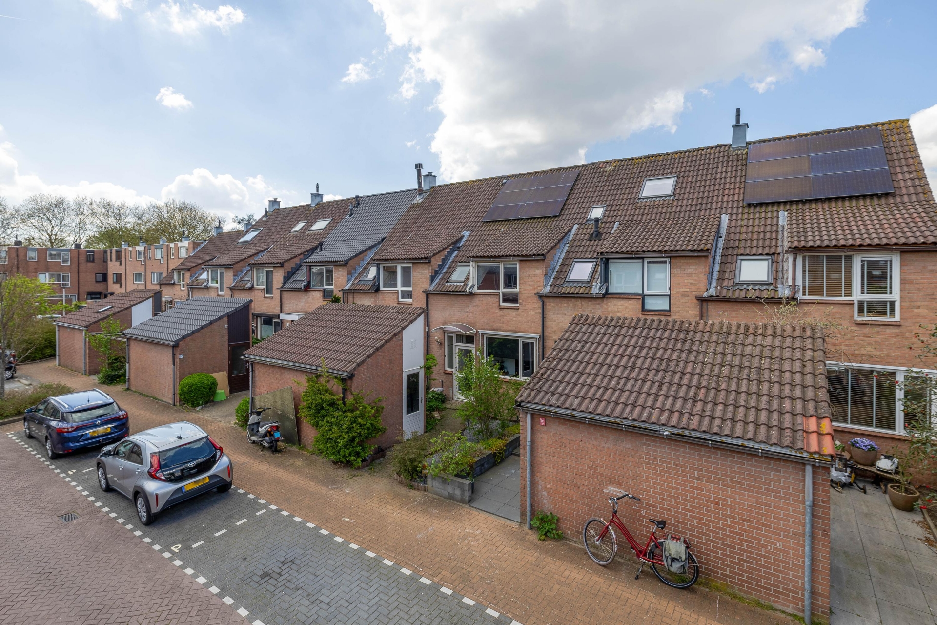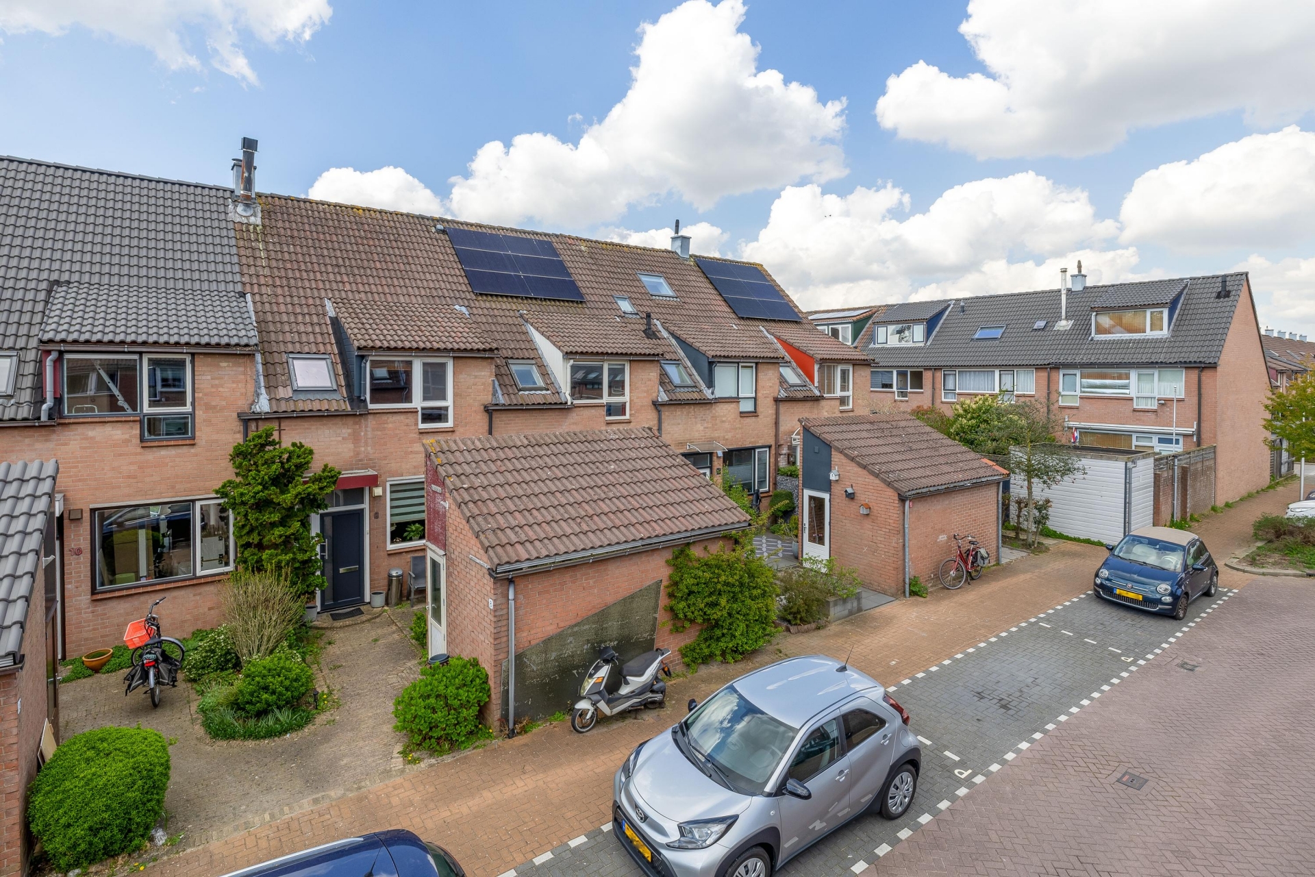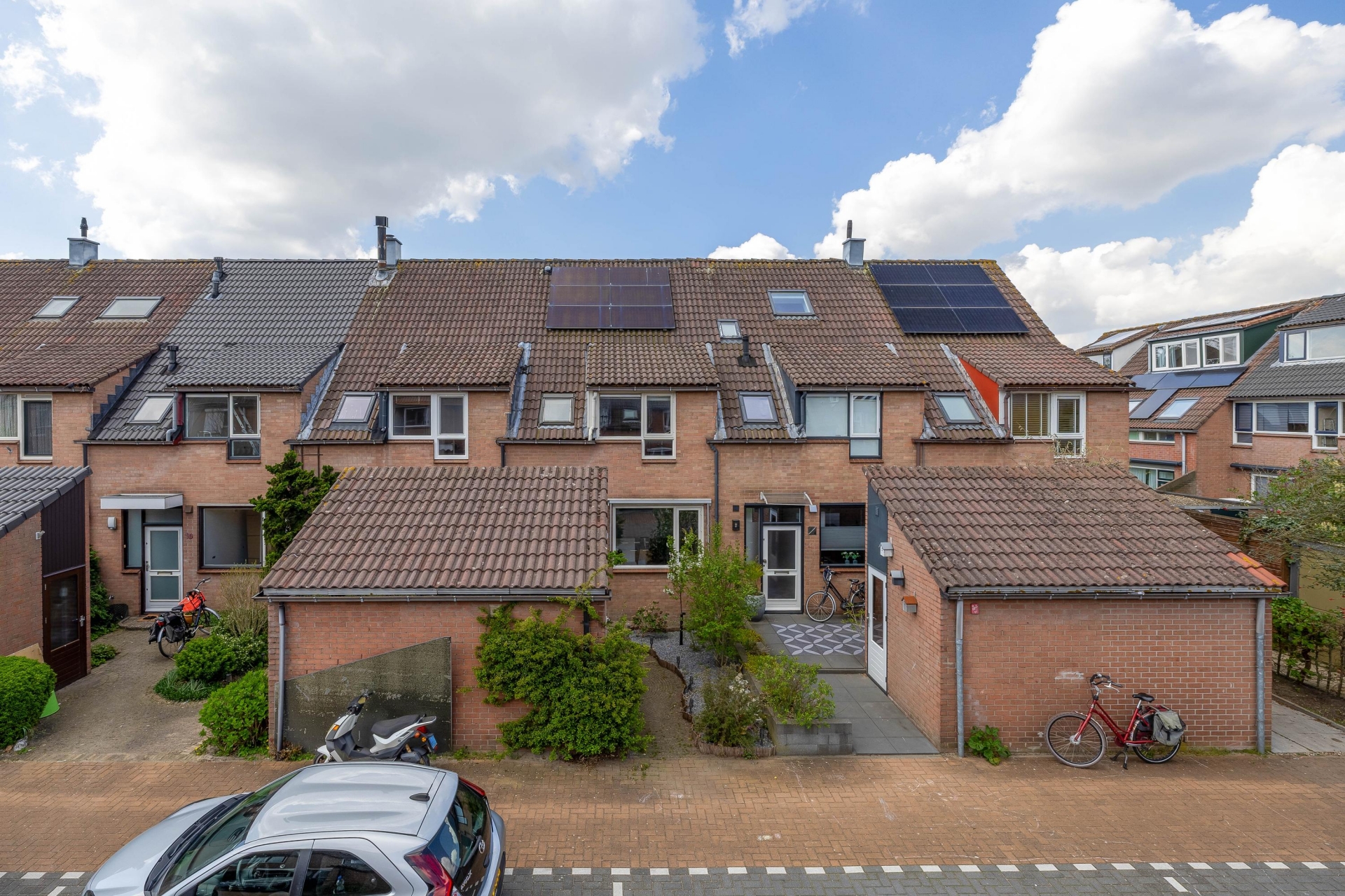 De voortuin en de rustige straat geven direct een verzorgde en vriendelijke eerste indruk, met voldoende parkeergelegenheid in de directe omgeving.