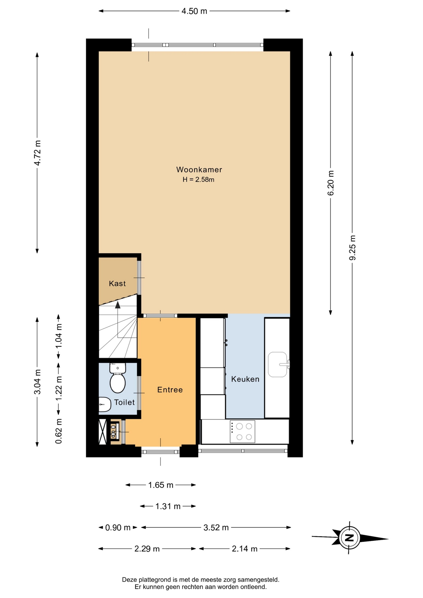 “Deze informatie is door ons met de nodige zorgvuldigheid samengesteld. Onzerzijds wordt echter geen enkele aansprakelijkheid aanvaard voor enige onvolledigheid, onjuistheid of anderszins, dan wel de gevolgen daarvan. Alle opgegeven maten en oppervlakten zijn indicatief.”