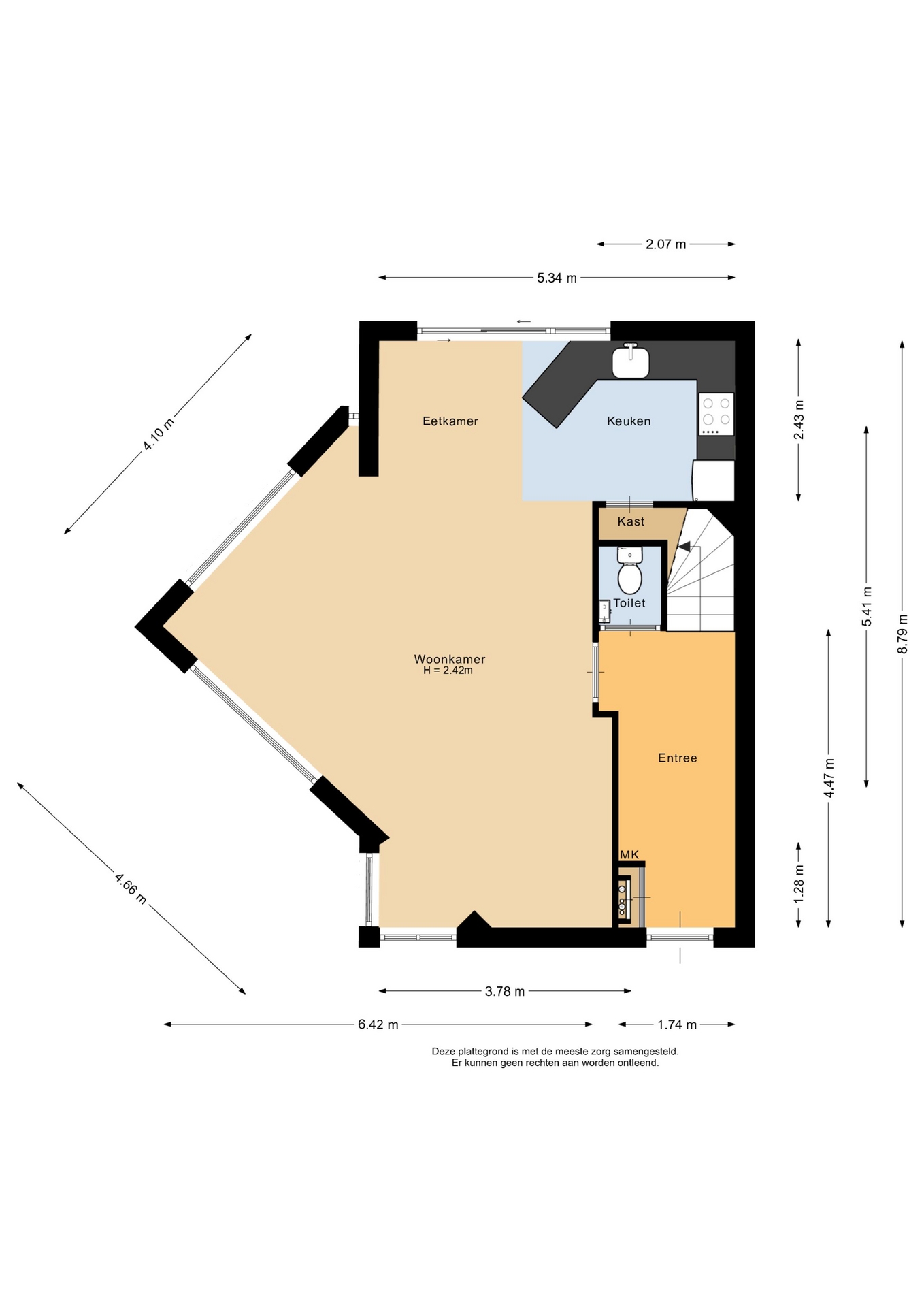 “Deze informatie is door ons met de nodige zorgvuldigheid samengesteld. Onzerzijds wordt echter geen enkele aansprakelijkheid aanvaard voor enige onvolledigheid, onjuistheid of anderszins, dan wel de gevolgen daarvan. Alle opgegeven maten en oppervlakten zijn indicatief.”
