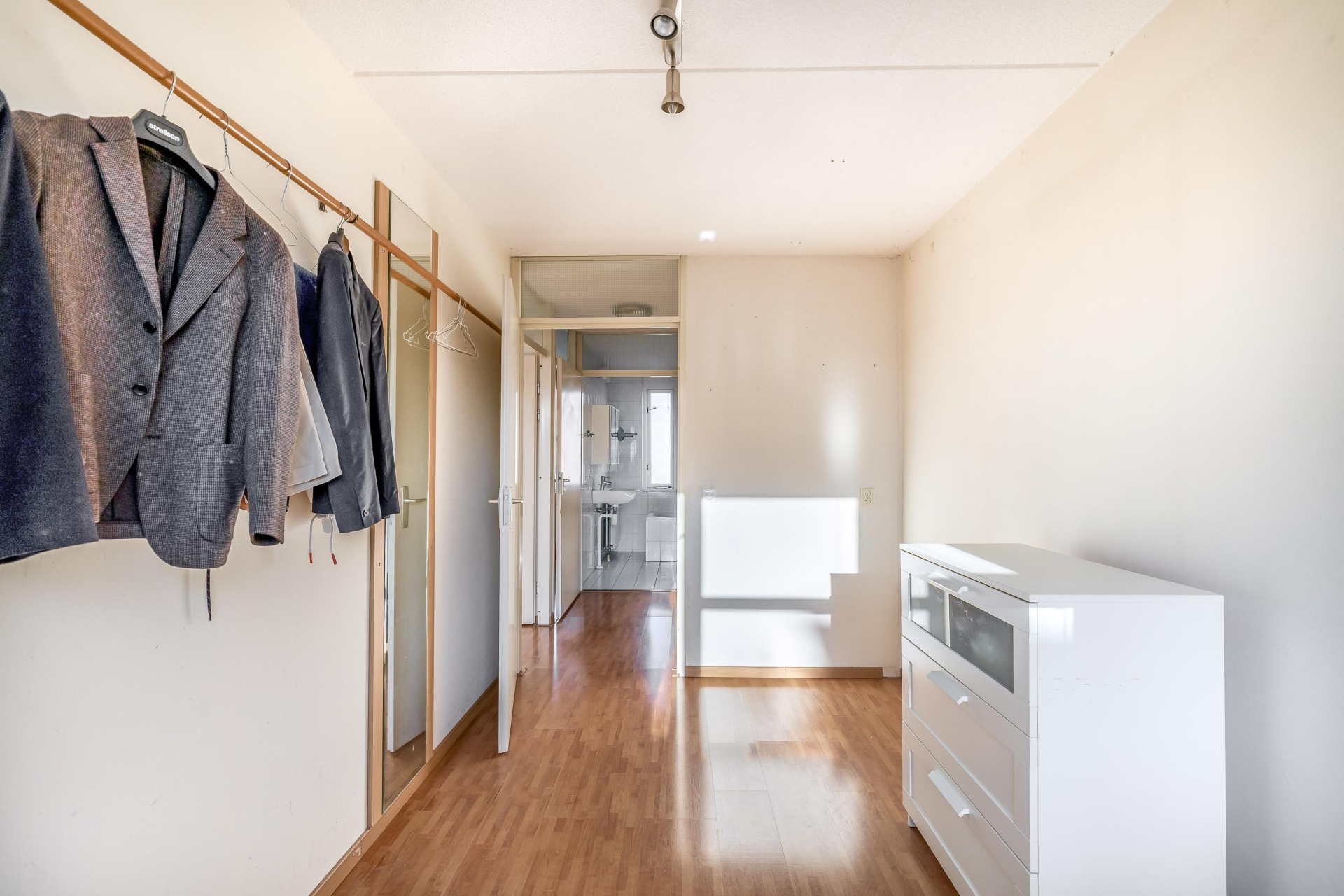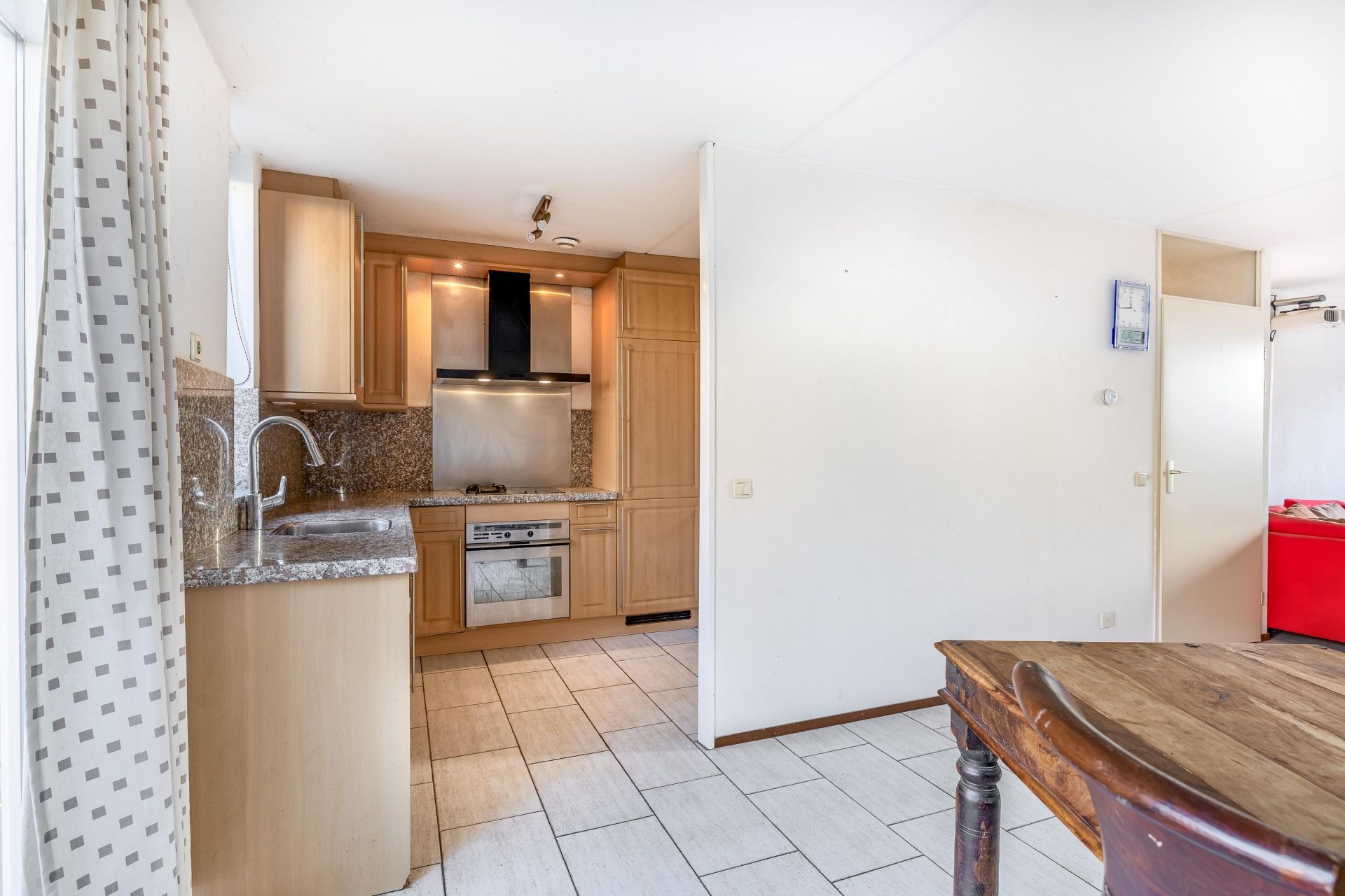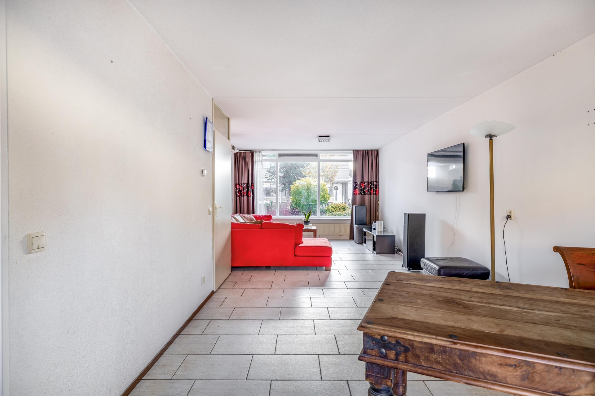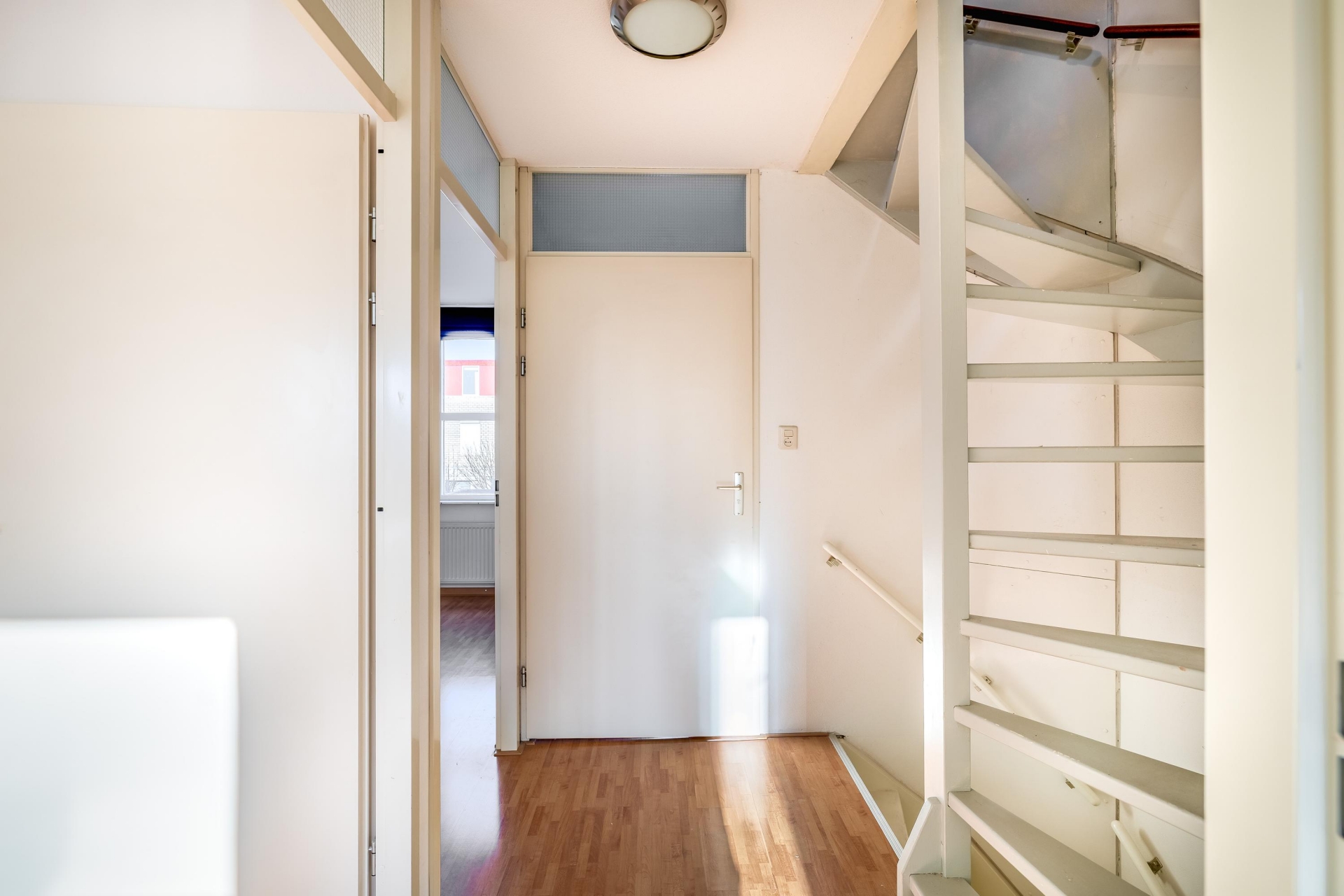 Vanuit de voortuin betreedt u de woning. De entree biedt toegang tot de meterkast, het toilet met fonteintje, de trapopgang en de doorzonkamer. De lichte doorzonkamer biedt volop mogelijkheden om een ruime woonkamer en eetkamer te creëren. De aangrenzende open keuken is uitgerust met diverse inbouwapparatuur, waaronder een vaatwasser, oven, keramische tweepits kookplaat met wokbrander, afzuigschouw en koel-vriescombinatie.