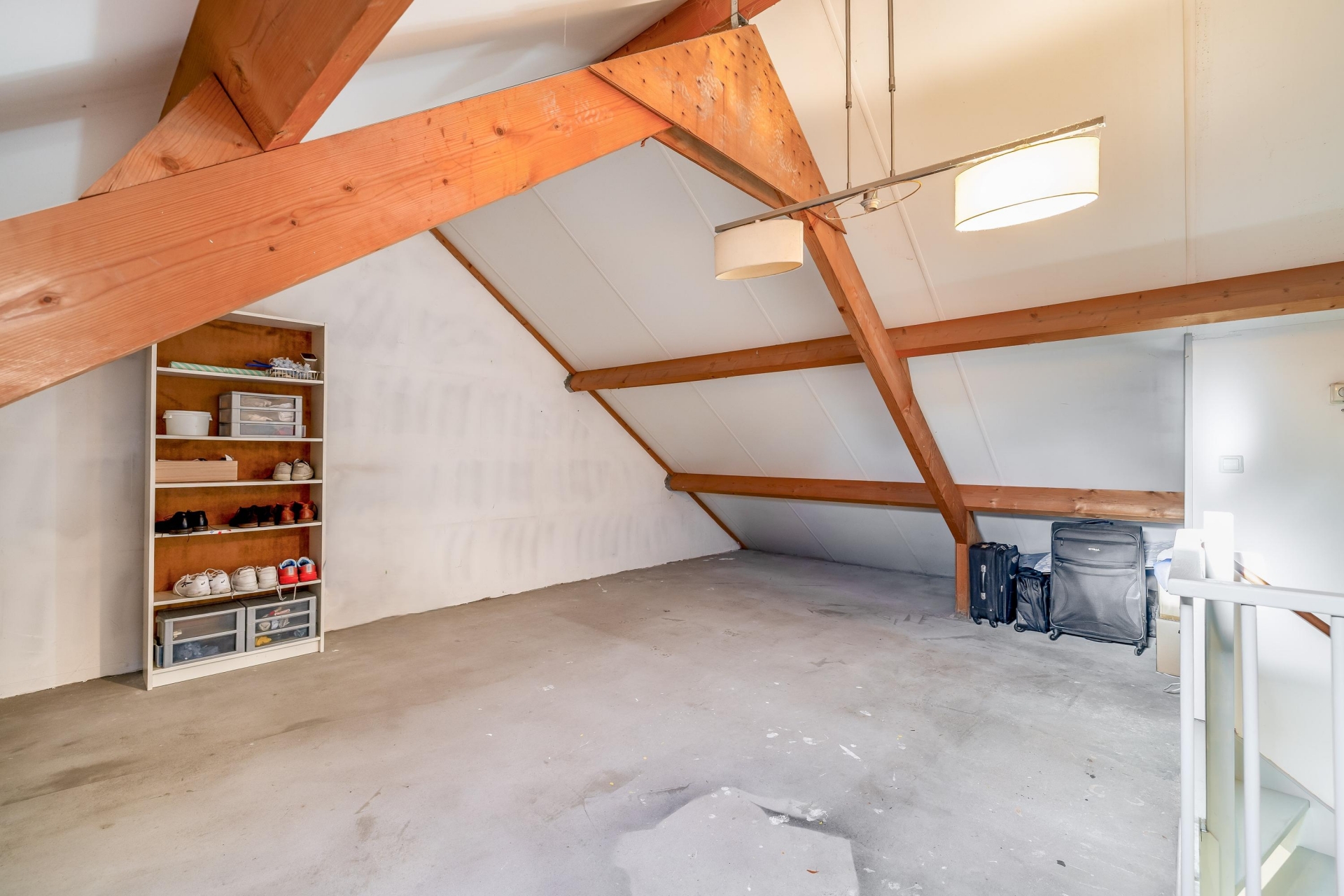 De zolderverdieping biedt volop mogelijkheden voor het opbergen van spullen. Daarnaast is het eenvoudig om hier één of twee slaapkamers te realiseren door het plaatsen van dakkapellen. In deze ruimte bevinden zich tevens de wasmachineaansluiting en de cv-ketel.