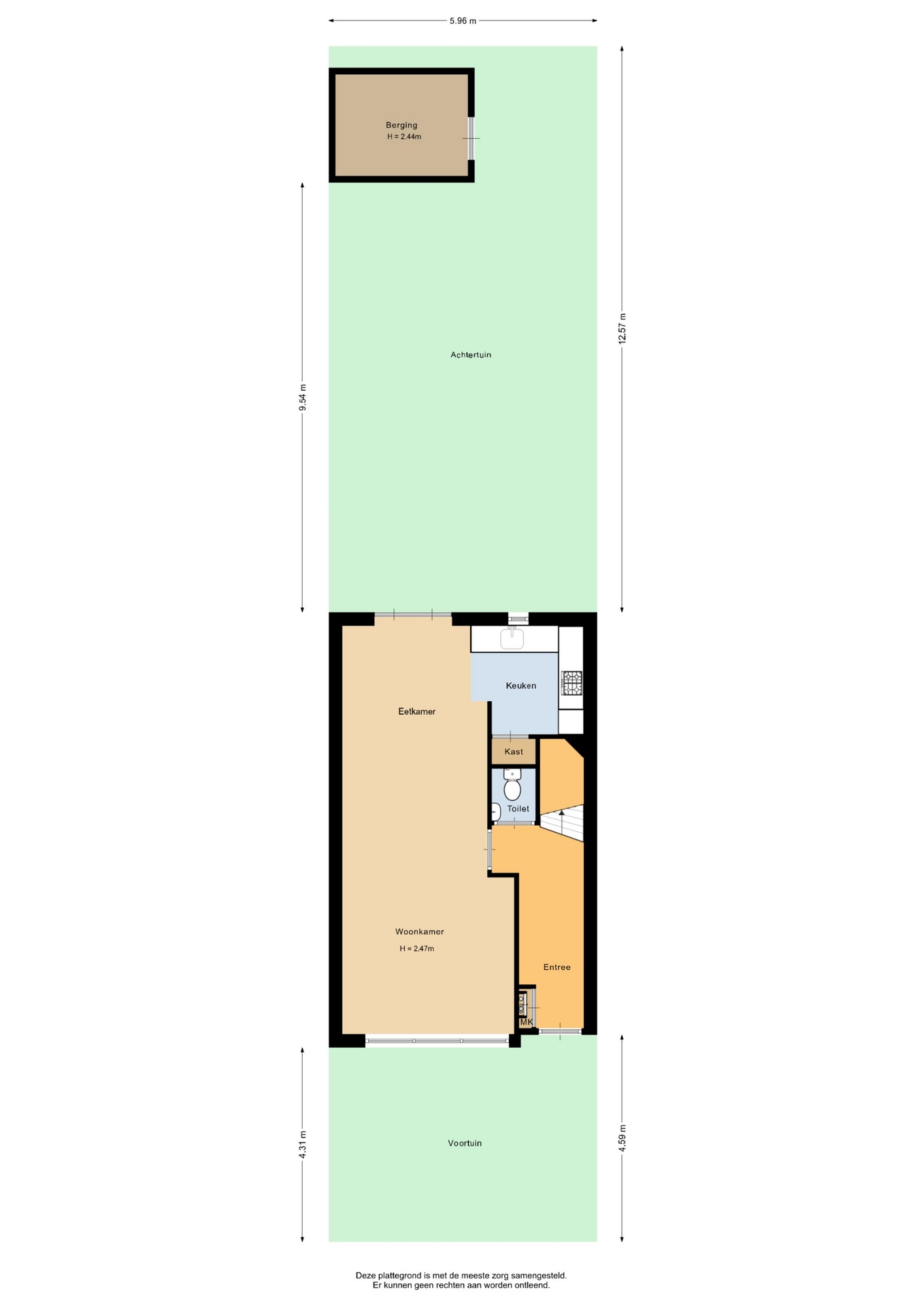 “Deze informatie is door ons met de nodige zorgvuldigheid samengesteld. Onzerzijds wordt echter geen enkele aansprakelijkheid aanvaard voor enige onvolledigheid, onjuistheid of anderszins, dan wel de gevolgen daarvan. Alle opgegeven maten en oppervlakten zijn indicatief.”