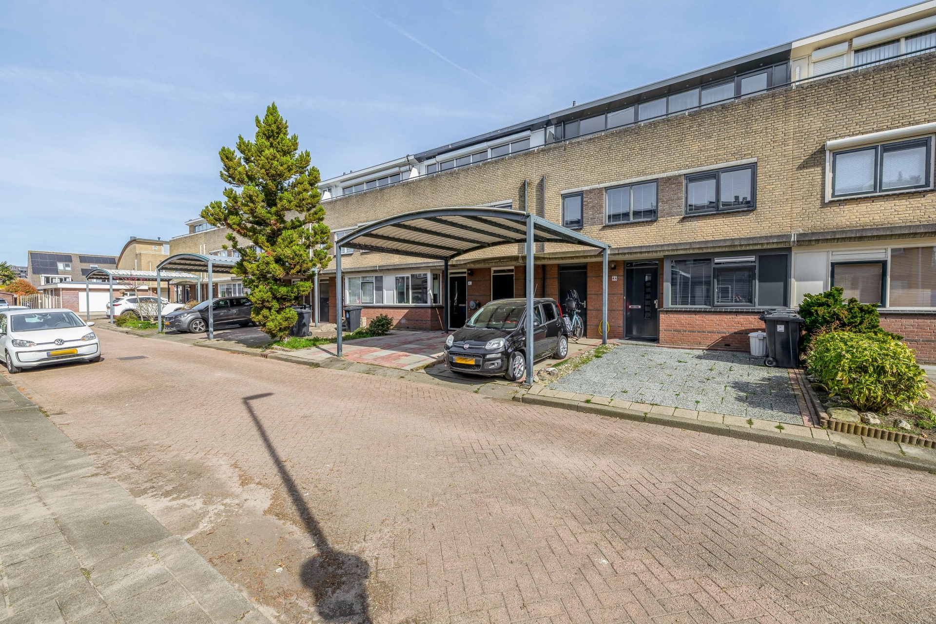 De woning beschikt niet alleen binnen, maar ook buiten over veel ruimte. In de voortuin vind je een carport en parkeergelegenheid op eigen terrein. De royale achtertuin van circa 90 m² ligt op het oosten, grenst aan het water en is ingedeeld met twee terrassen en een gazon — een heerlijke plek om te ontspannen.