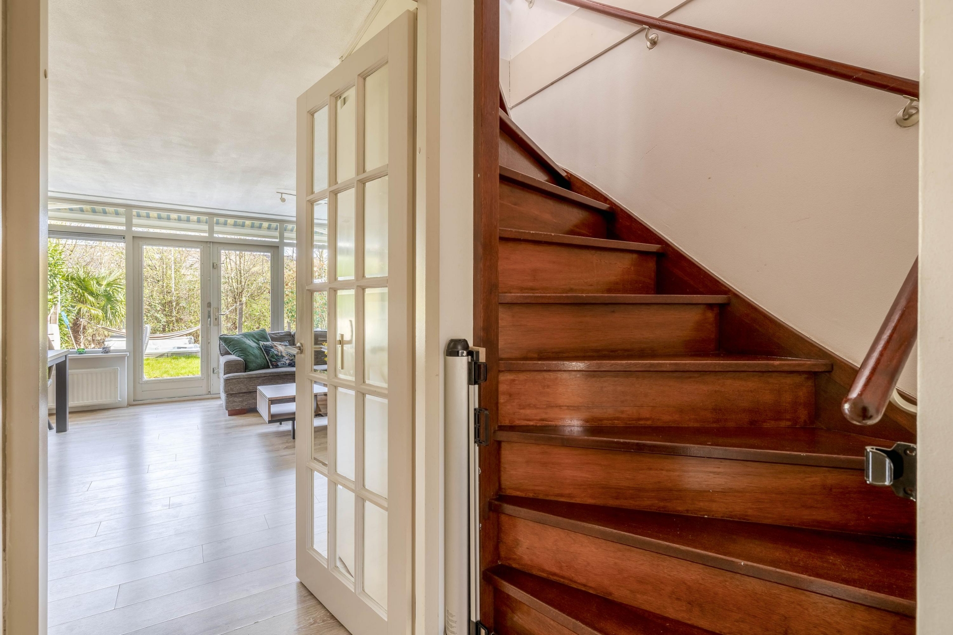 De voorzolder beschikt over een grote bergkast met aansluitingen voor wasapparatuur en de opstelling van de cv-ketel (2022). Via een tussenkamer, ideaal als thuiswerkplek, bereik je de royale vierde slaapkamer met bergruimte, een Velux dakraam en toegang tot het dakterras.