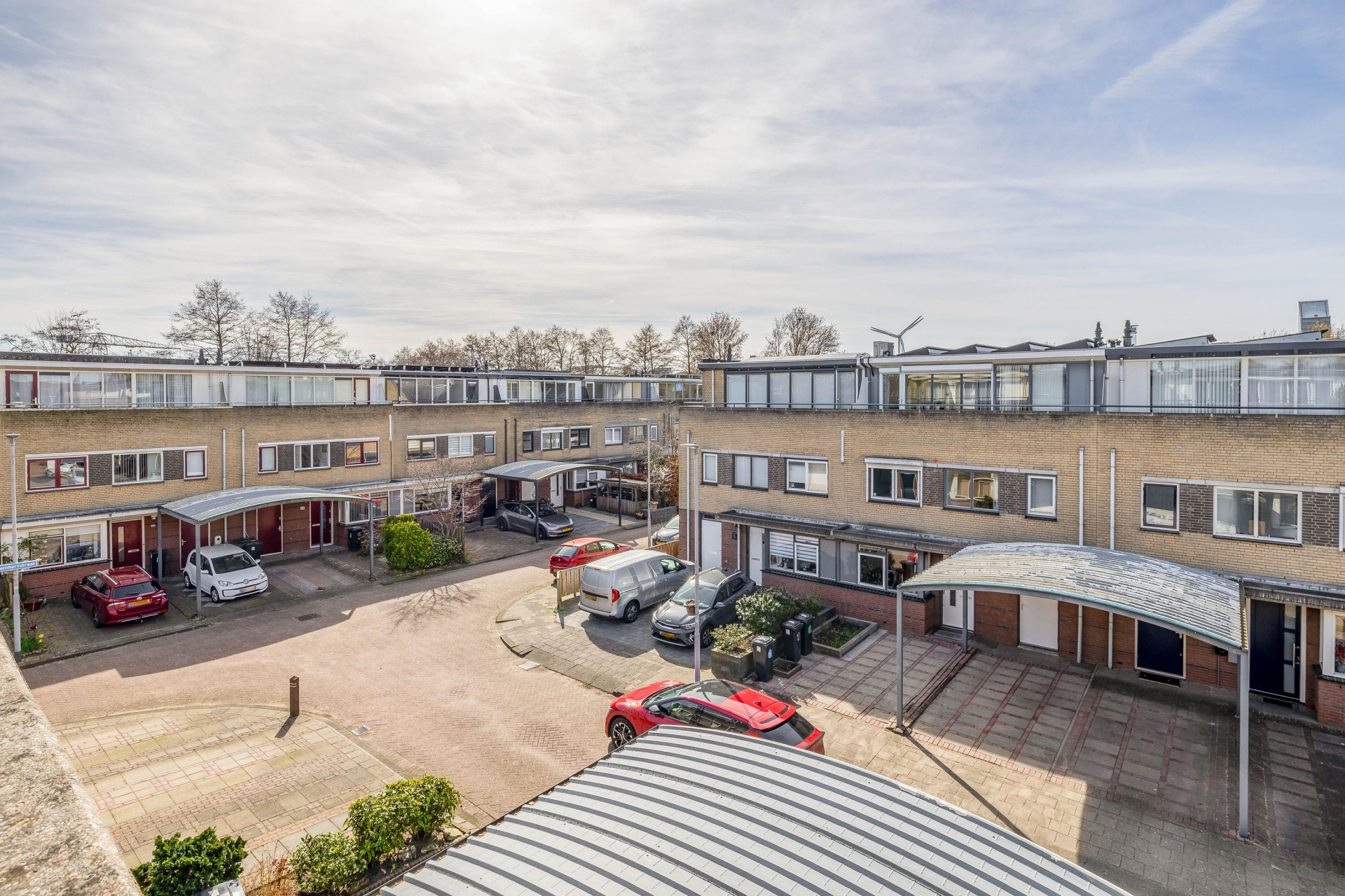 Het dakterras strekt zich uit over de volledige breedte van de woning en biedt volop zon, privacy en een prachtig uitzicht.