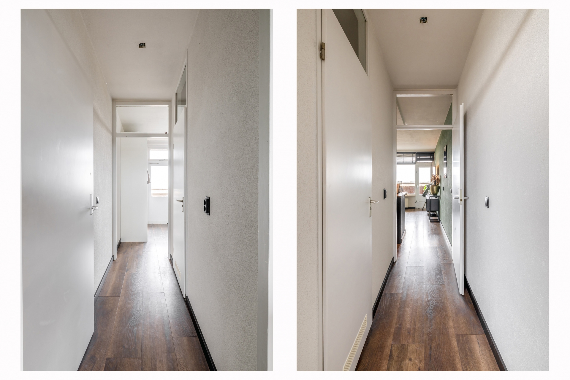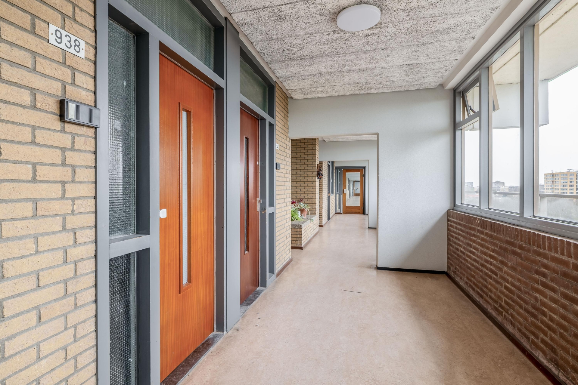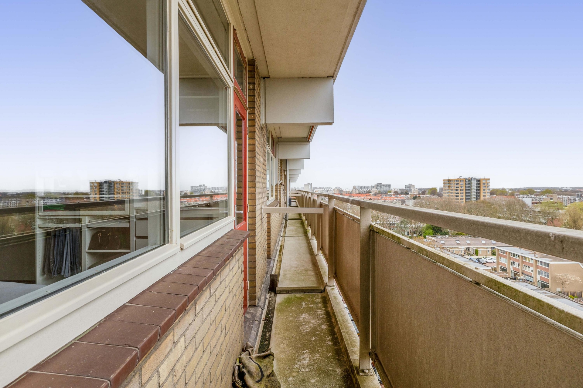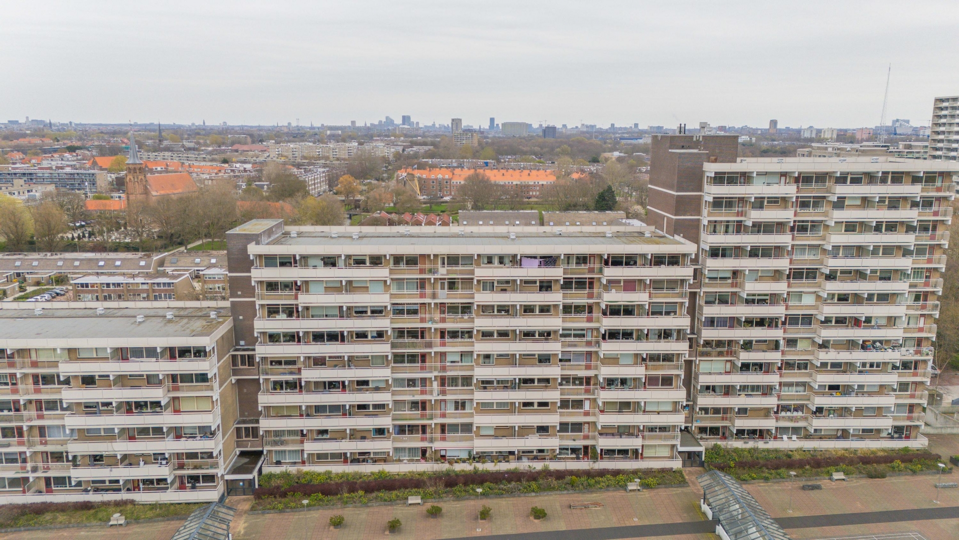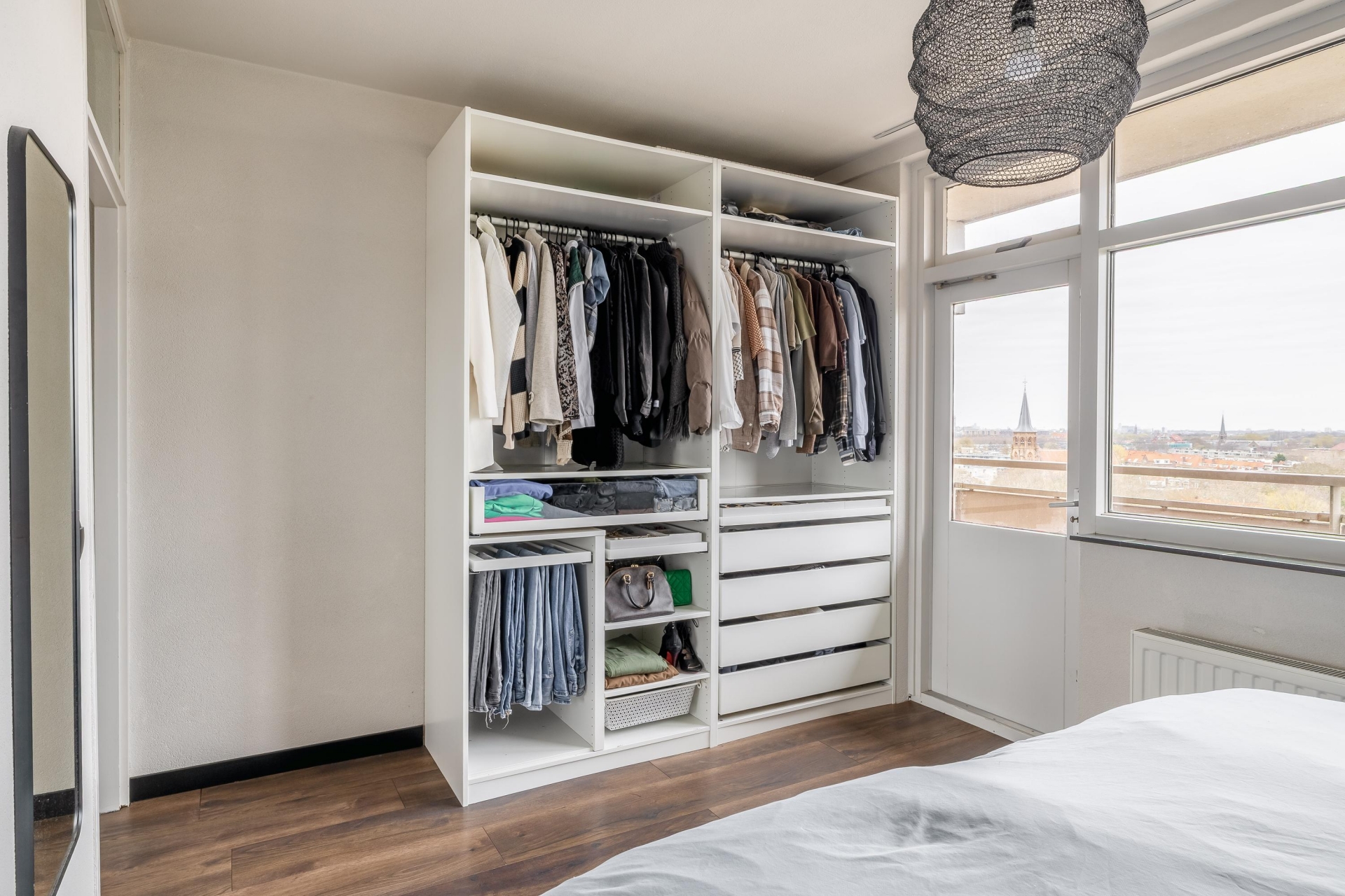 Centrale entree met bellentableau, lift en trap naar de 8e verdieping; via de galerij toegang tot het appartement; interne trap naar de woonverdieping op de 9e etage; ruime en lichte woonkamer met grote raampartijen en open indeling; moderne open keuken voorzien van baropstelling en diverse inbouwapparatuur waaronder een combi-oven; slaapkamer met grote raampartij en voldoende ruimte voor een tweepersoonsbed en kastruimte; moderne badkamer voorzien van inloopdouche, wastafelmeubel en toilet; vanuit de woonkamer toegang tot het ruime balkon op het westen met middag- en avondzon.