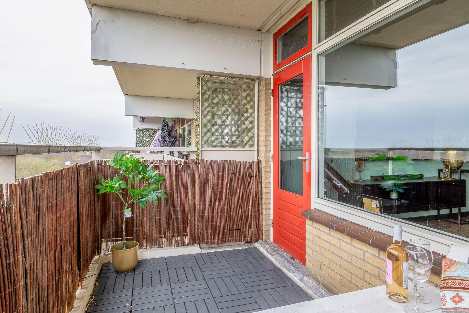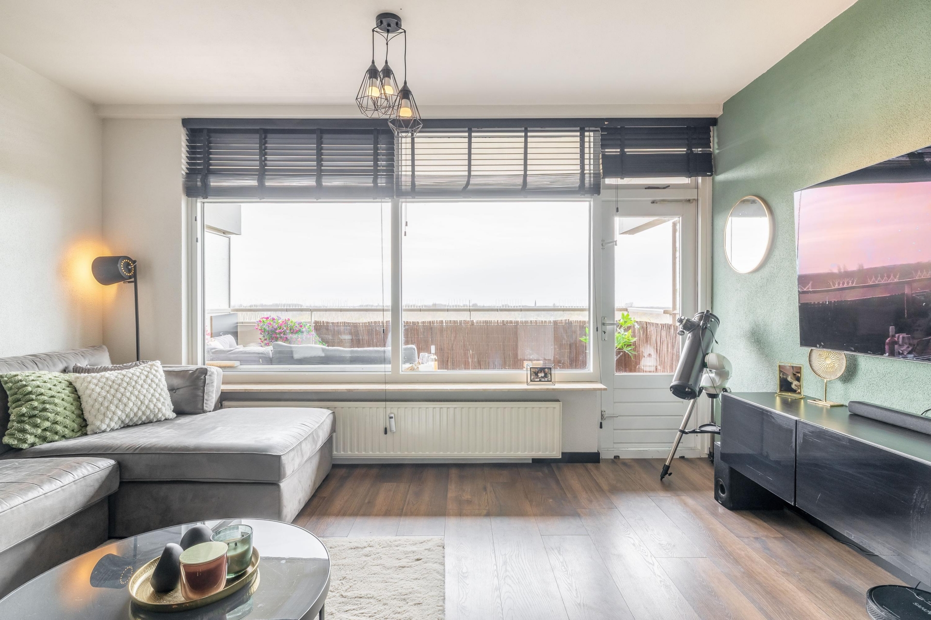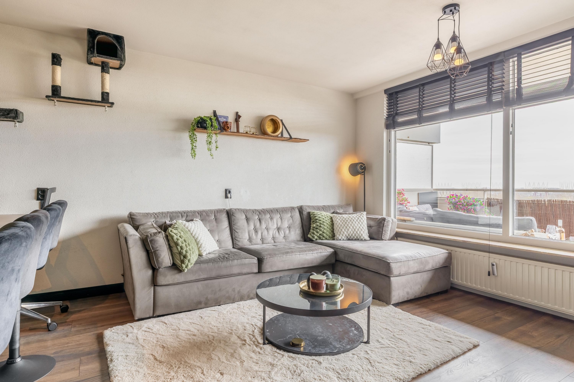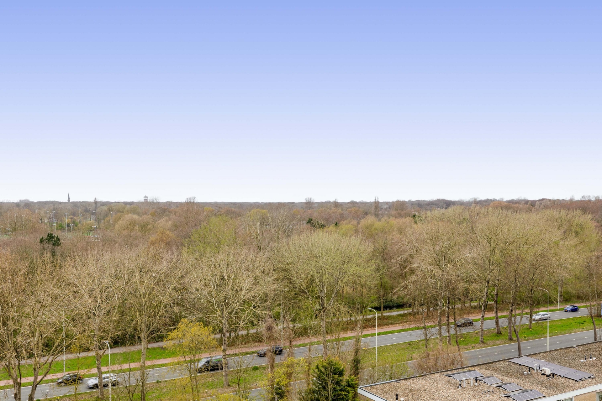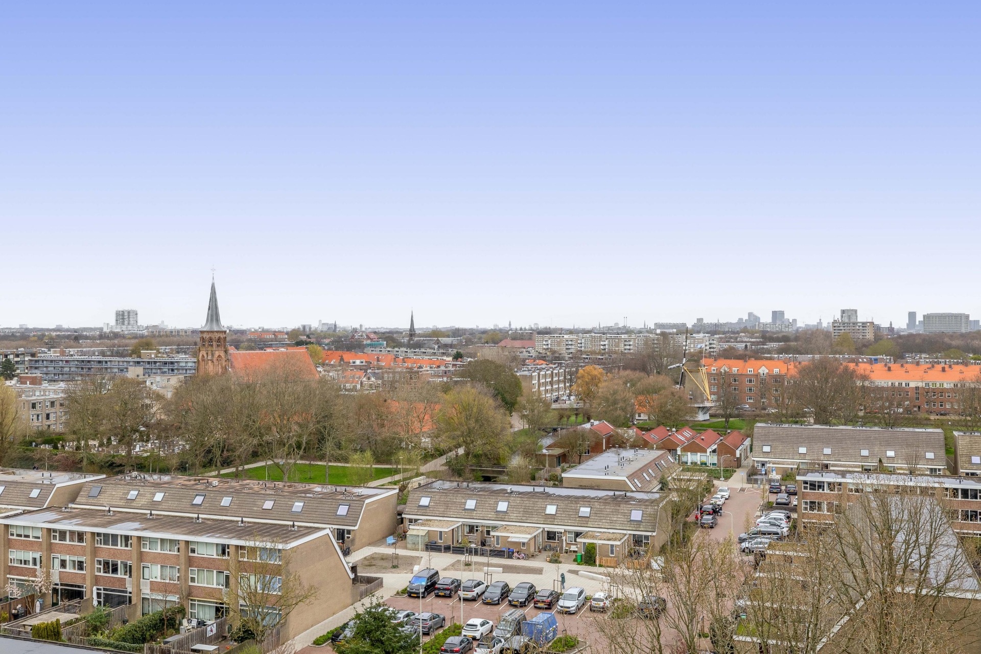 Centrale entree met bellentableau, lift en trap naar de 8e verdieping; via de galerij toegang tot het appartement; interne trap naar de woonverdieping op de 9e etage; ruime en lichte woonkamer met grote raampartijen en open indeling; moderne open keuken voorzien van baropstelling en diverse inbouwapparatuur waaronder een combi-oven; slaapkamer met grote raampartij en voldoende ruimte voor een tweepersoonsbed en kastruimte; moderne badkamer voorzien van inloopdouche, wastafelmeubel en toilet; vanuit de woonkamer toegang tot het ruime balkon op het westen met middag- en avondzon.