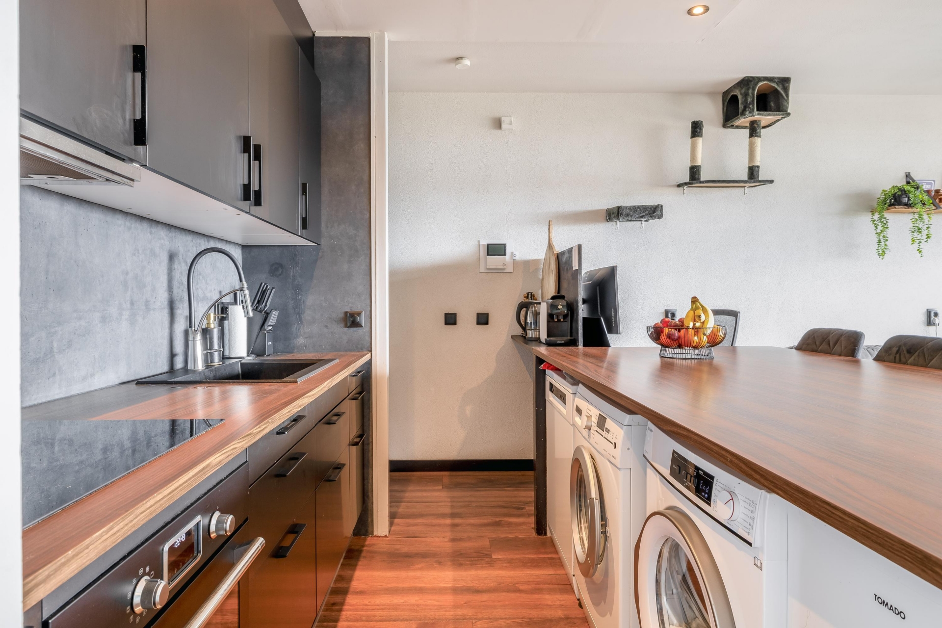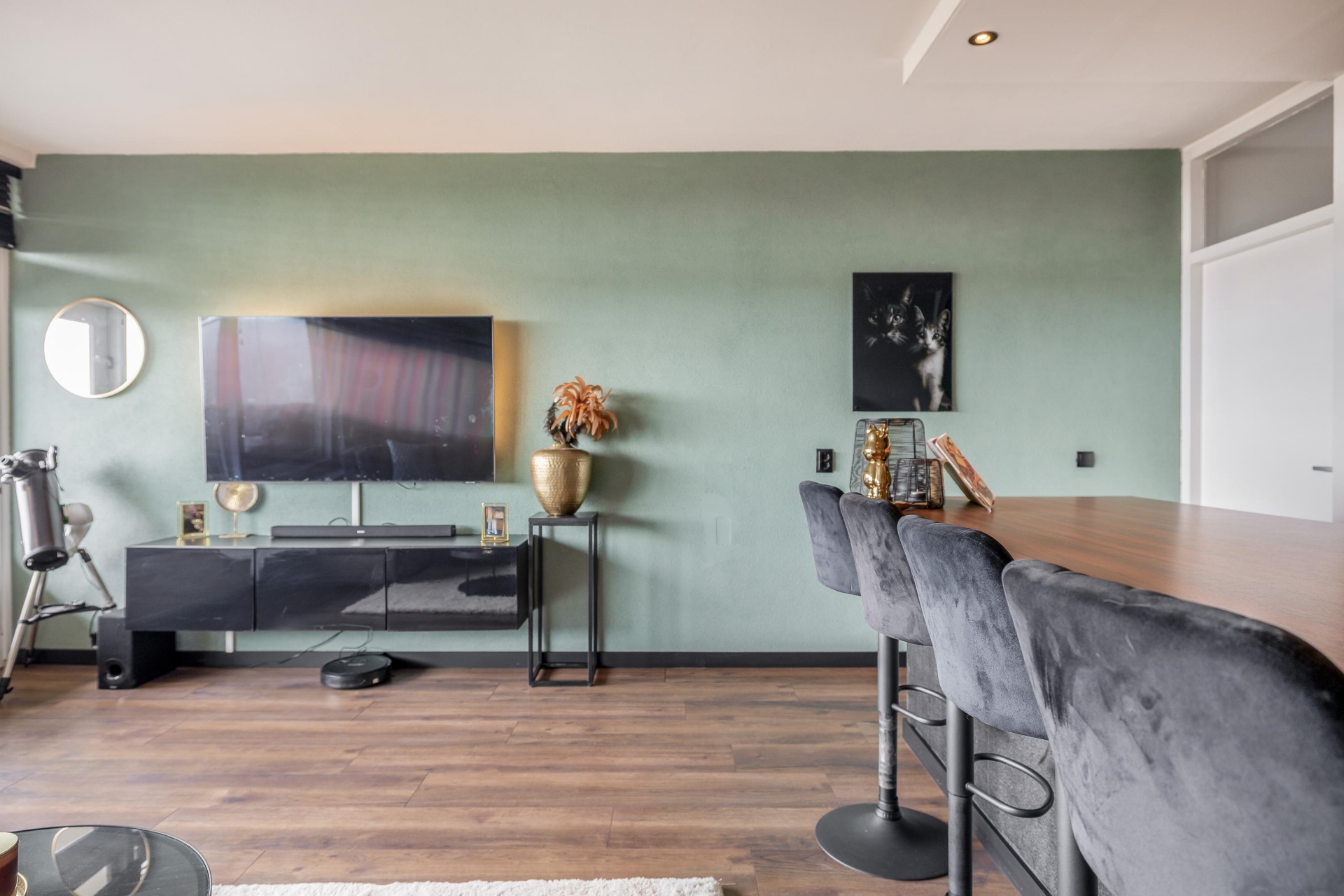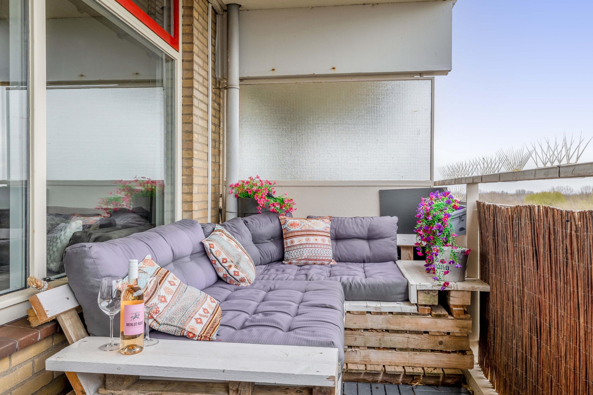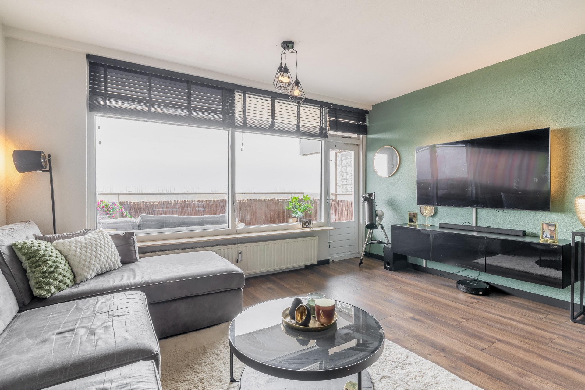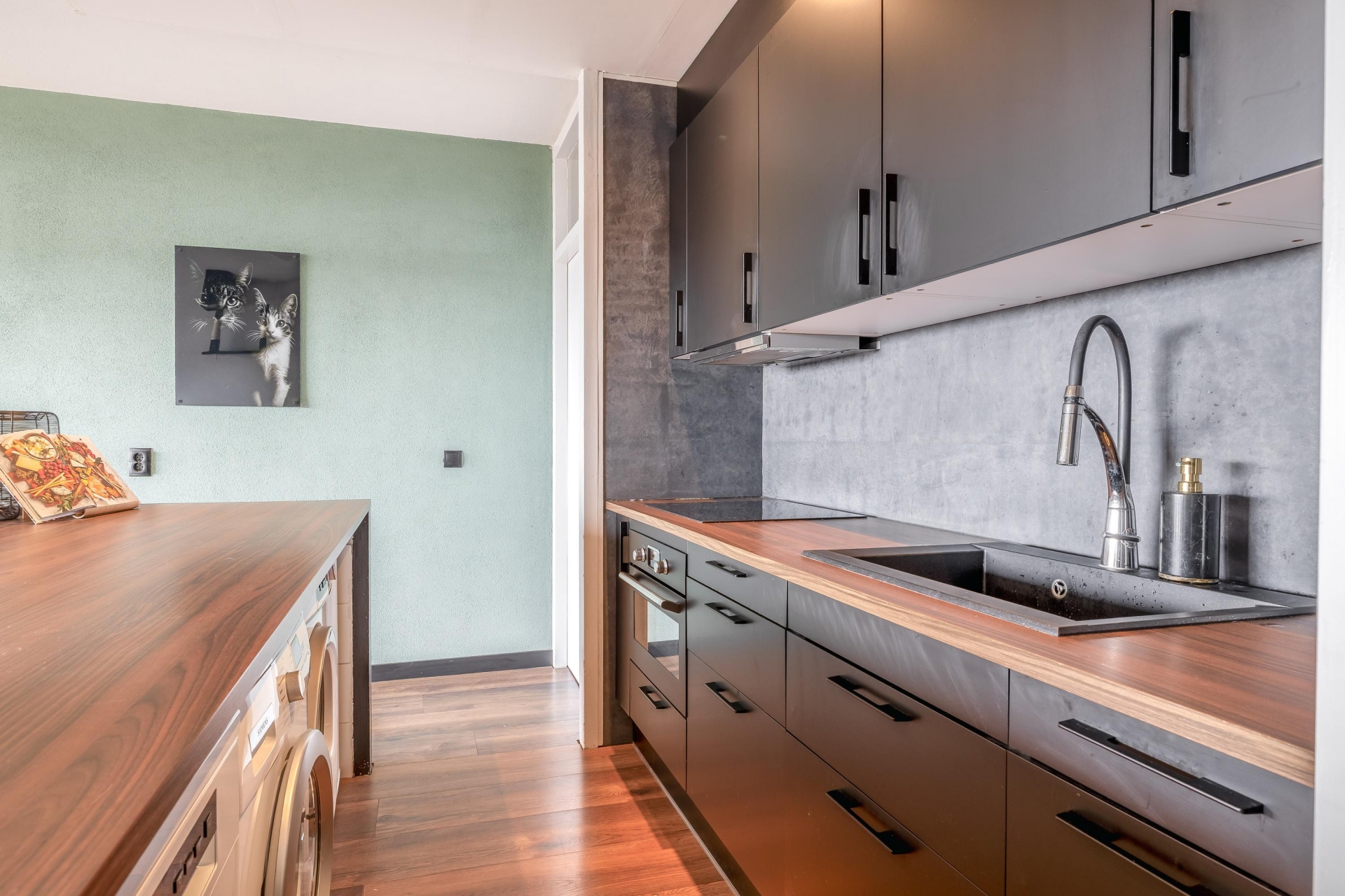 Centrale entree met bellentableau, lift en trap naar de 8e verdieping; via de galerij toegang tot het appartement; interne trap naar de woonverdieping op de 9e etage; ruime en lichte woonkamer met grote raampartijen en open indeling; moderne open keuken voorzien van baropstelling en diverse inbouwapparatuur waaronder een combi-oven; slaapkamer met grote raampartij en voldoende ruimte voor een tweepersoonsbed en kastruimte; moderne badkamer voorzien van inloopdouche, wastafelmeubel en toilet; vanuit de woonkamer toegang tot het ruime balkon op het westen met middag- en avondzon.