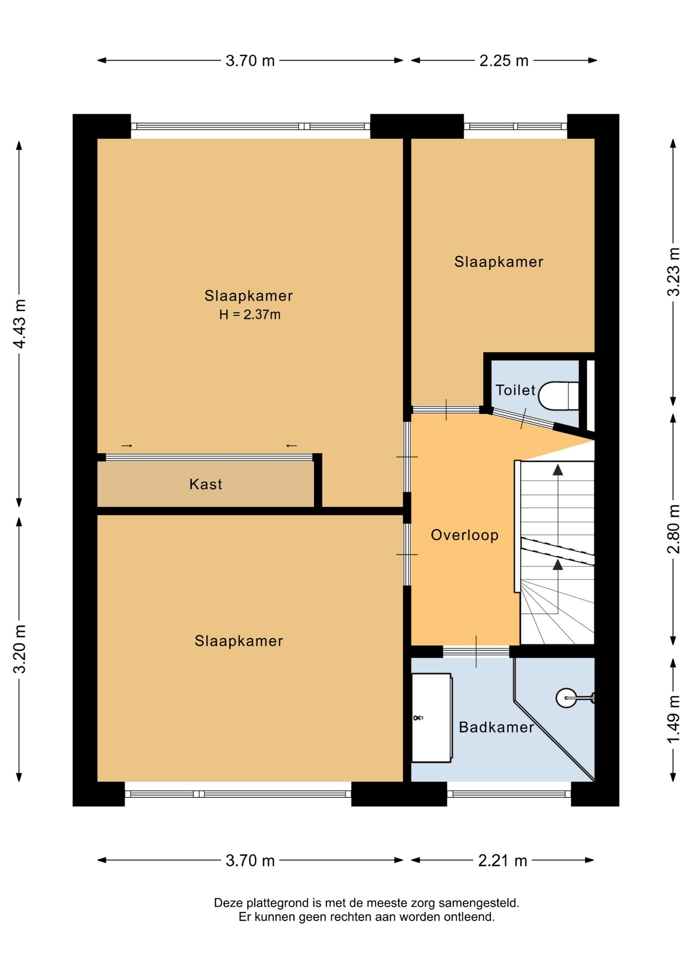 “Deze informatie is door ons met de nodige zorgvuldigheid samengesteld. Onzerzijds wordt echter geen enkele aansprakelijkheid aanvaard voor enige onvolledigheid, onjuistheid of anderszins, dan wel de gevolgen daarvan. Alle opgegeven maten en oppervlakten zijn indicatief.”
