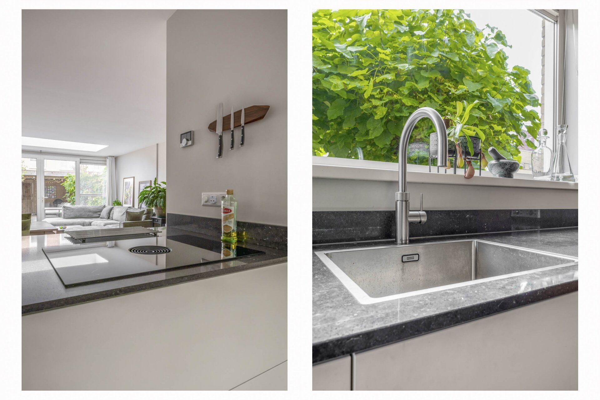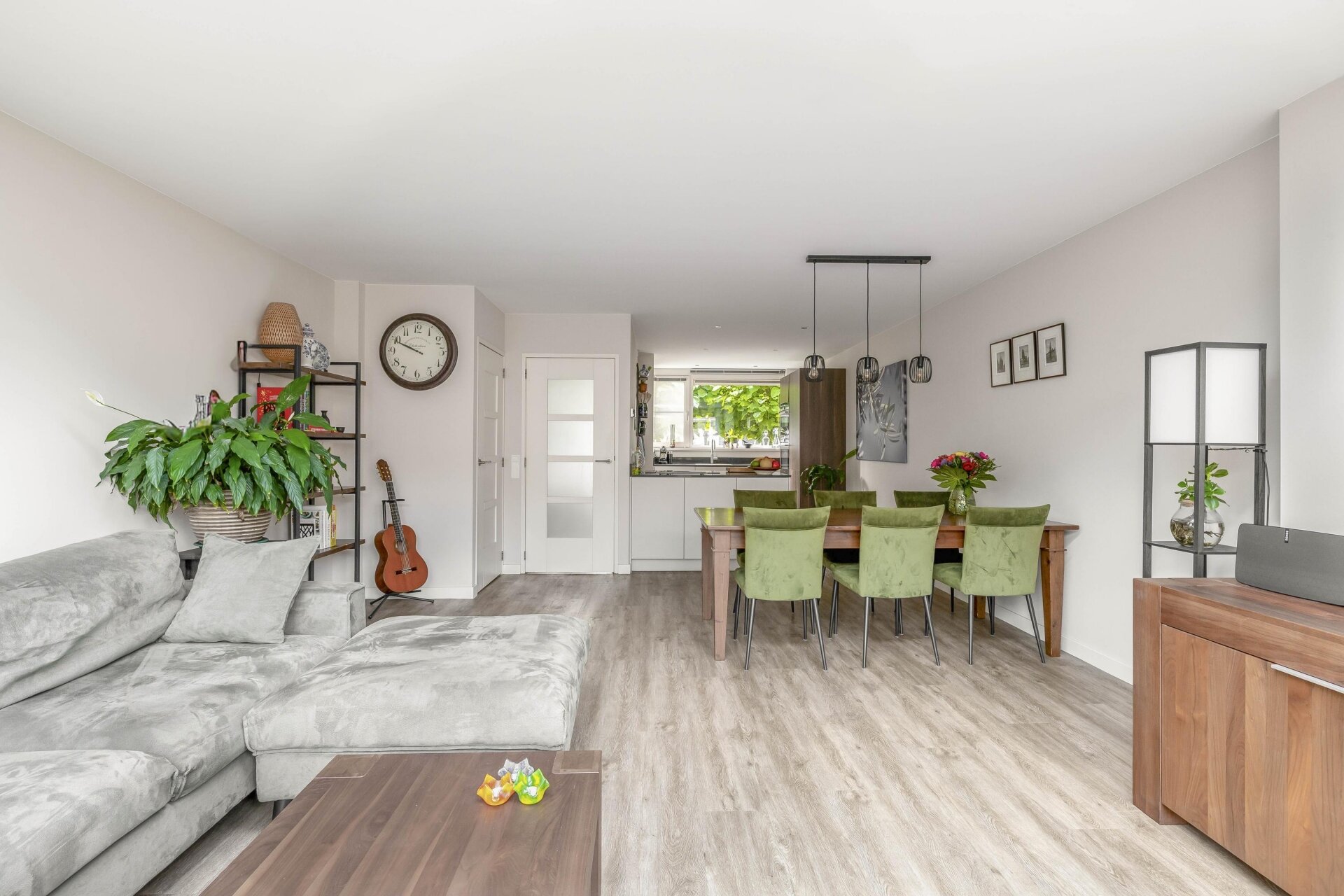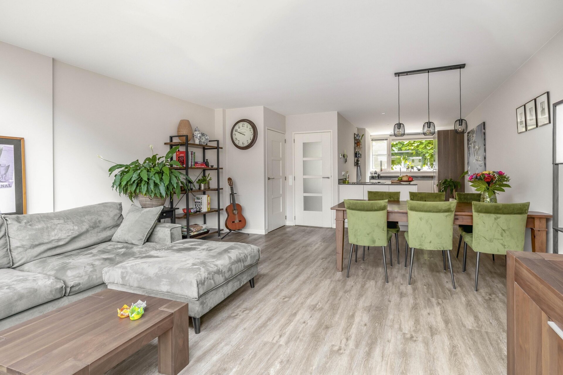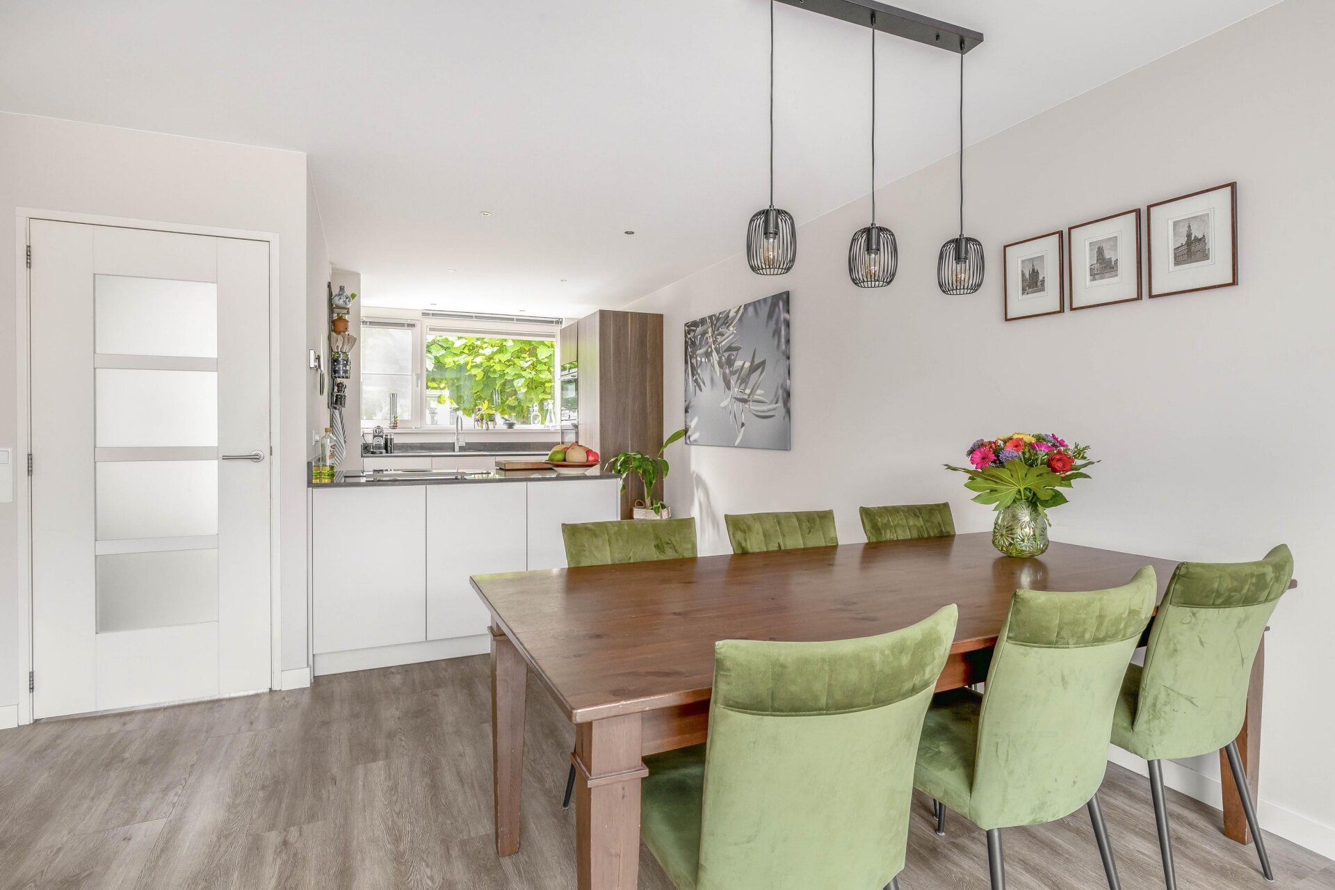 Zodra je binnenstapt, valt de ruime woonkamer direct op. Dankzij de grote raampartijen en schuifpui stroomt het daglicht binnen en ontstaat een prettige, open sfeer. De uitgebouwde woonkamer biedt alle ruimte voor een grote zithoek én een eettafel waar het hele gezin samenkomt. De open keuken sluit hier perfect op aan: een plek waar koken en samenzijn centraal staan.