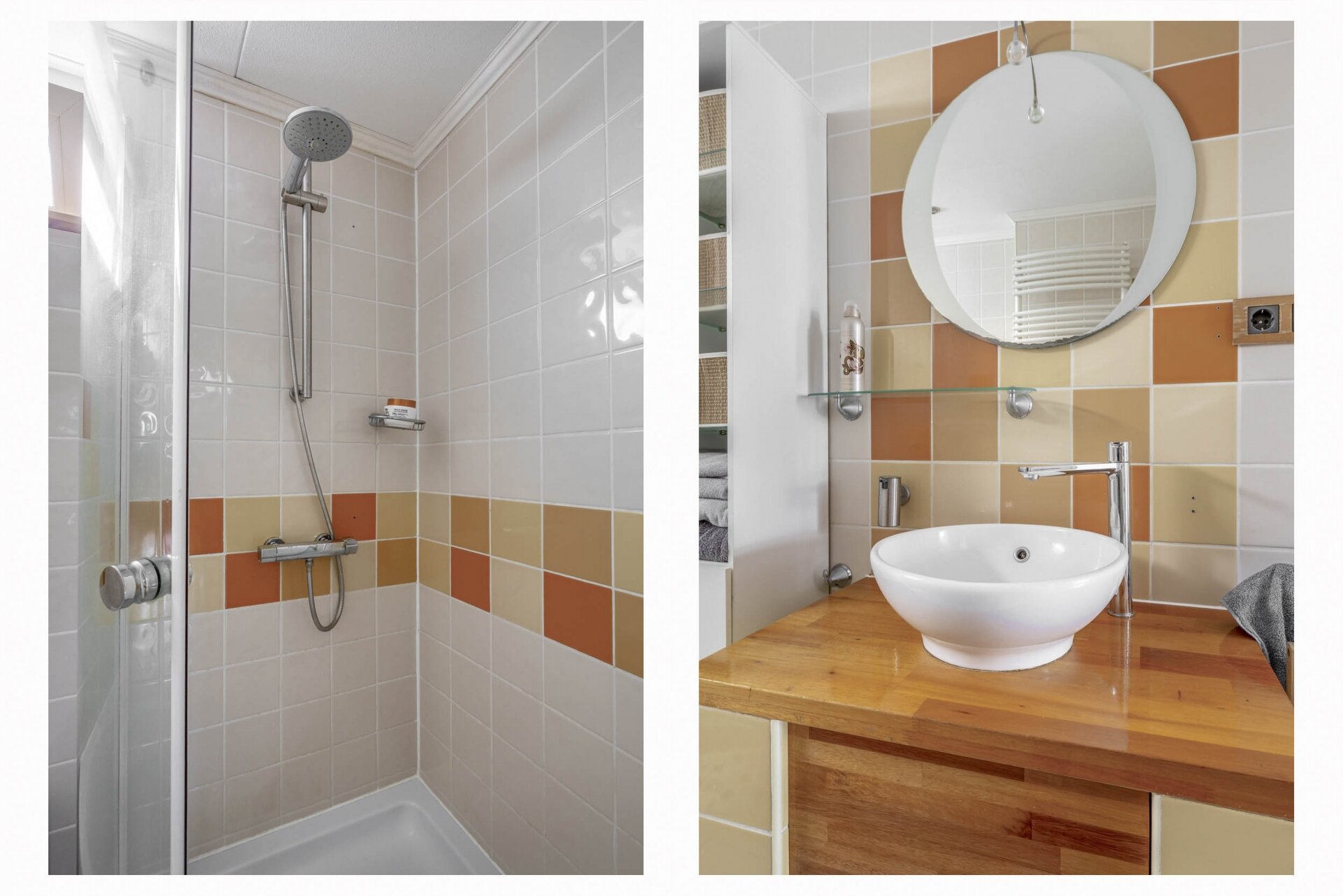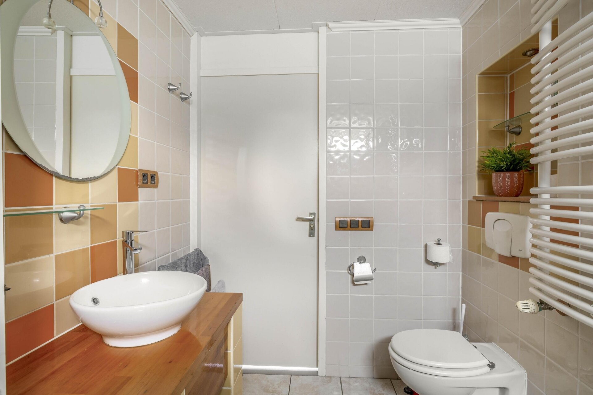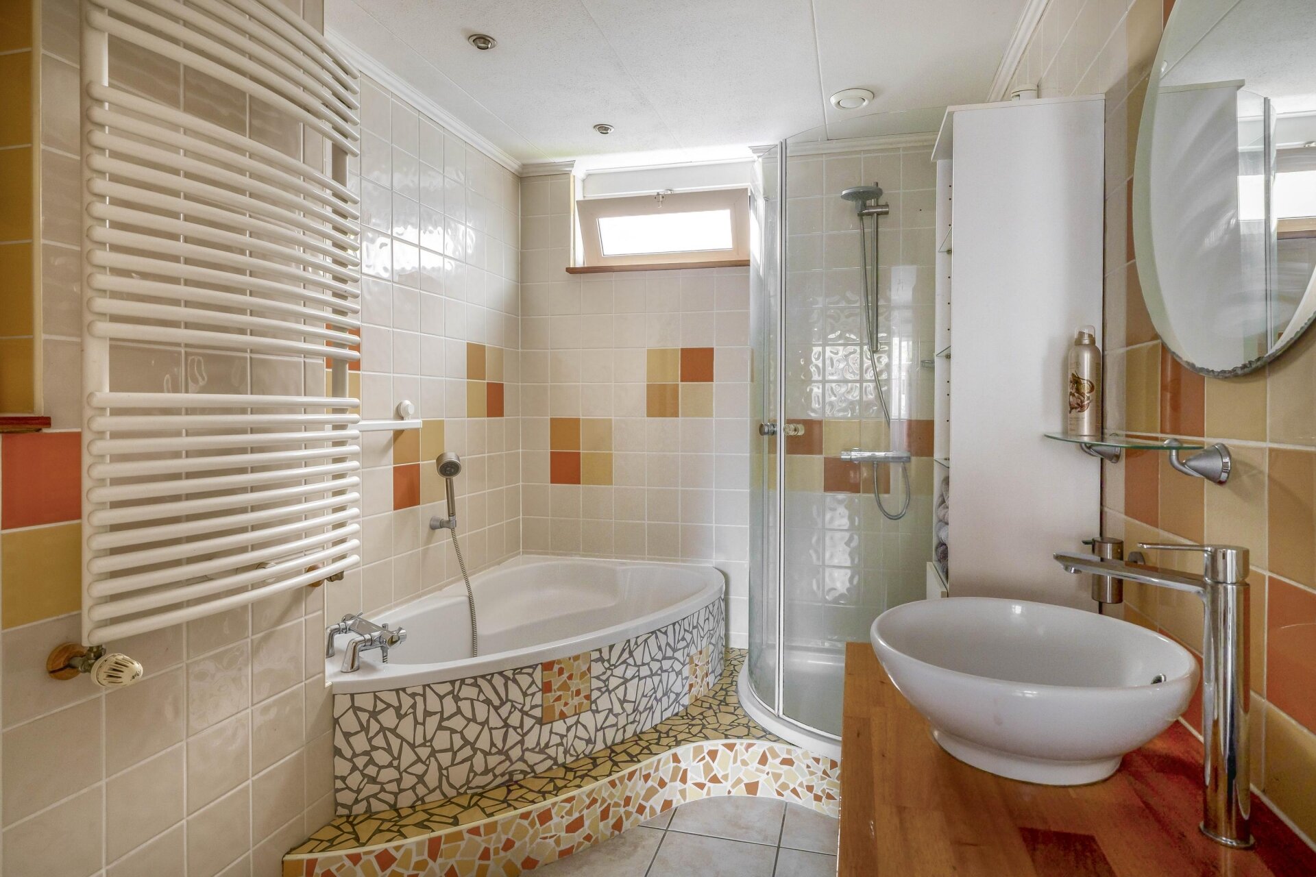 De badkamer is functioneel en compleet, met ruimte voor een douche, ligbad, wastafel en tweede toilet - perfect voor het dagelijks gemak.